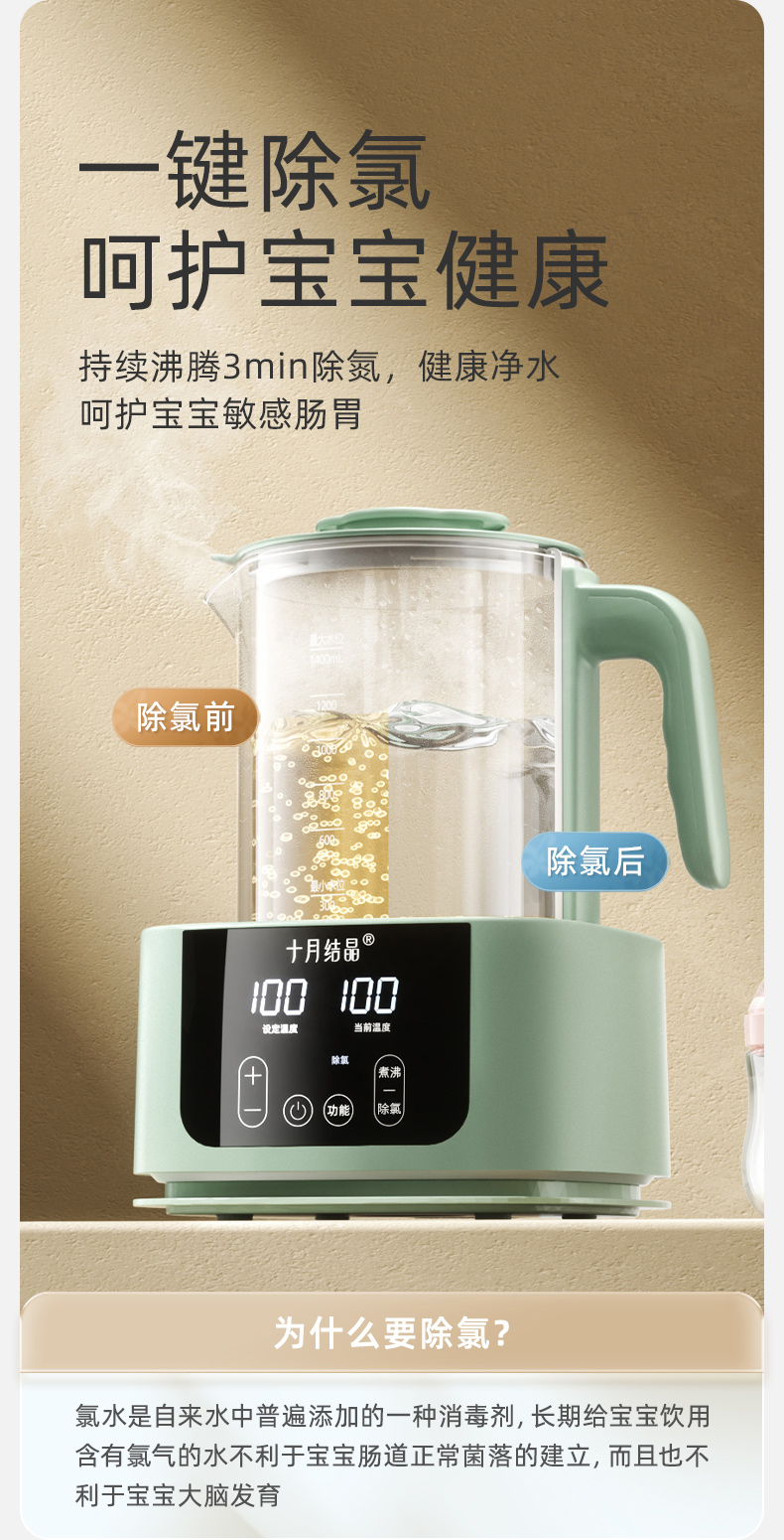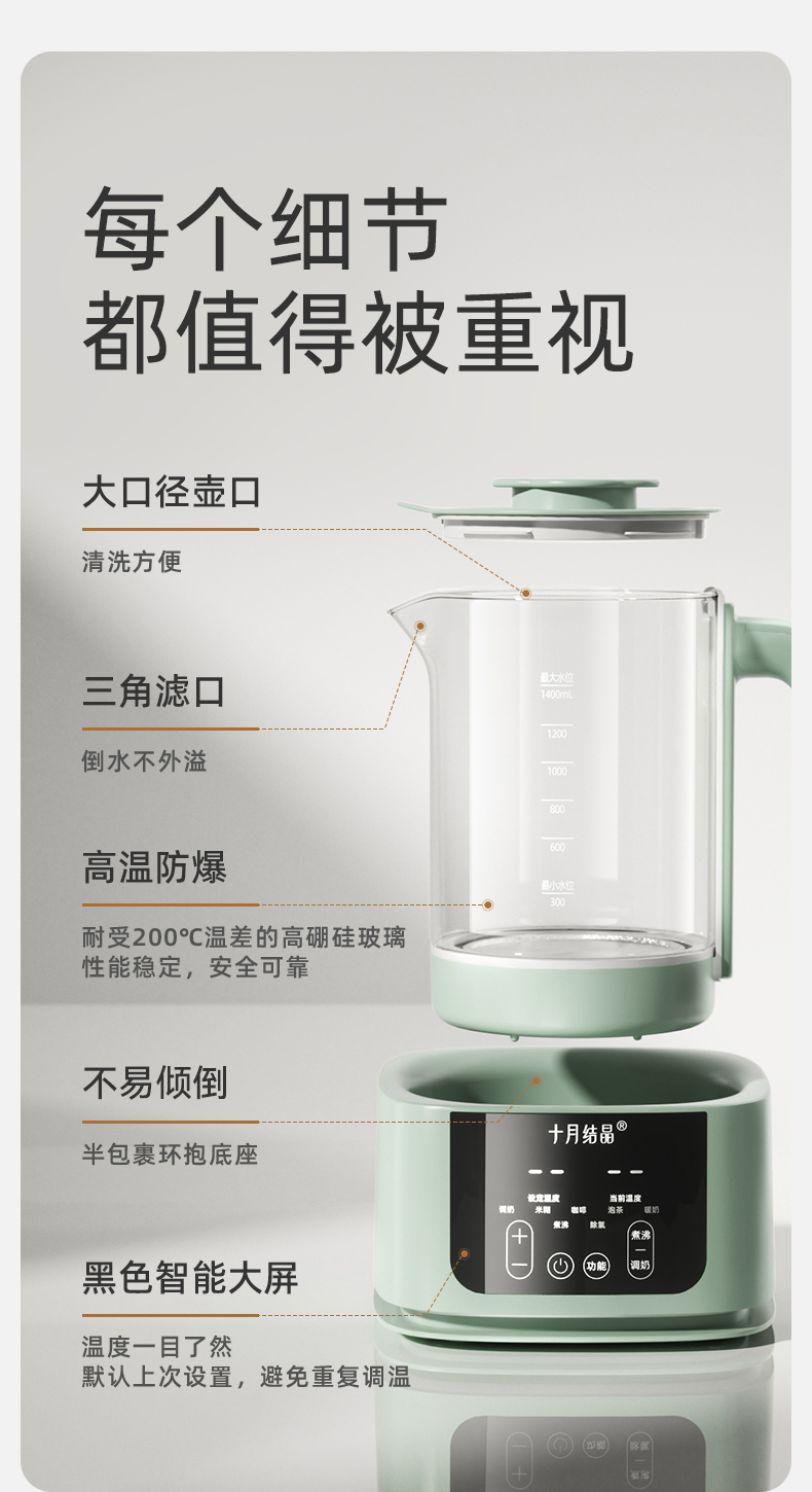 婴儿冲泡奶粉恒温烧水壶1.4L