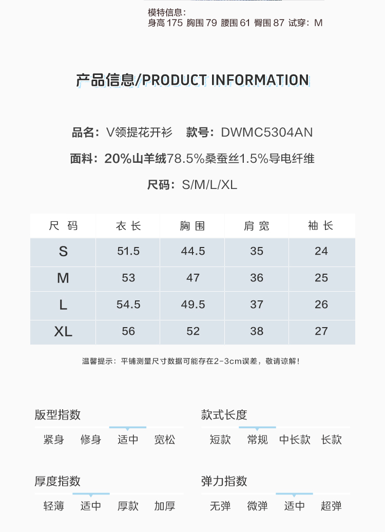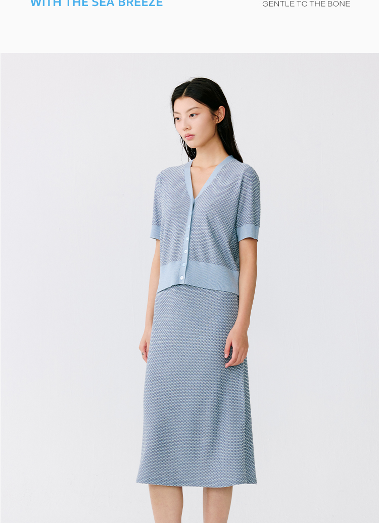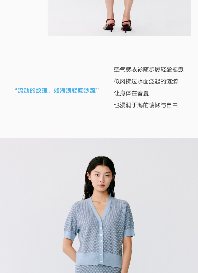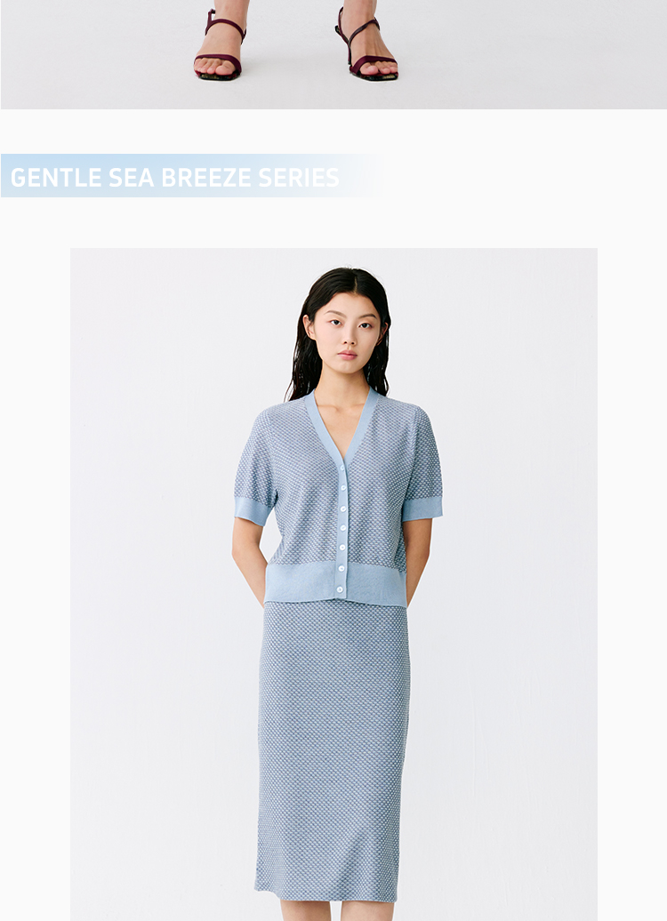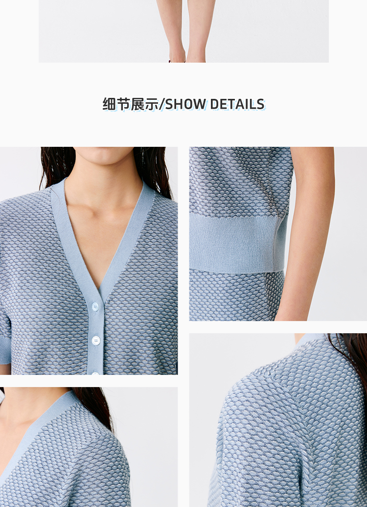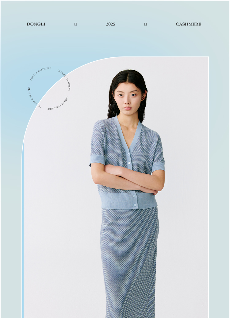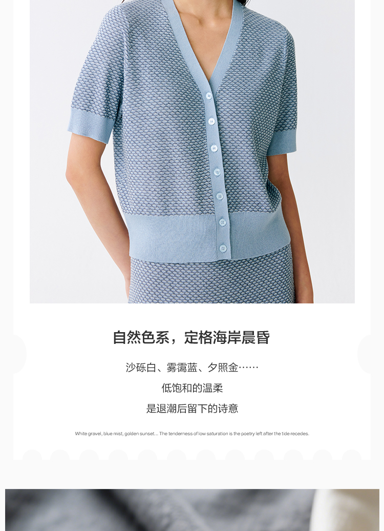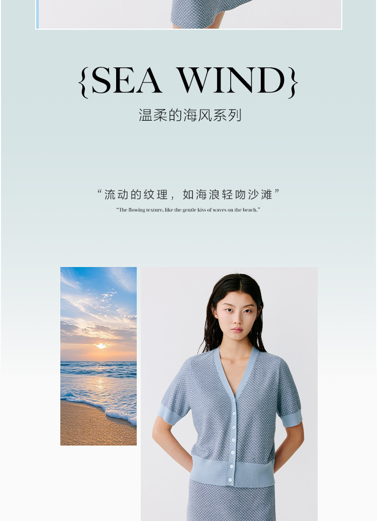 东黎 • 温柔的海风 桑蚕丝山羊绒女士提花V领开衫 5304