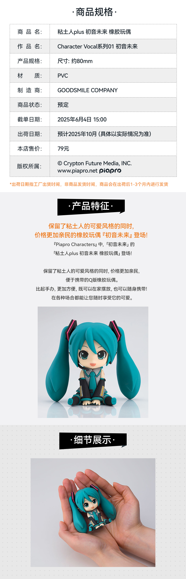 【GSC补款】粘土人plus 初音未来 橡胶玩偶
