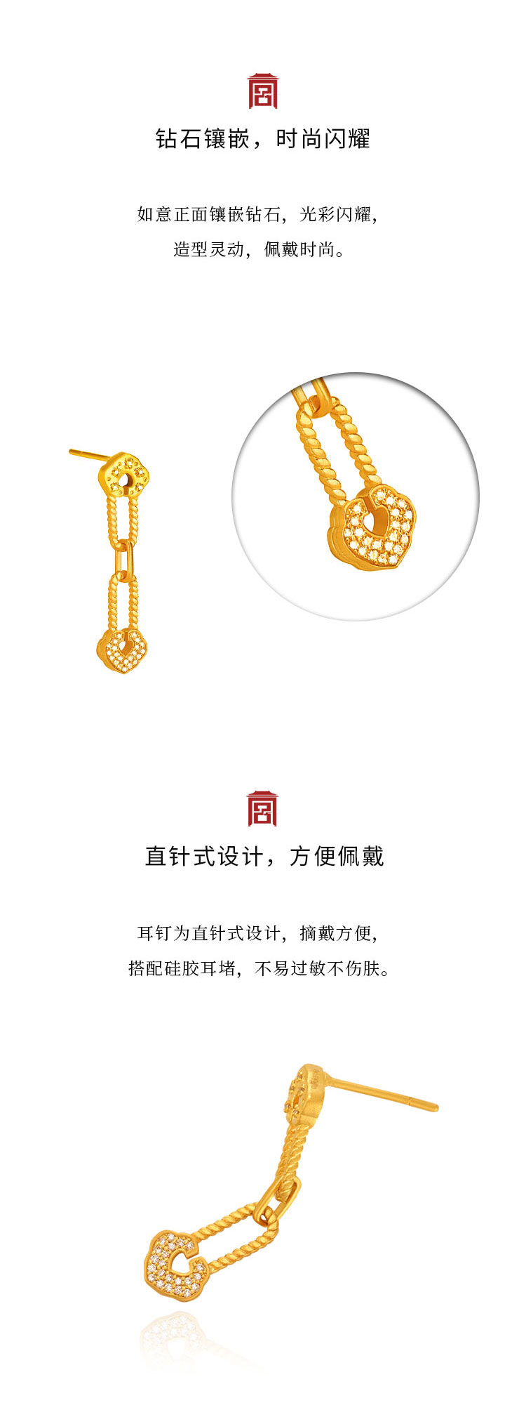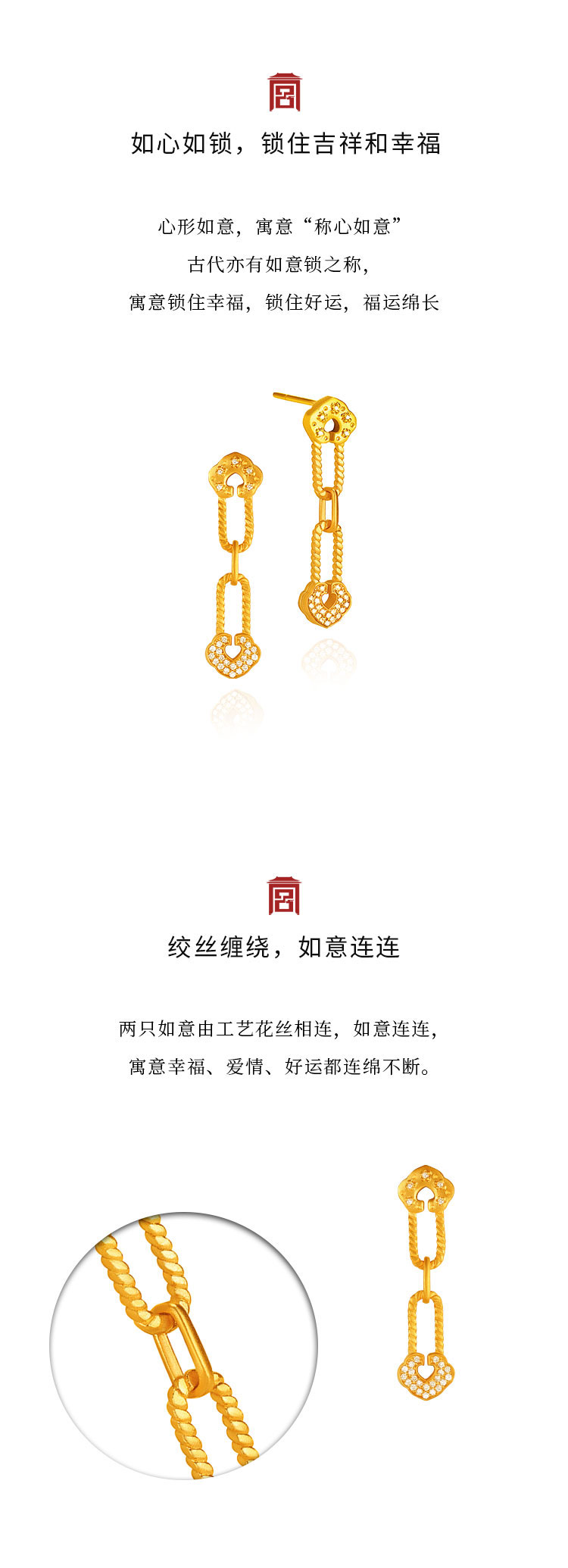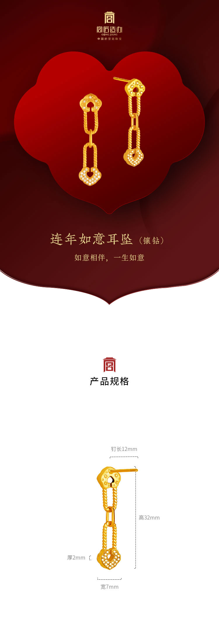 宫匠造办 连年如意耳坠 黄金镶钻
