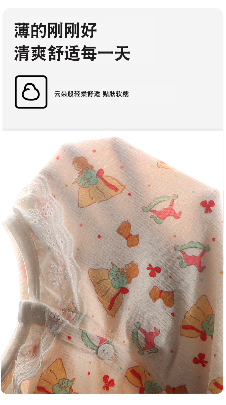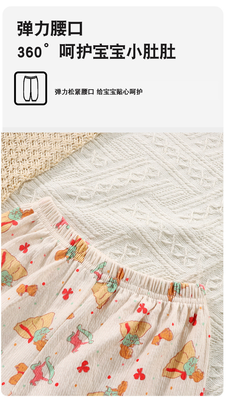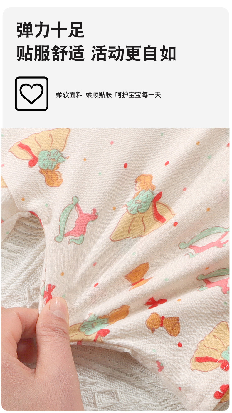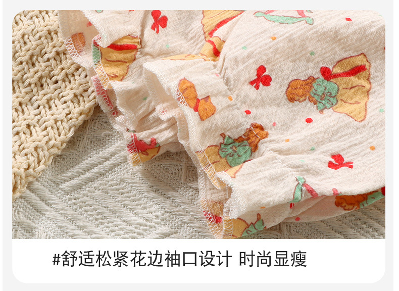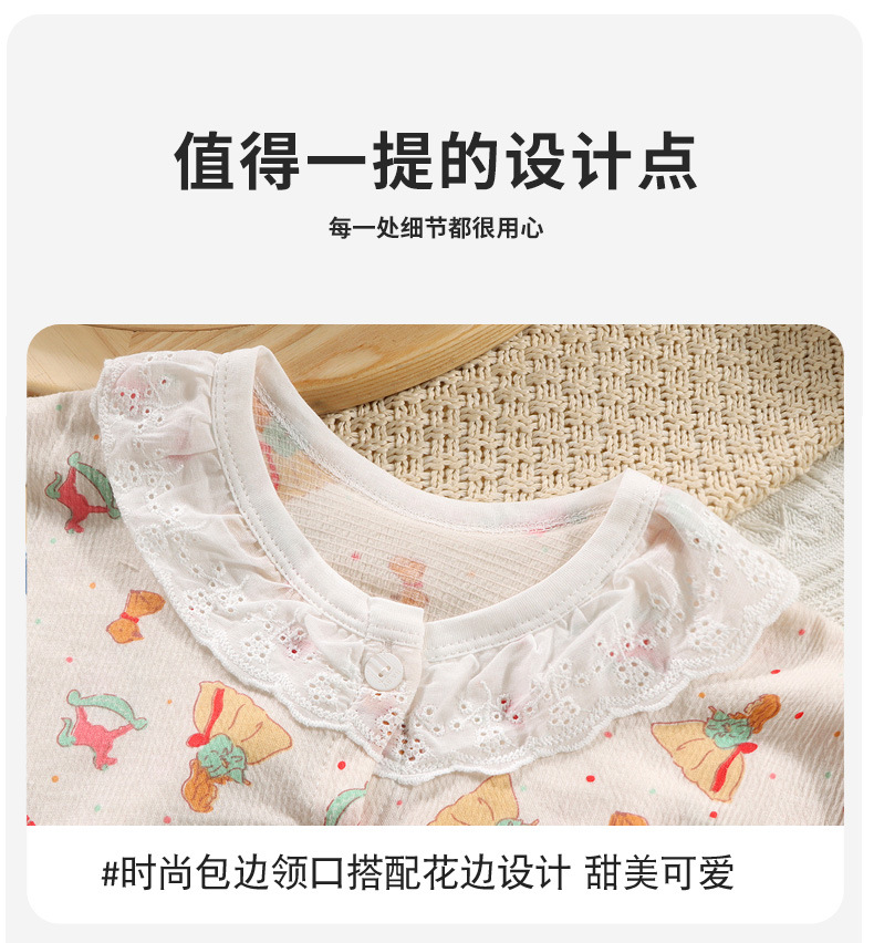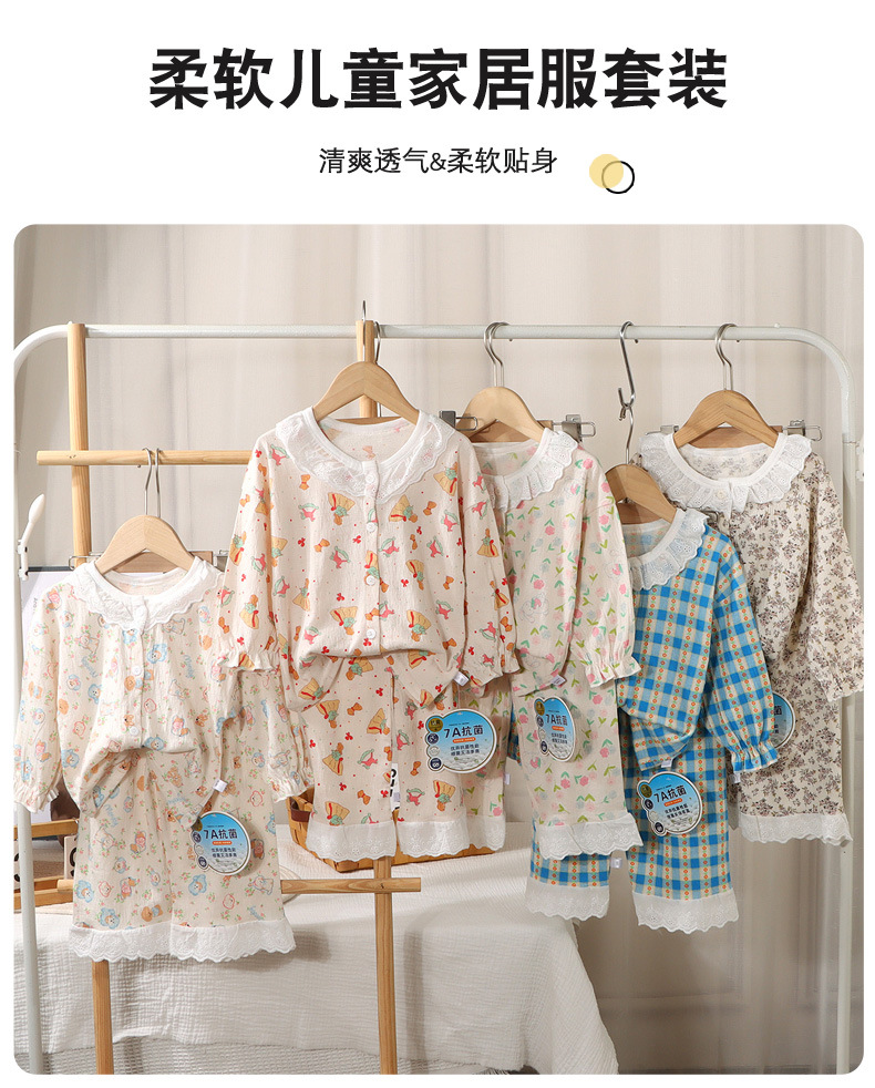 其其宝宝儿童亲子装弹力棉纱宝宝春夏家居服套装韩版花边潮童女宝空调服73-180★娃娃优选