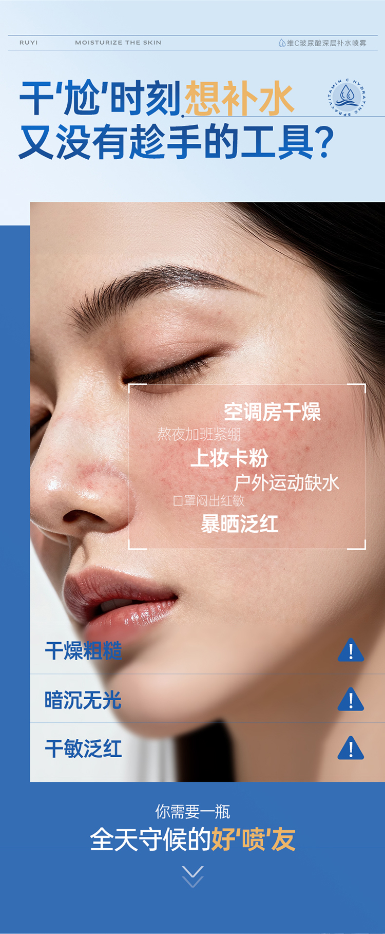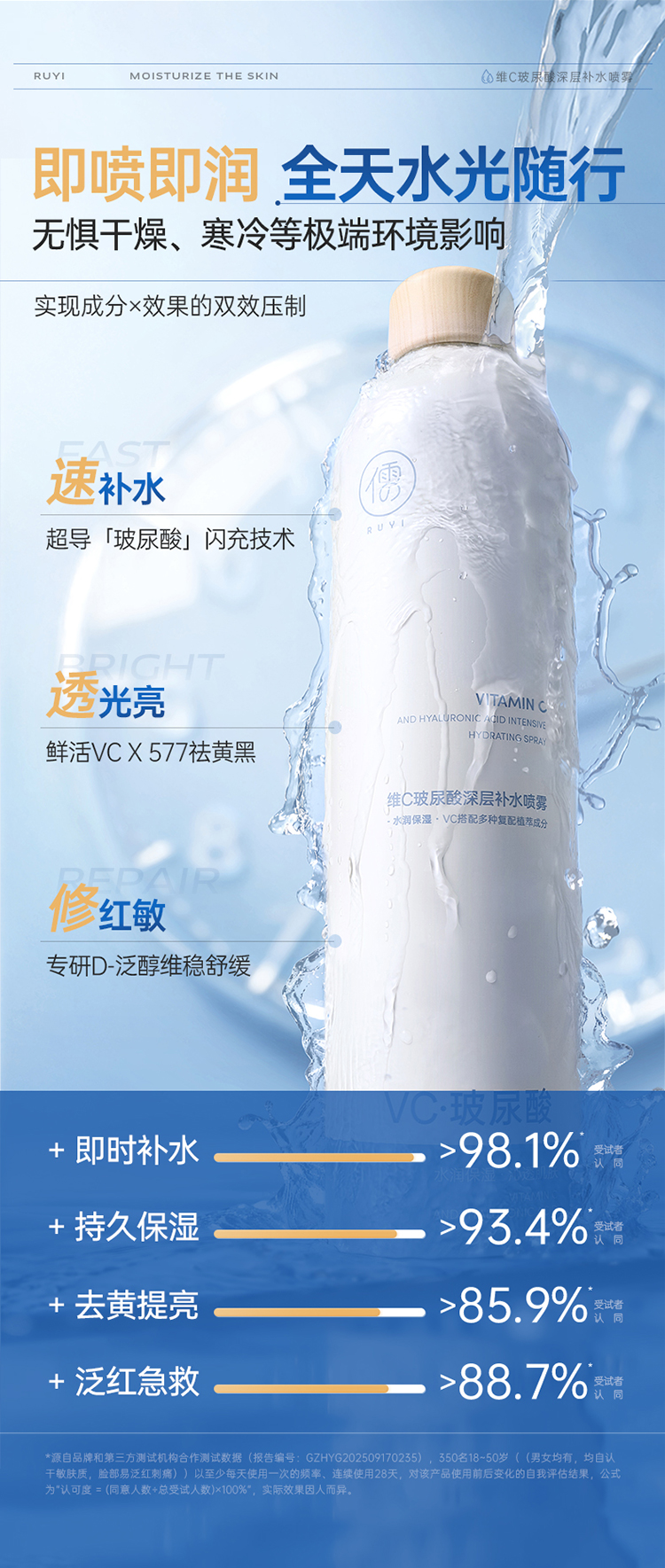 【⚡抢!第2件0元,需拍2件】 儒意维C玻尿酸深层补水喷雾500ml 补水喷雾爽肤水小分子妆前舒缓保湿敷水男女官方旗舰店