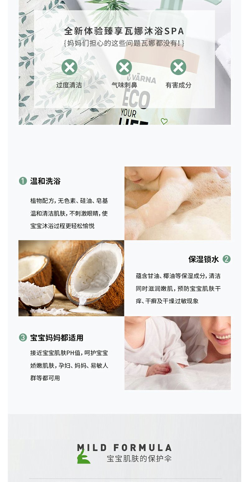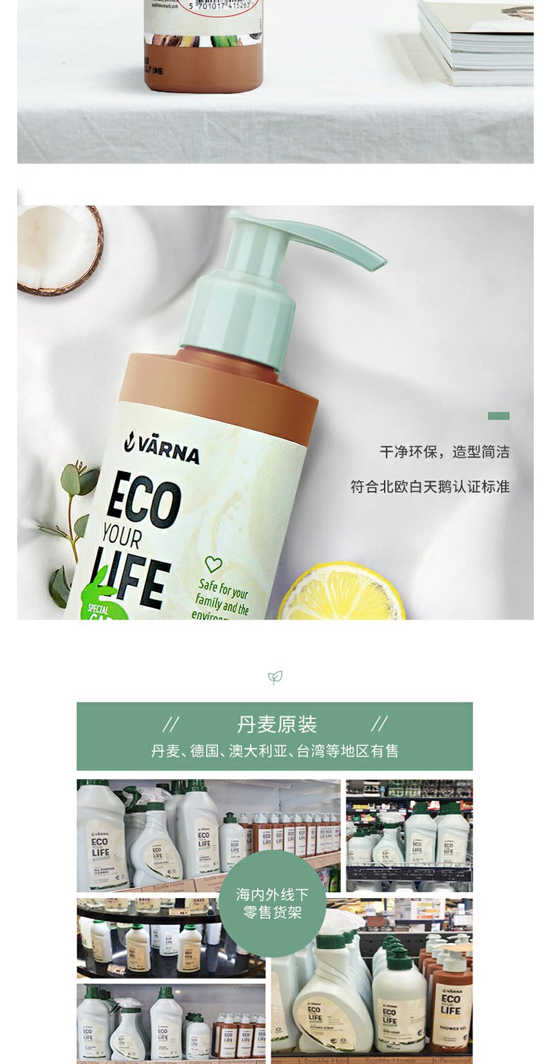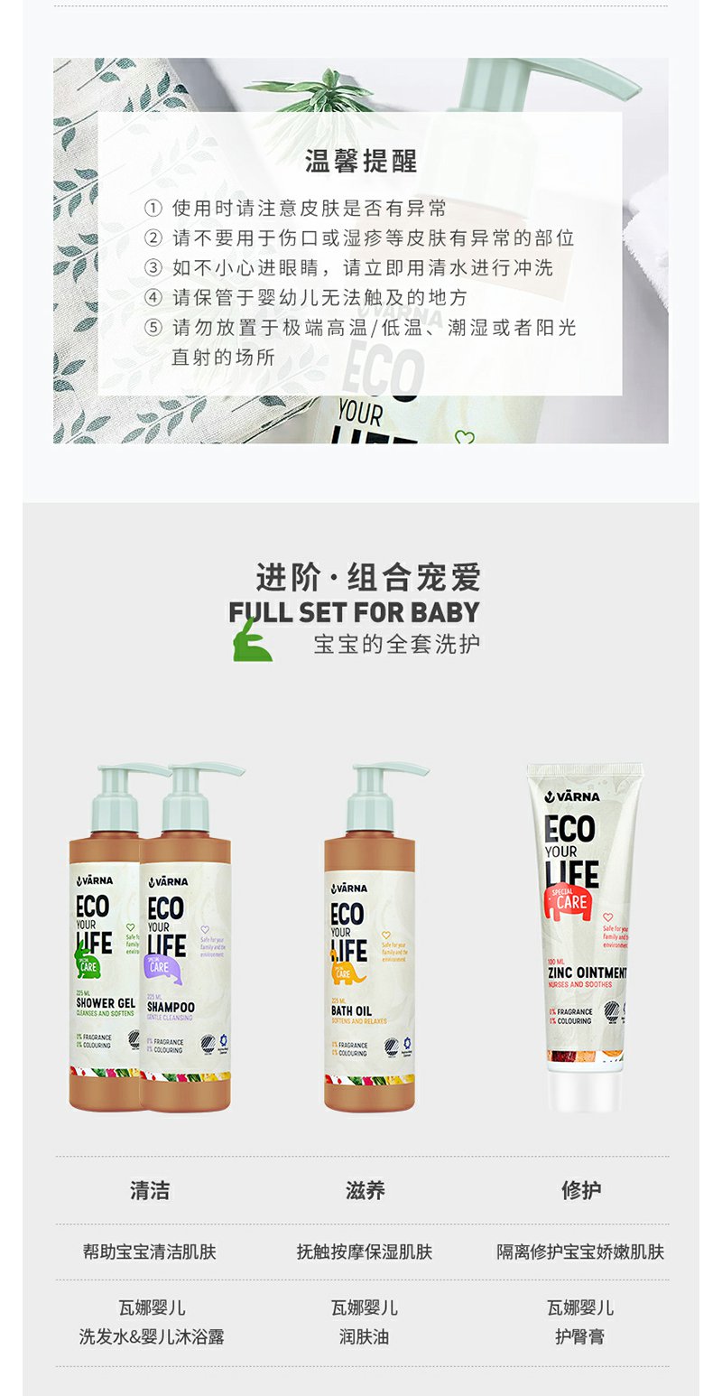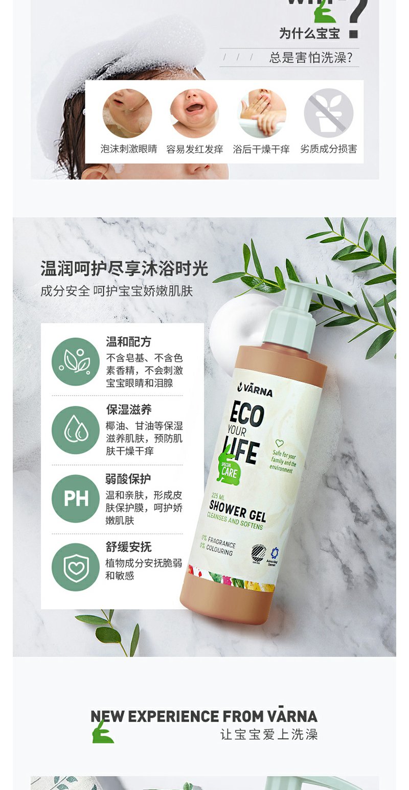 丹麦原装 VARNA/瓦娜 特护系列 沐浴露225ml滋润保湿 孕妇可以用