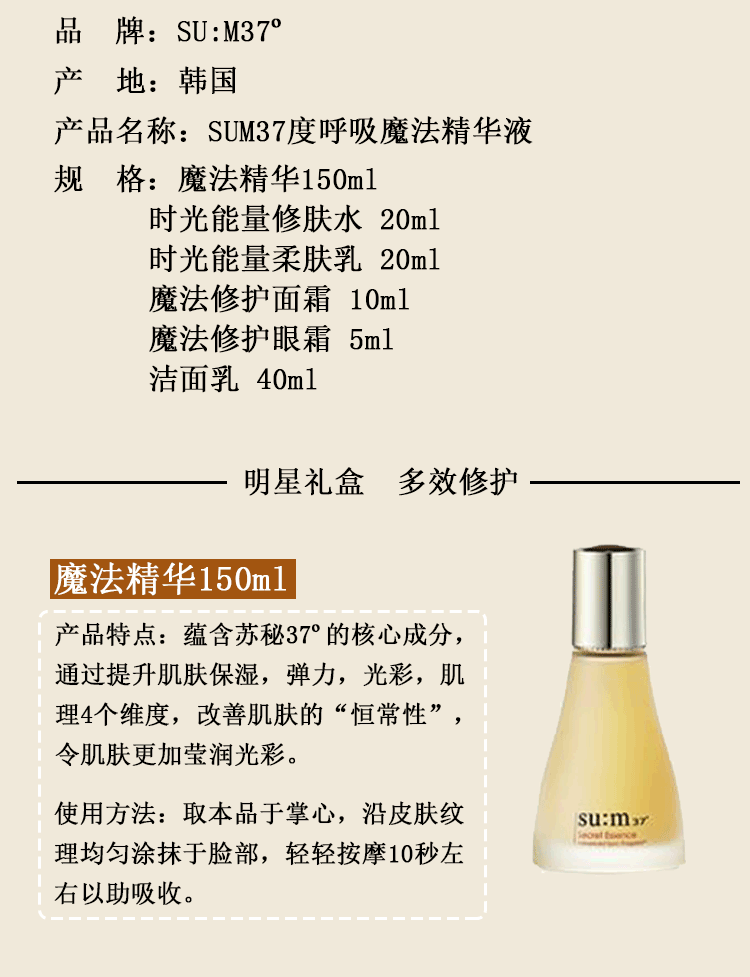 韩国正品sum37苏秘 呼吸37度魔法修护精华套装礼盒补水滋润