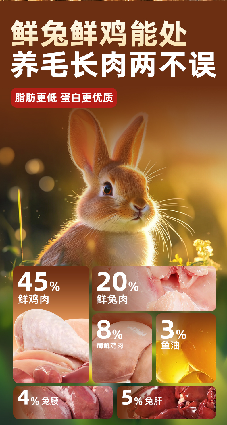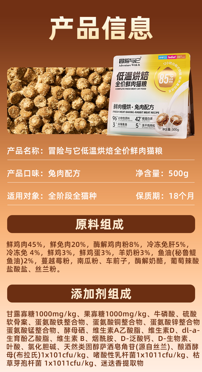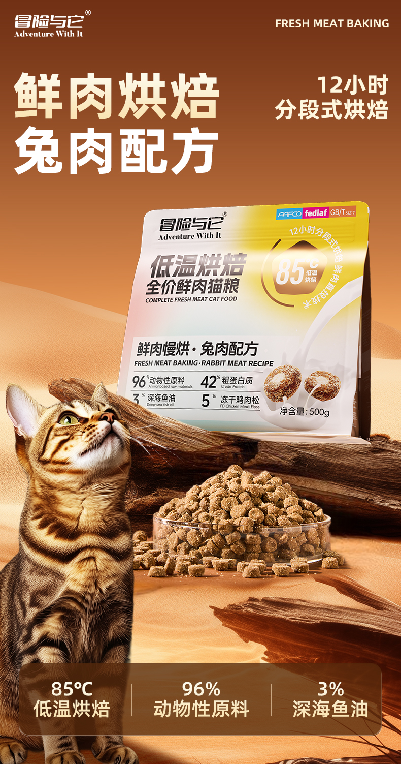 冒险与它兔肉烘焙猫粮主粮500g 鲜肉配方 高蛋白+鱼油 整箱20袋 线上控价 高利润!