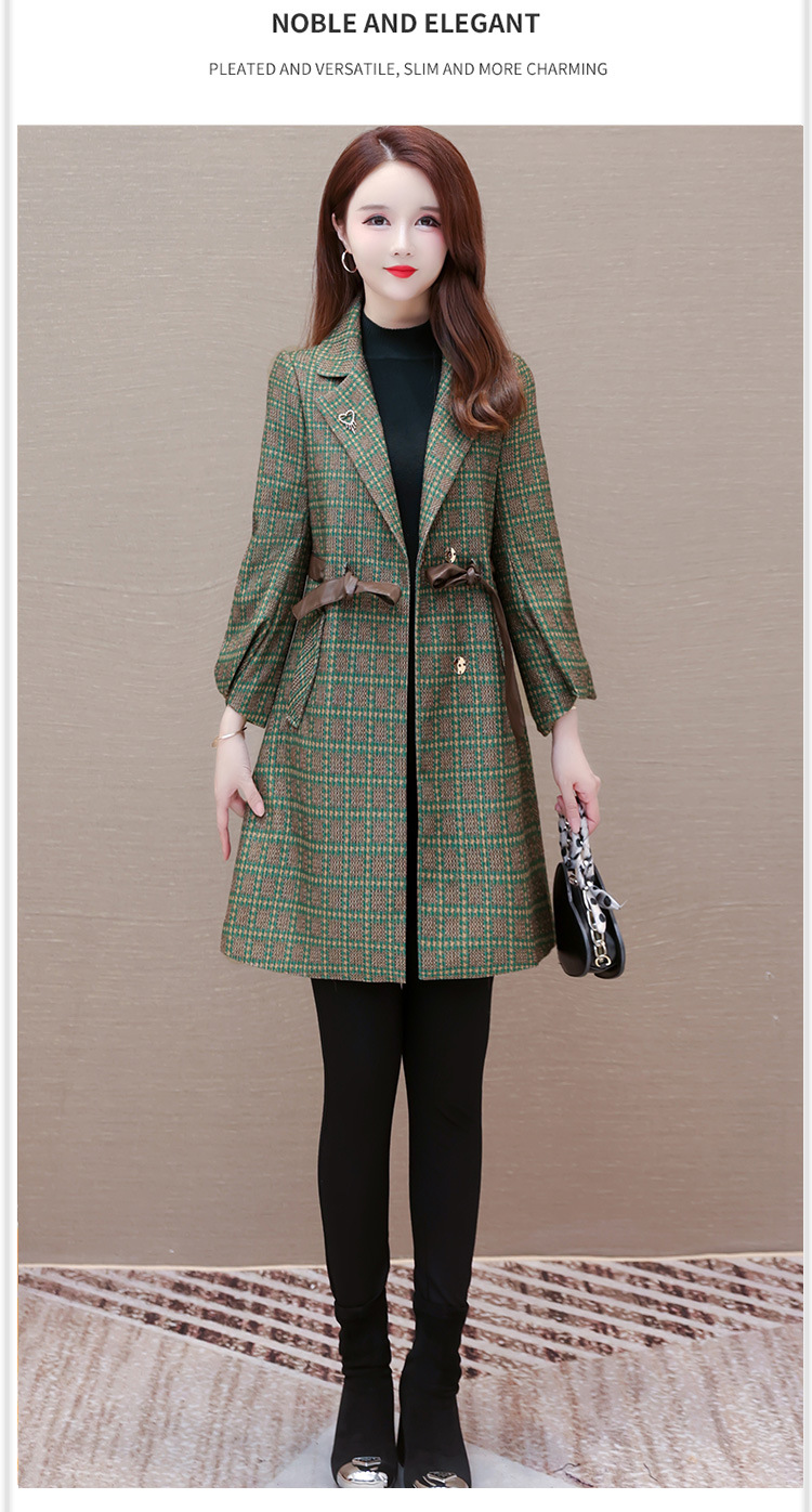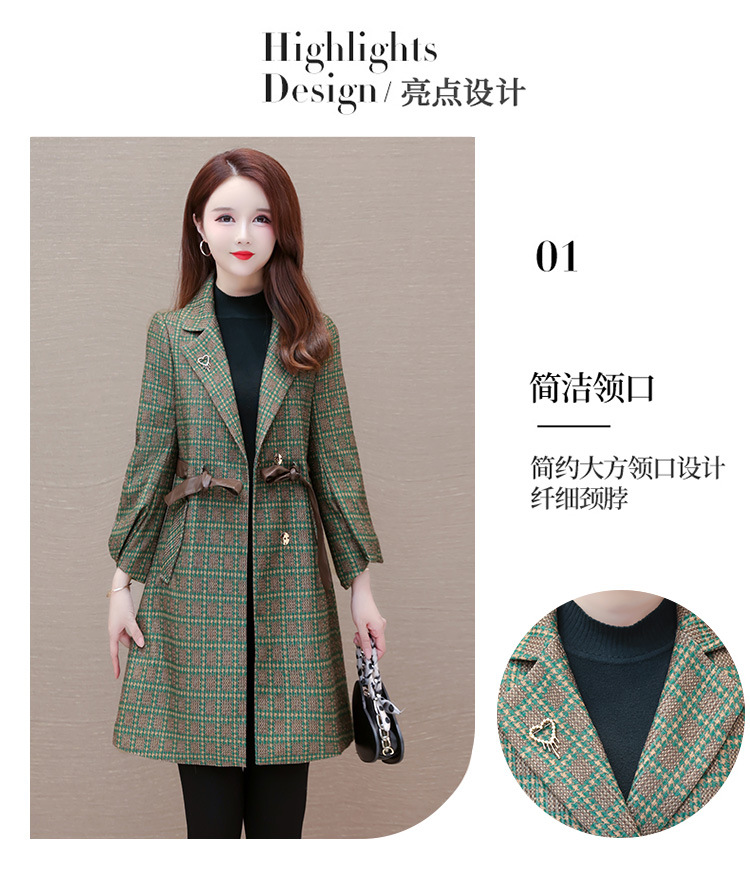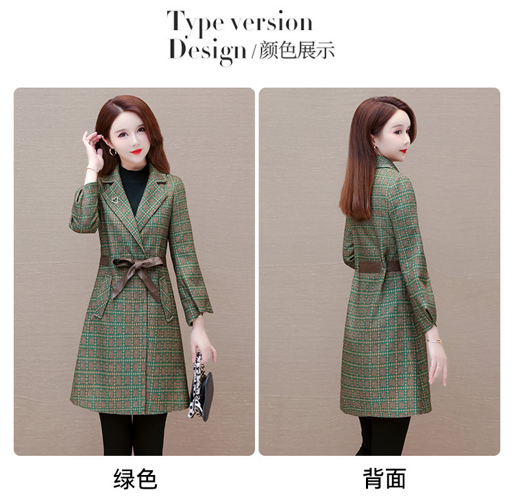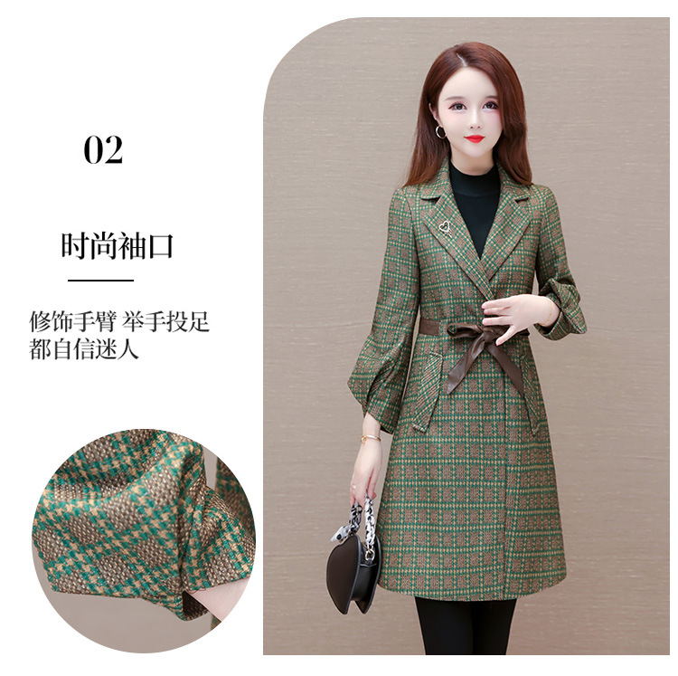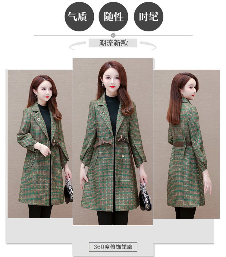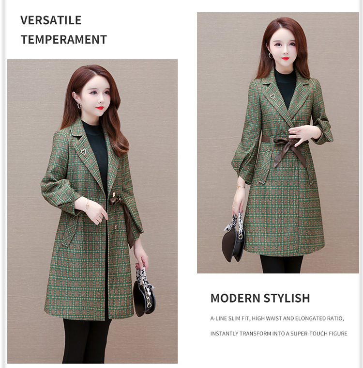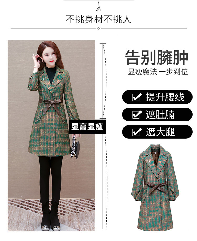 格纹中长款时髦洋气女士外套,秋冬款收腰修身优雅气质风衣QYM-XQD-2C23178-L