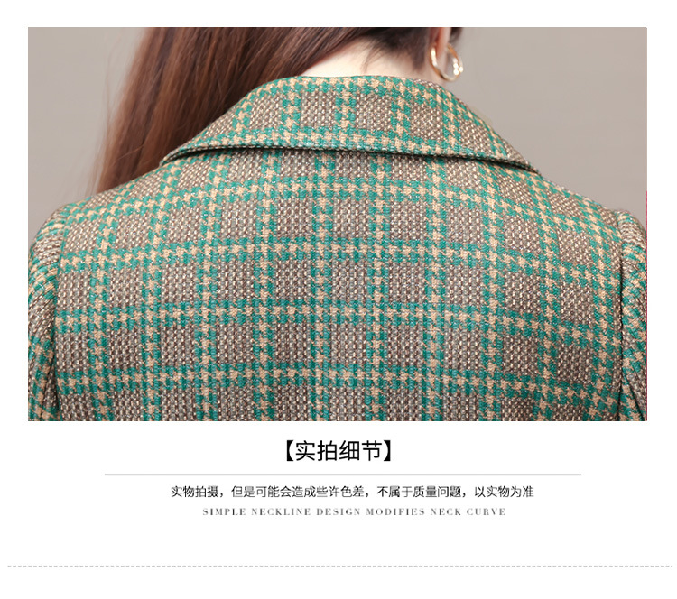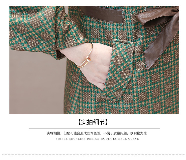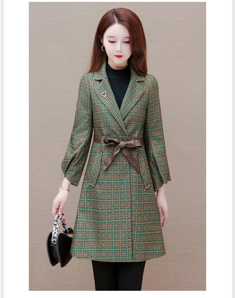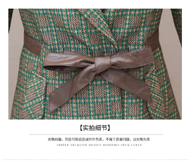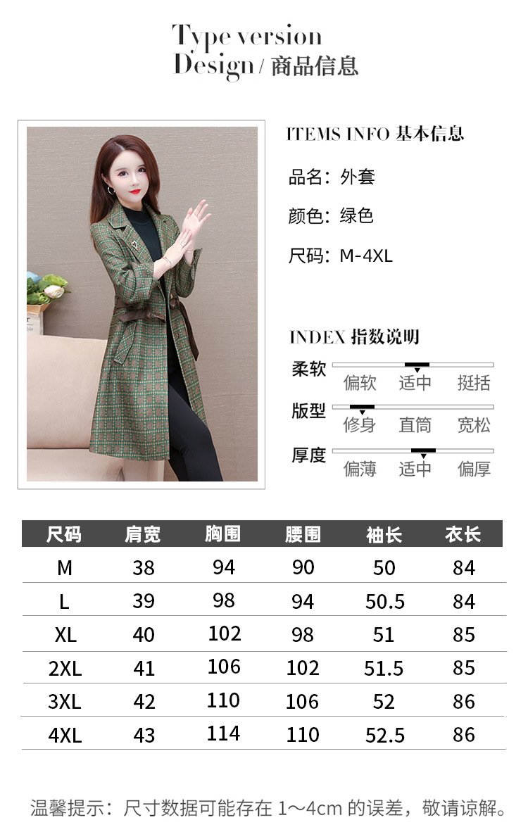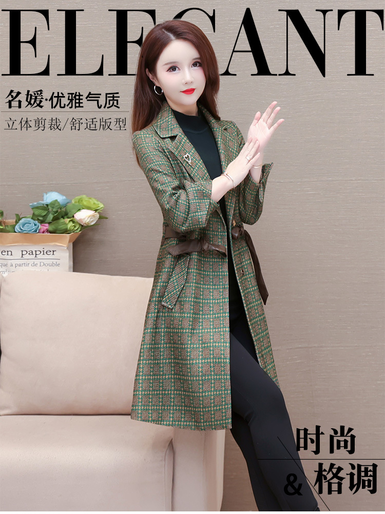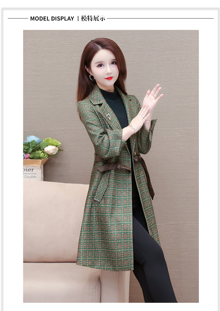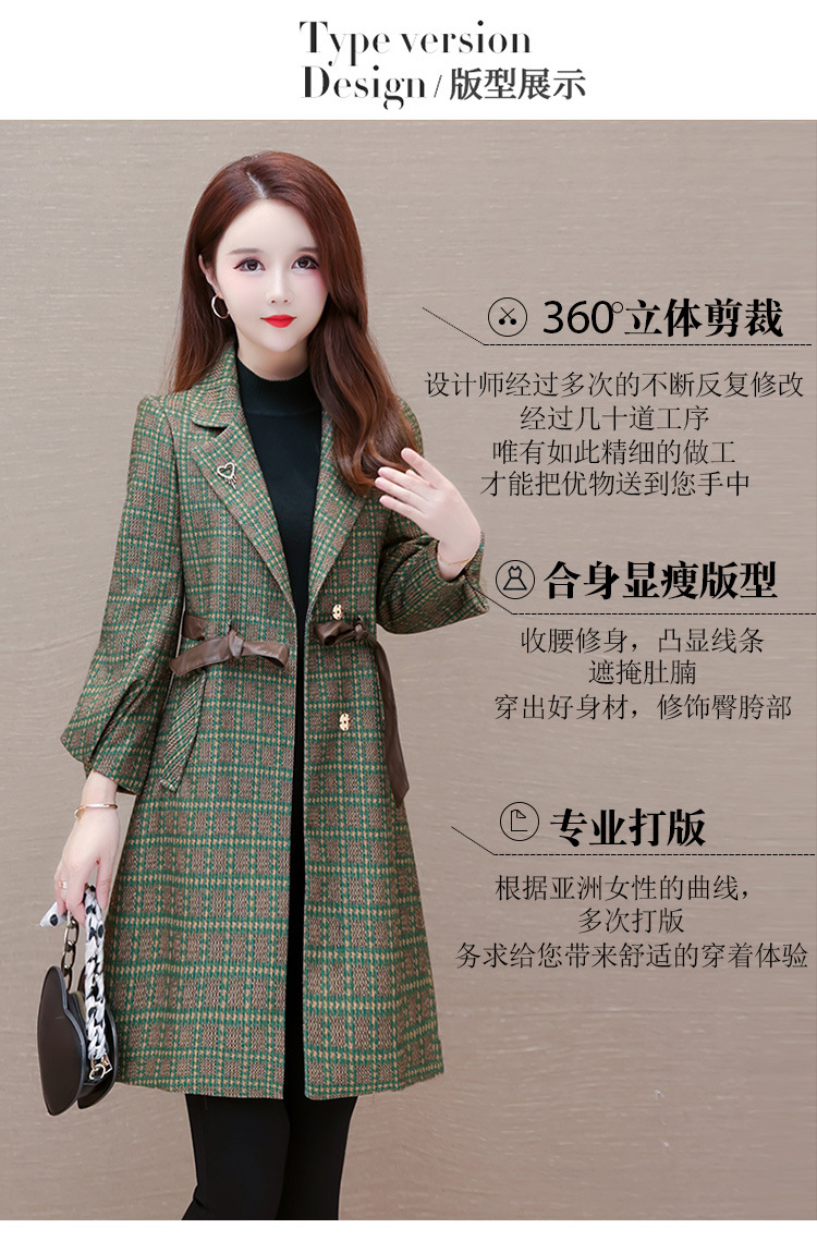 格纹中长款时髦洋气女士外套,秋冬款收腰修身优雅气质风衣QYM-XQD-2C23178-L