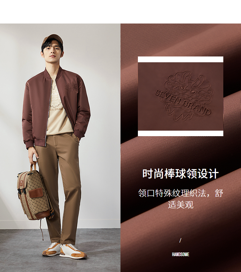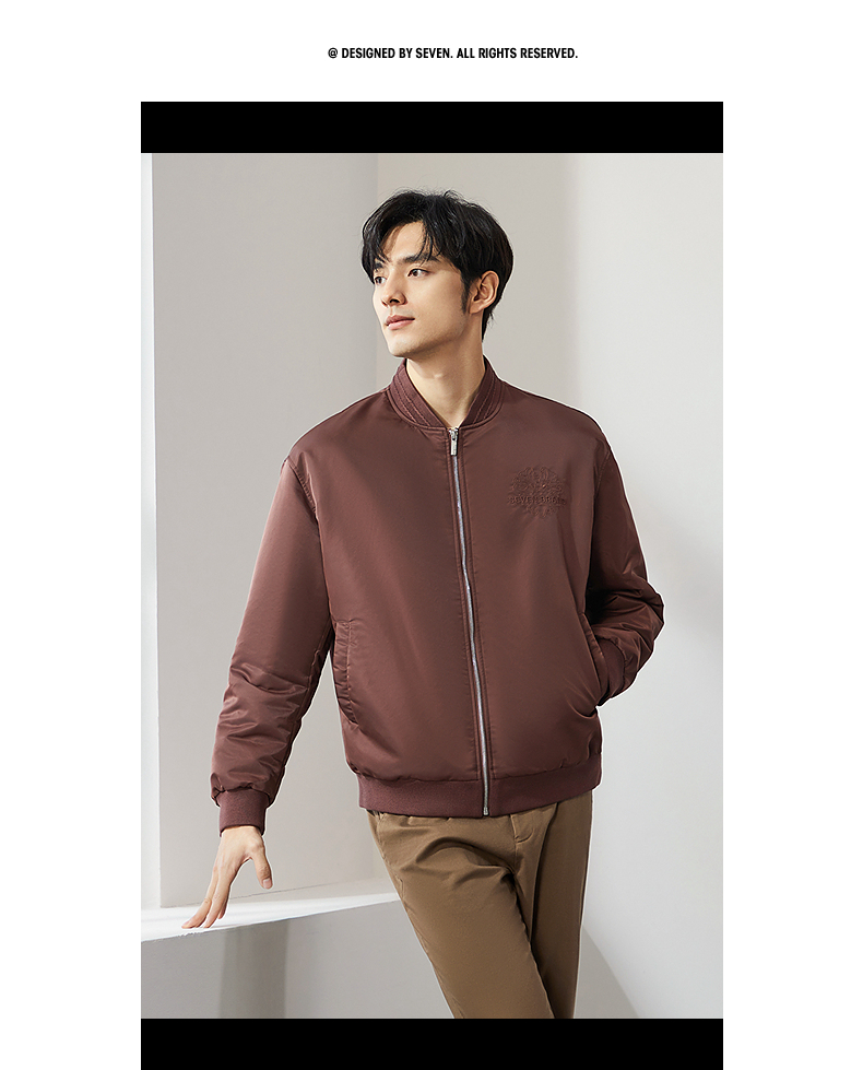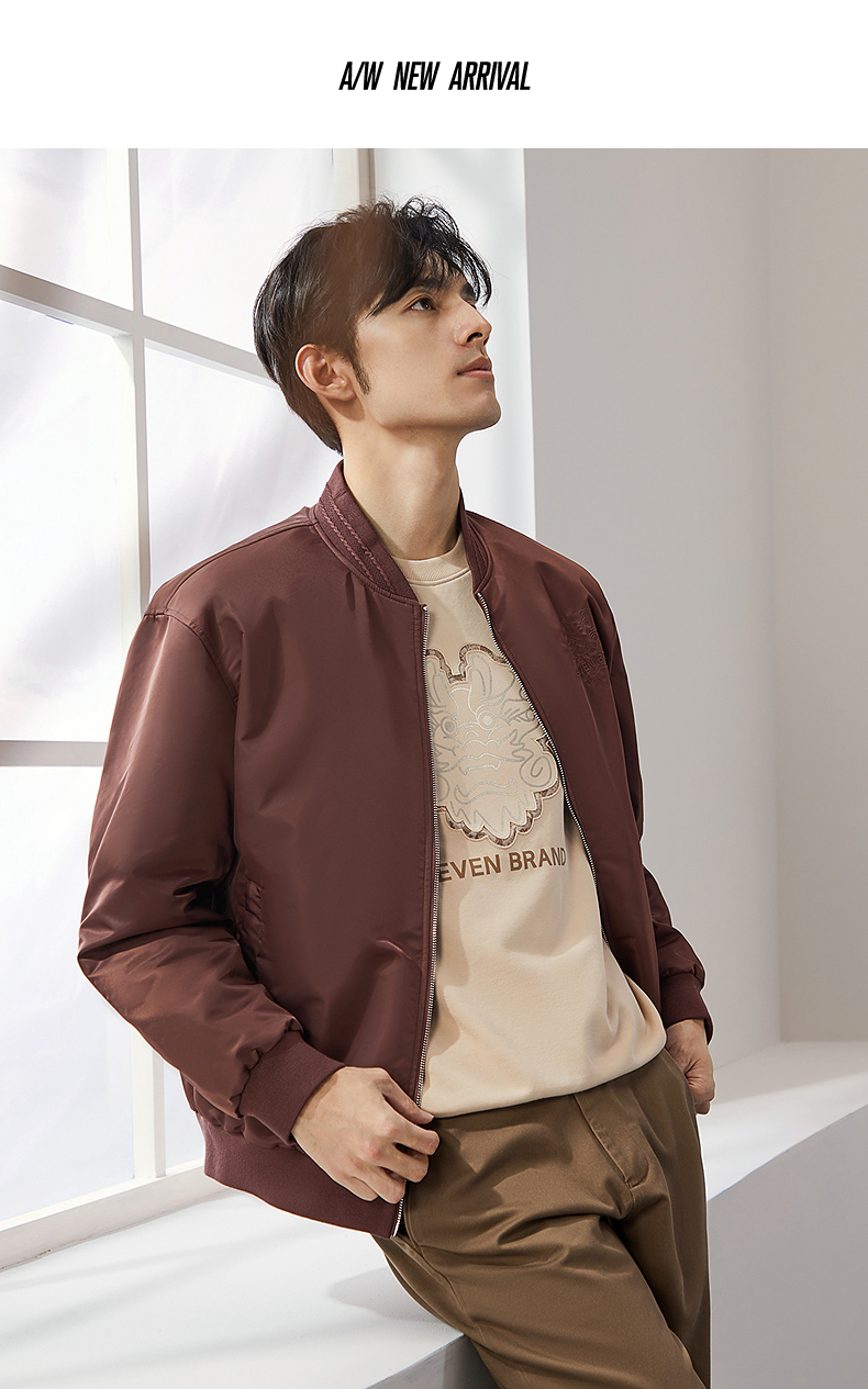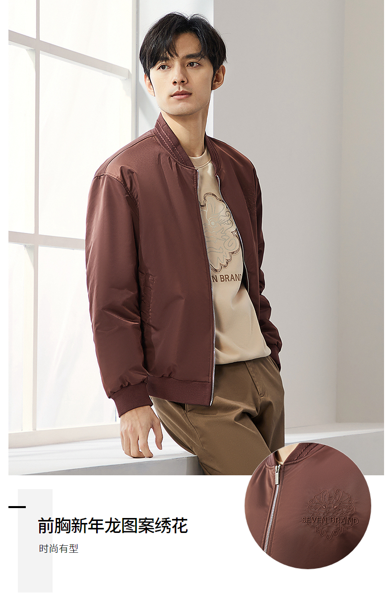【龙系列】柒牌棉服男2024冬季新款棒球领时尚休闲龙纹绣花厚外套 127E71480