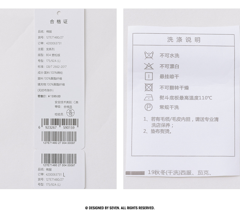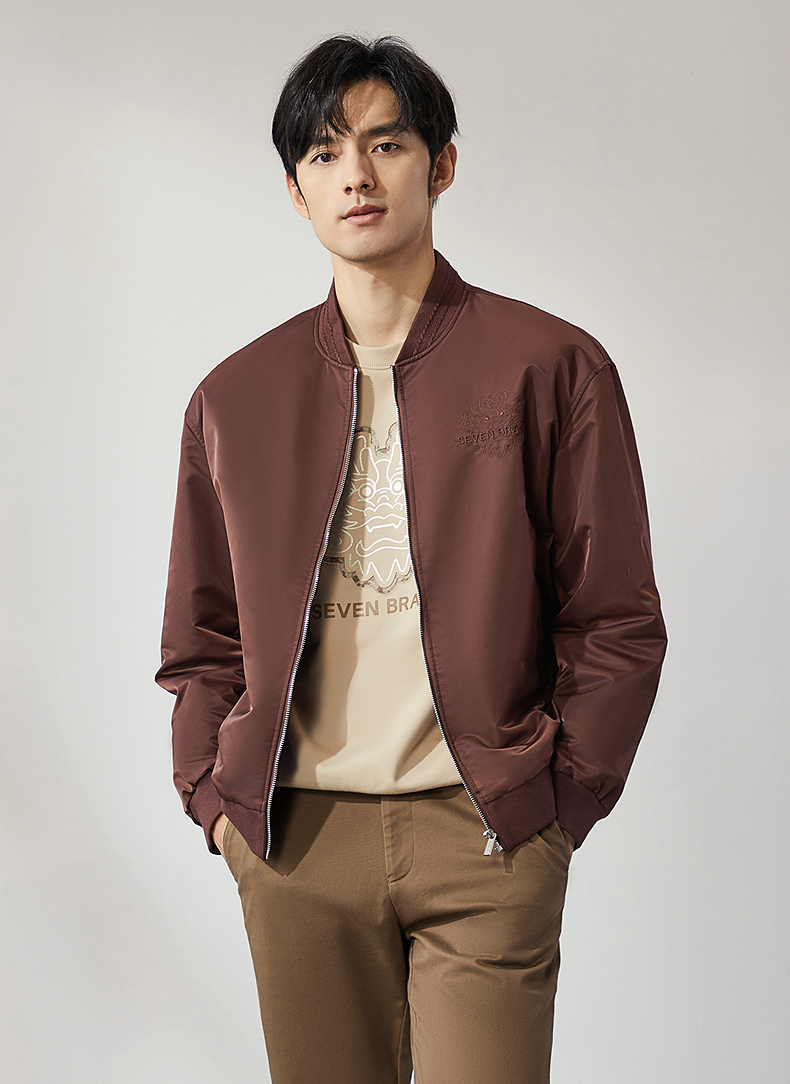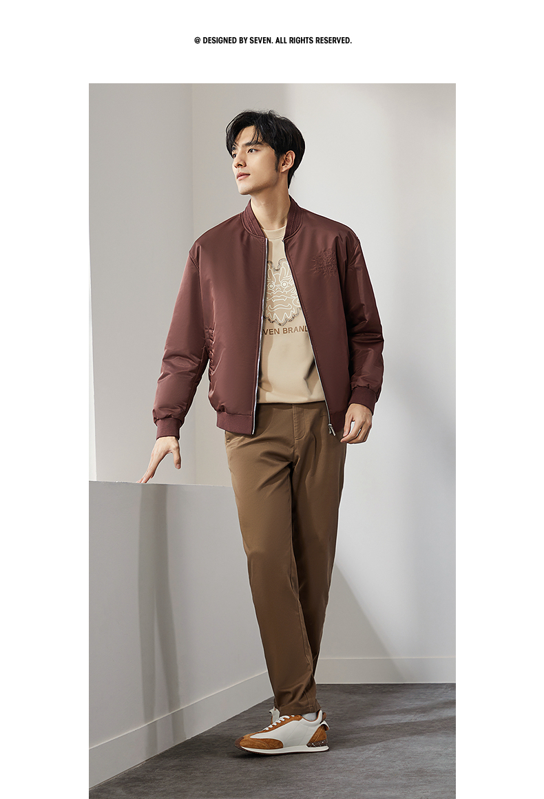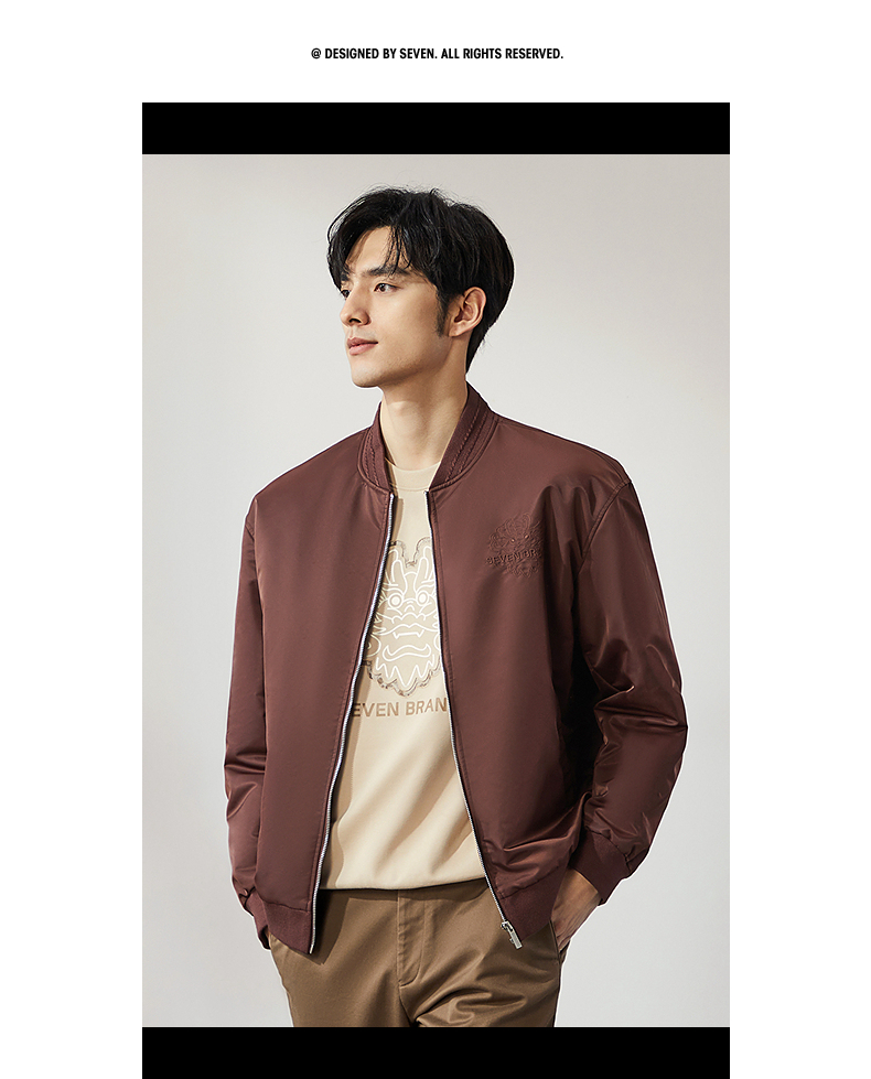 【龙系列】柒牌棉服男2024冬季新款棒球领时尚休闲龙纹绣花厚外套 127E71480