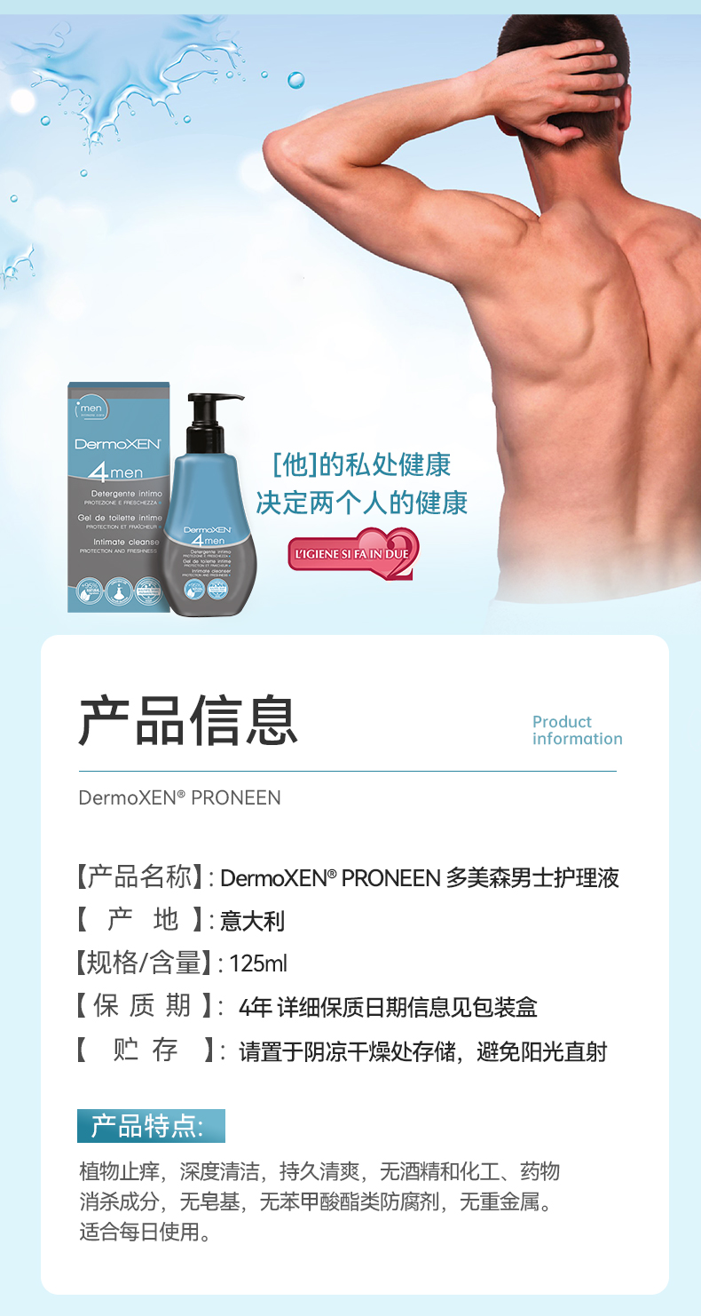 【抑菌止痒】意大利多美森男士护理液 DERMOXEN男性私处清洁洗护液 欧盟认证 原装进口125ml/瓶