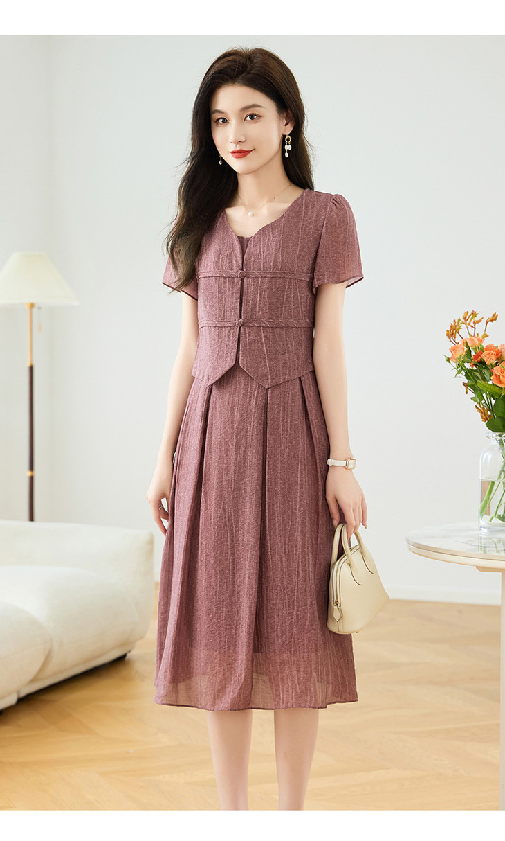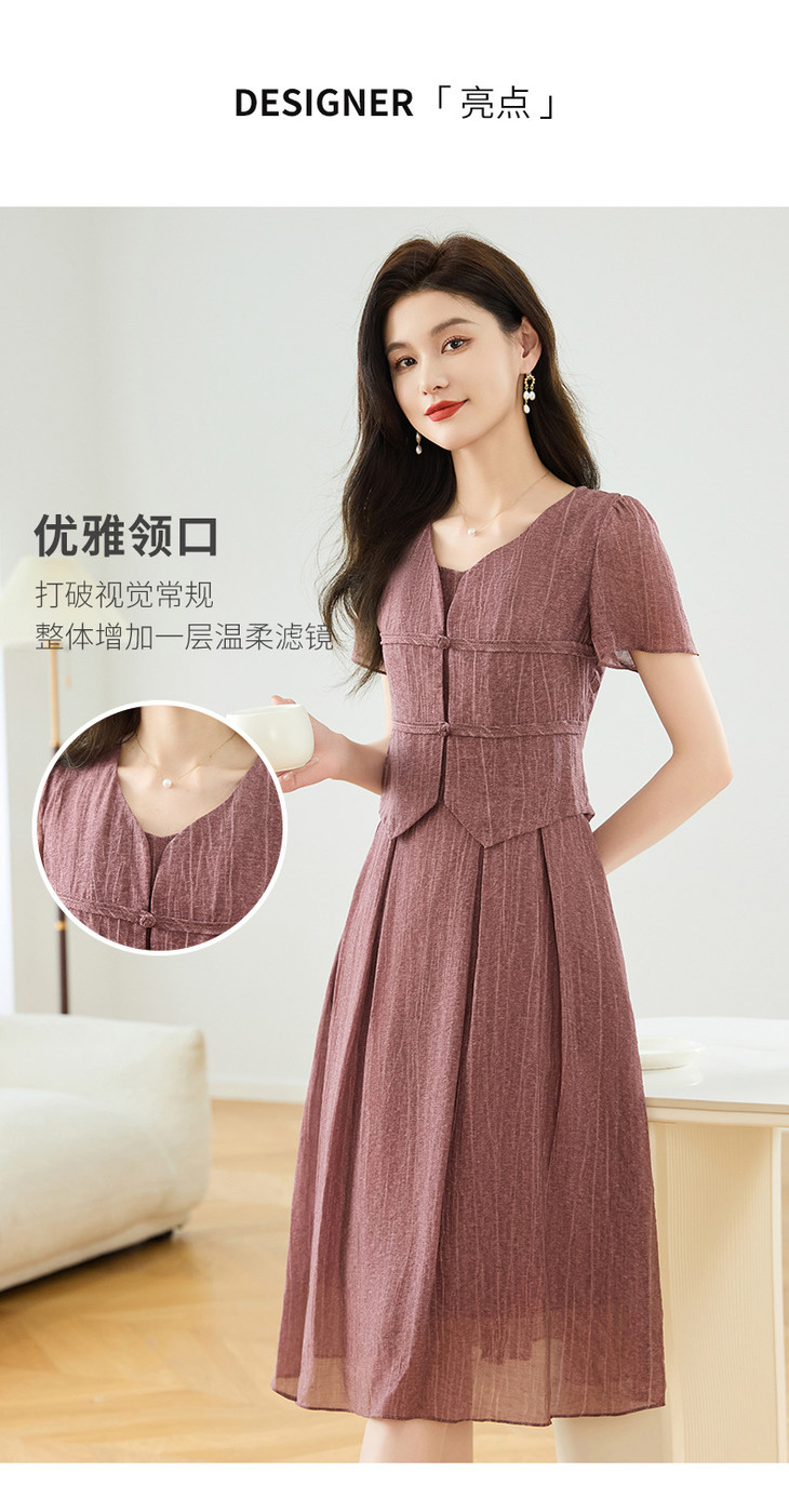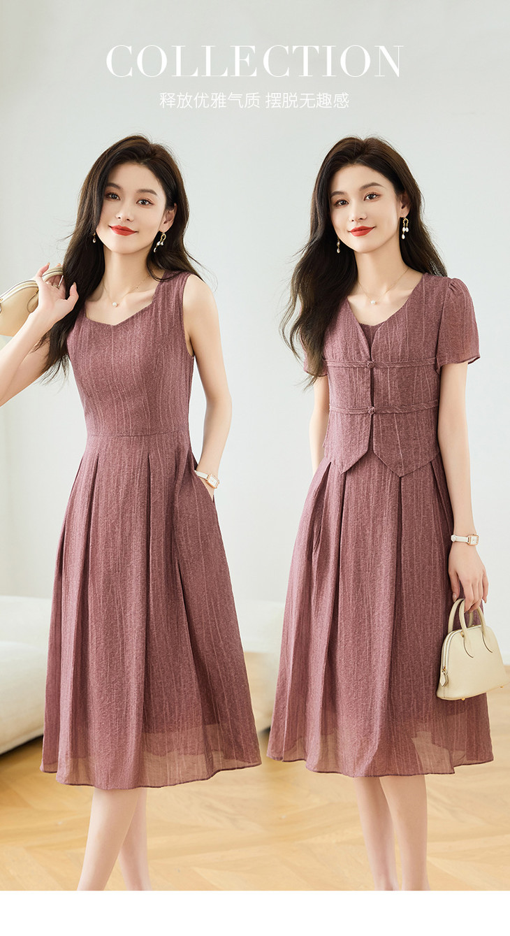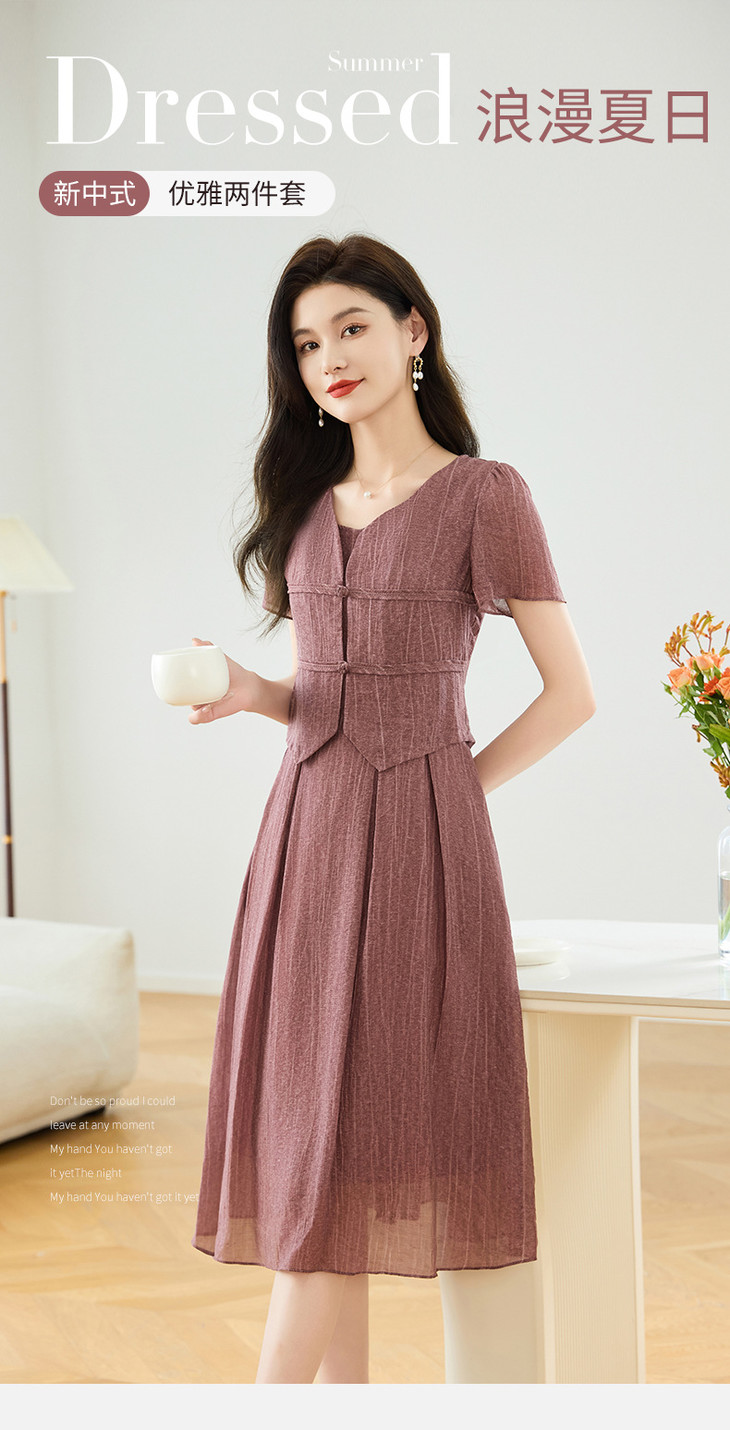 无袖小香风短款中式外套裙子套装QYM-TB-FD1747-Y
