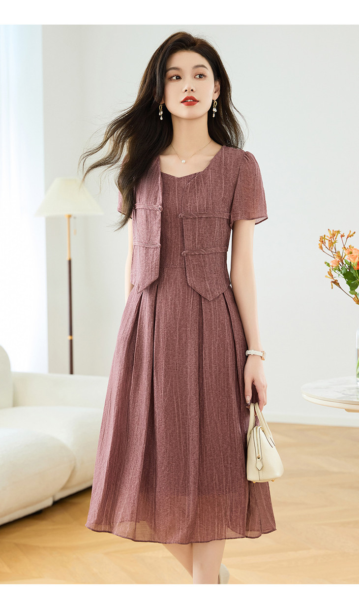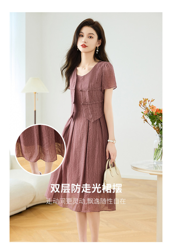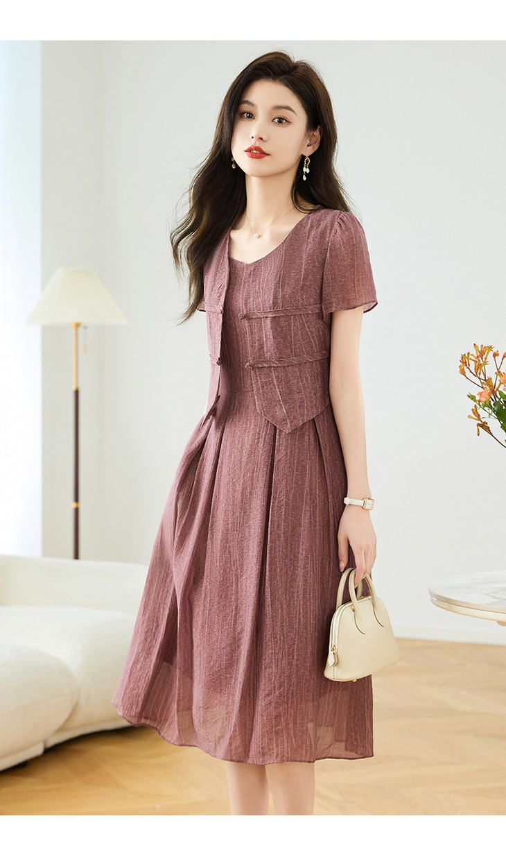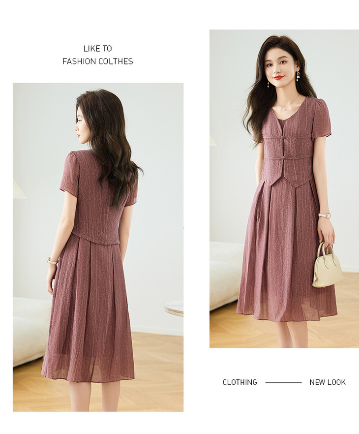 无袖小香风短款中式外套裙子套装QYM-TB-FD1747-Y