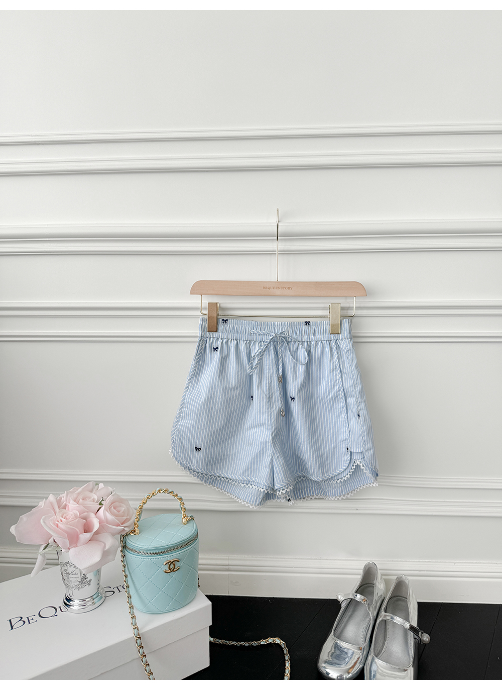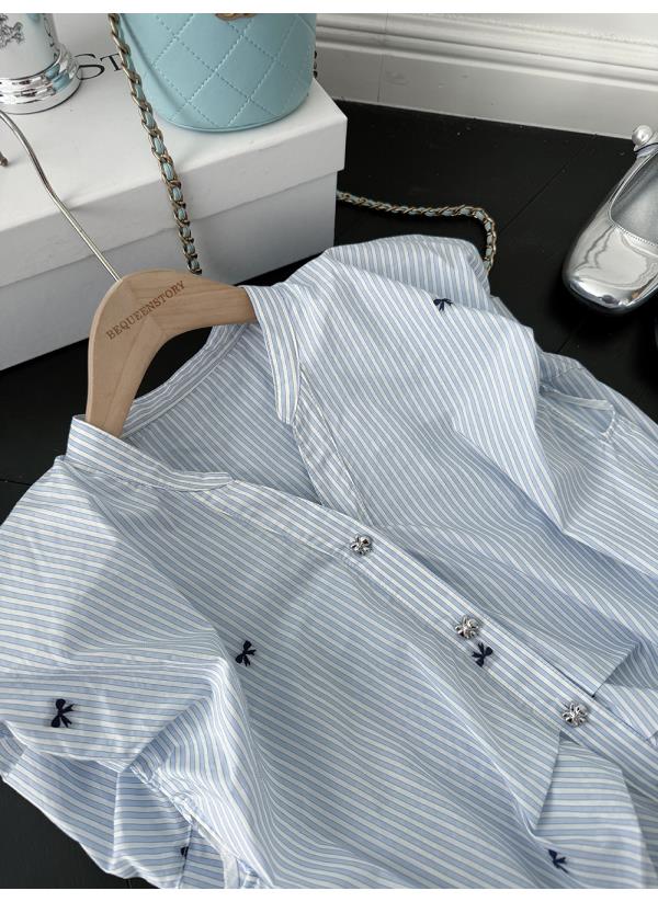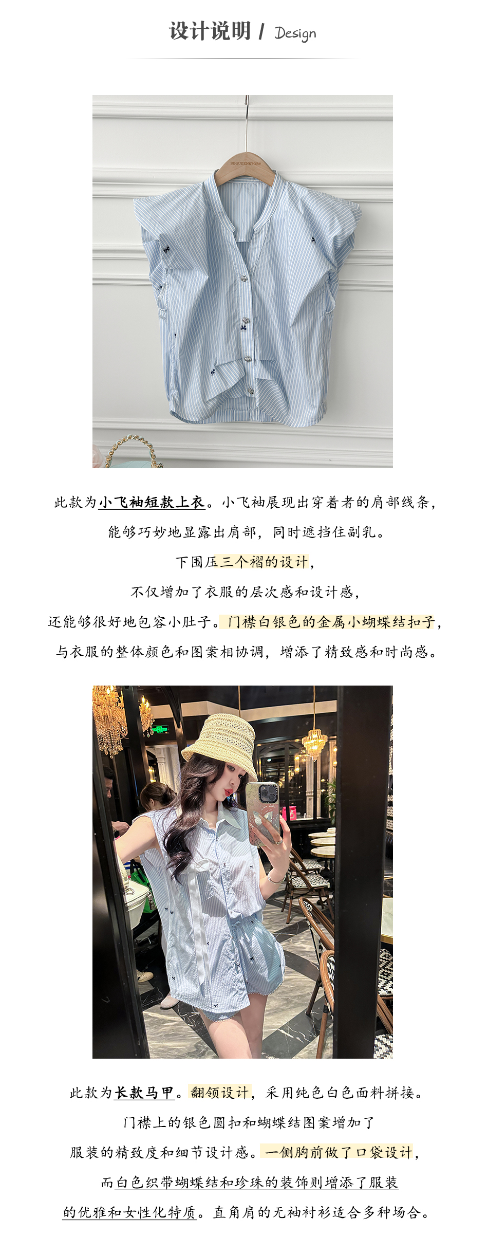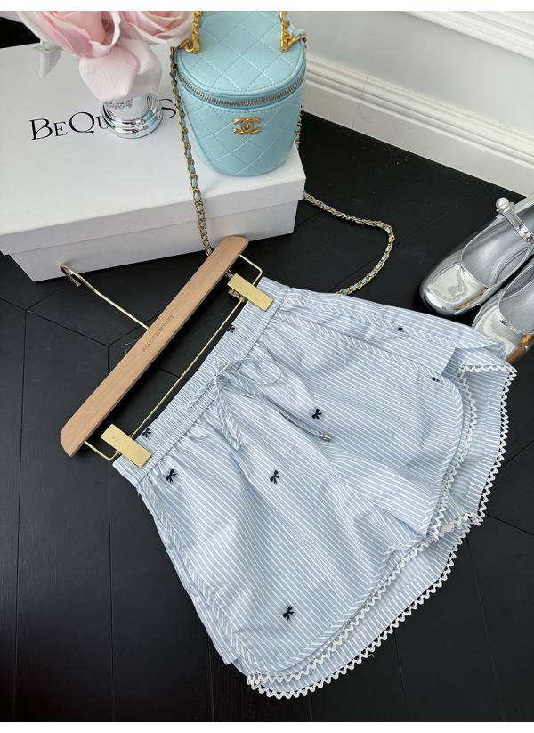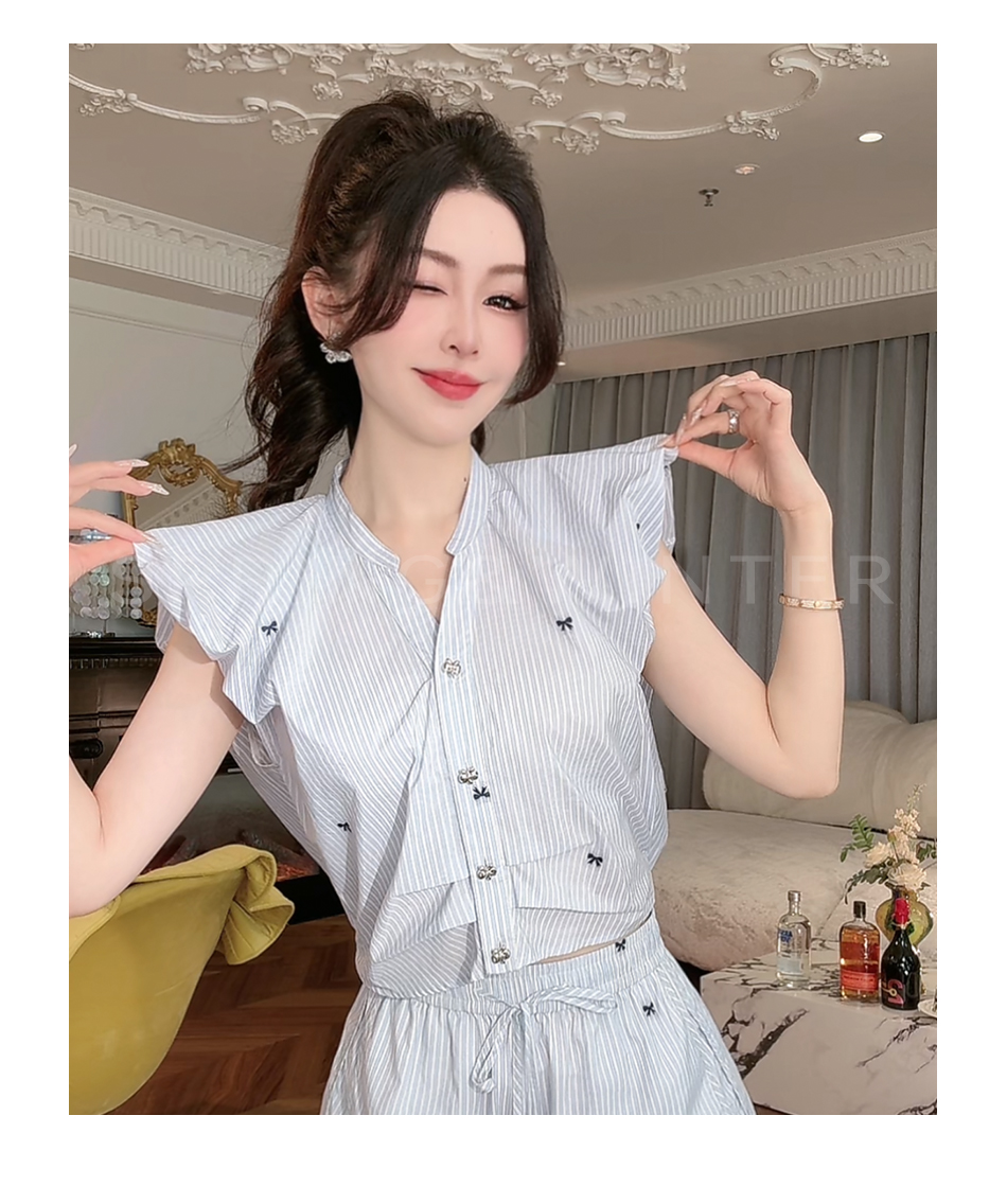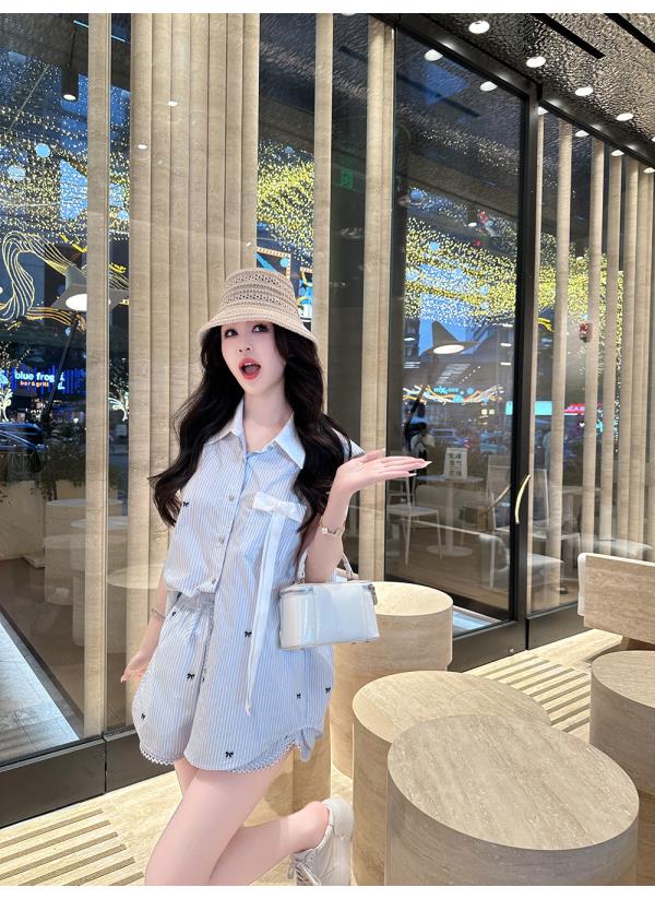 BeQueenStory【少女图鉴】海魂风条纹设计感蝴蝶结马甲休闲短裤套装