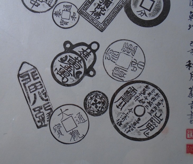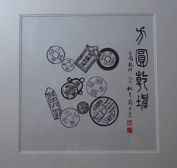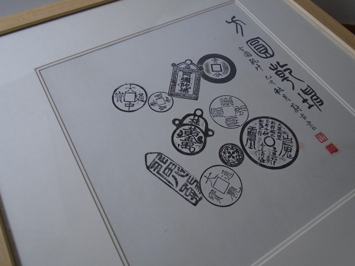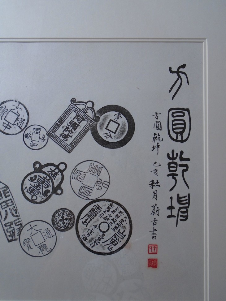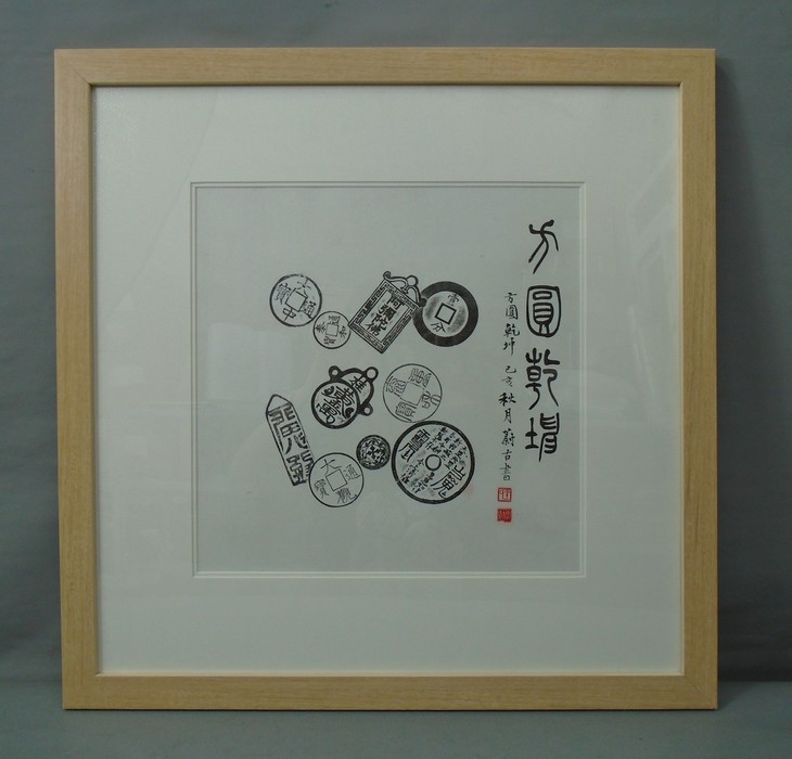 古泉书馆原拓挂件,书馆专职拓工精心拓纸而成,名家题字,精工装裱,超凡脱俗,钱币均为市面难寻的珍惜钱币,每一件都独一无二的精品, 精美绝伦!