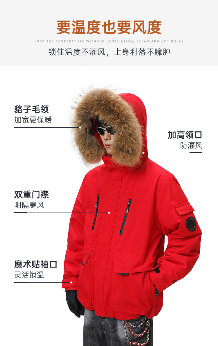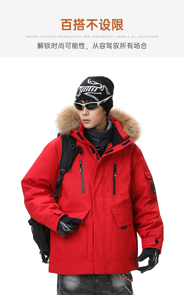 【工装派克羽绒服】户外休闲羽绒服新年外套本命年红色通勤保暖长袖上衣YT601