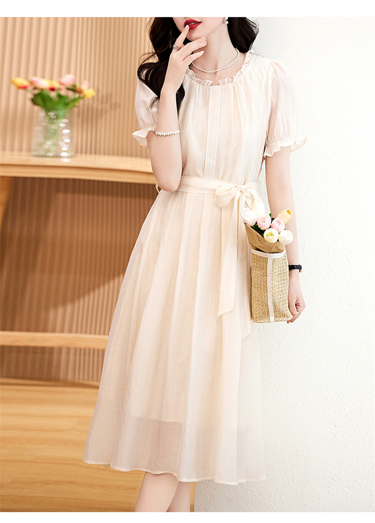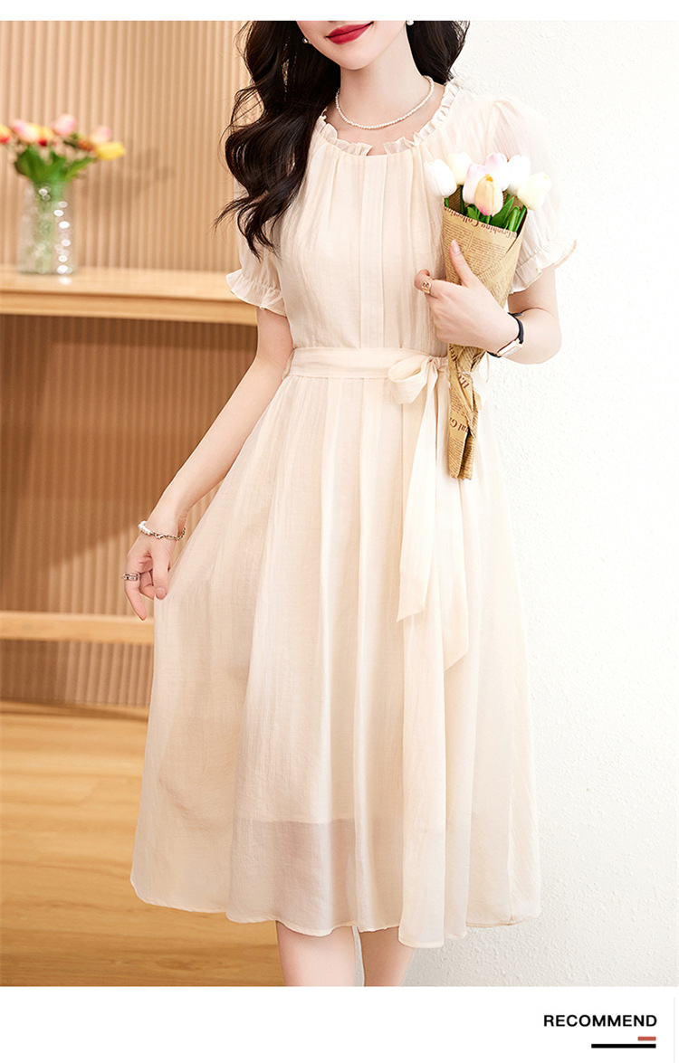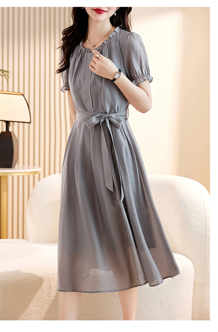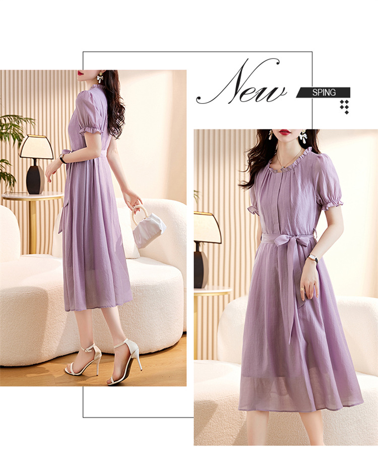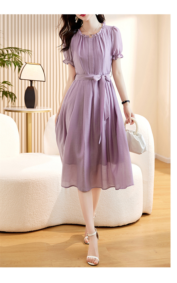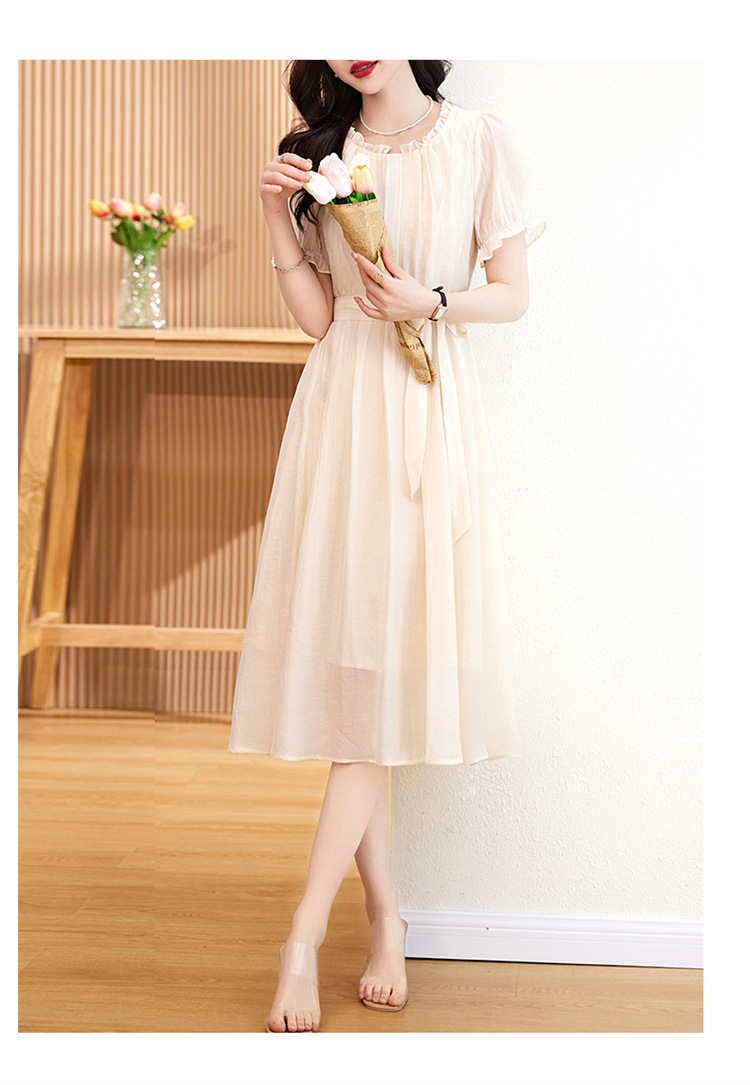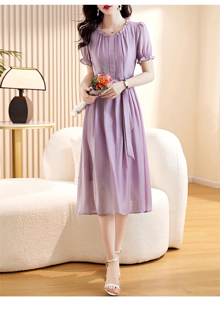 气质花边圆领天丝裙优雅透气纯色中长款裙HR-WW23189