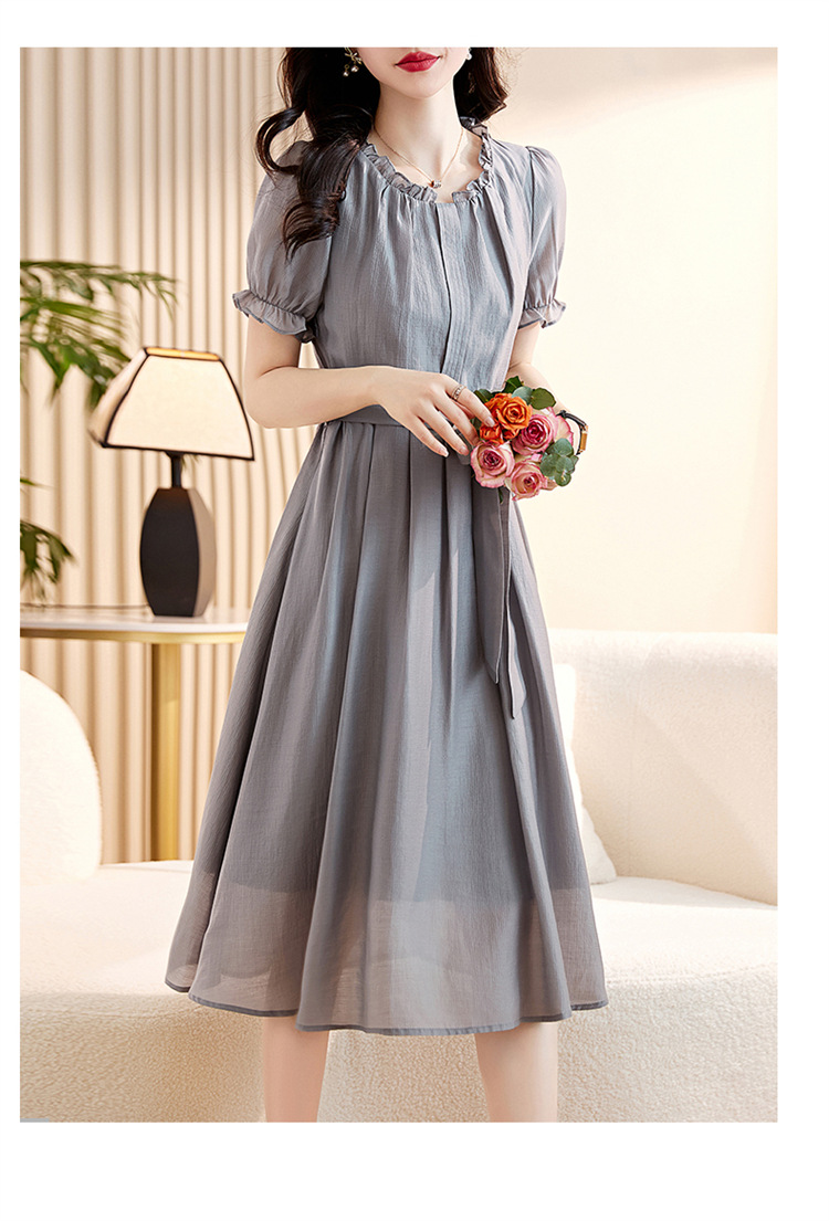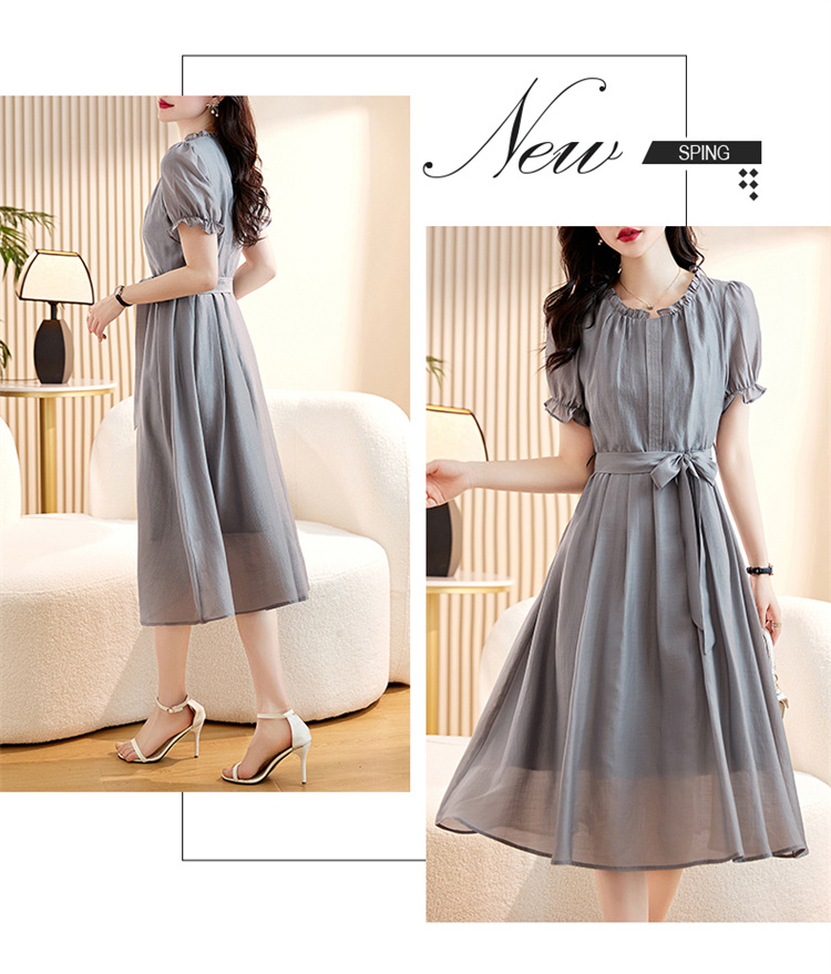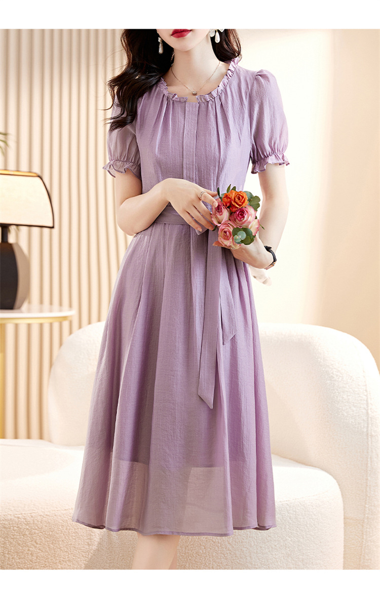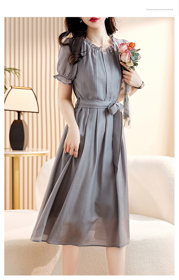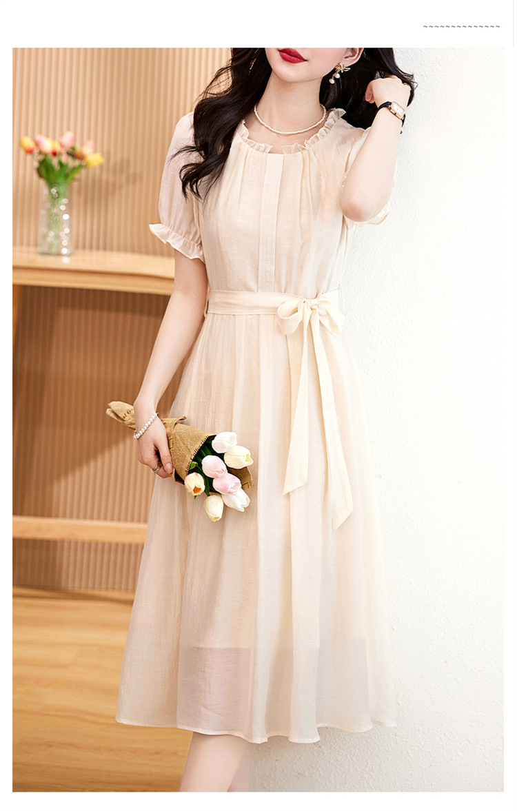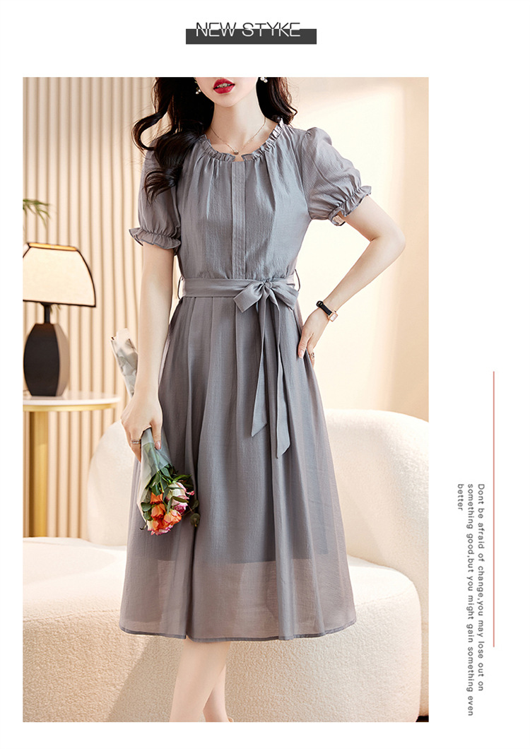 气质花边圆领天丝裙优雅透气纯色中长款裙HR-WW23189