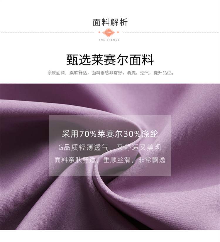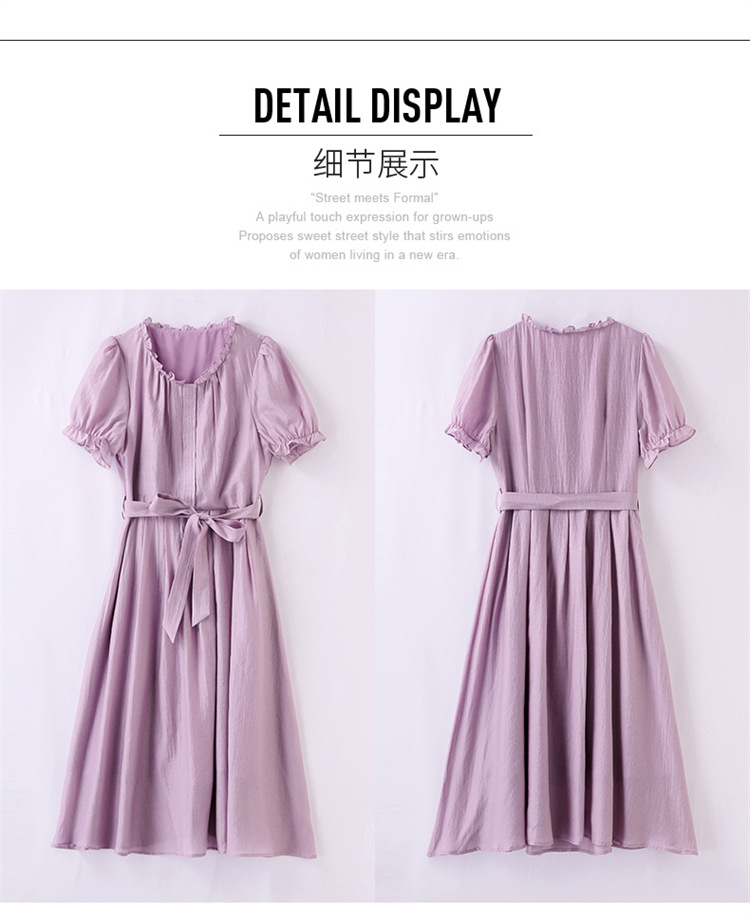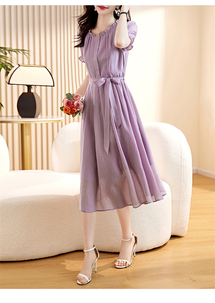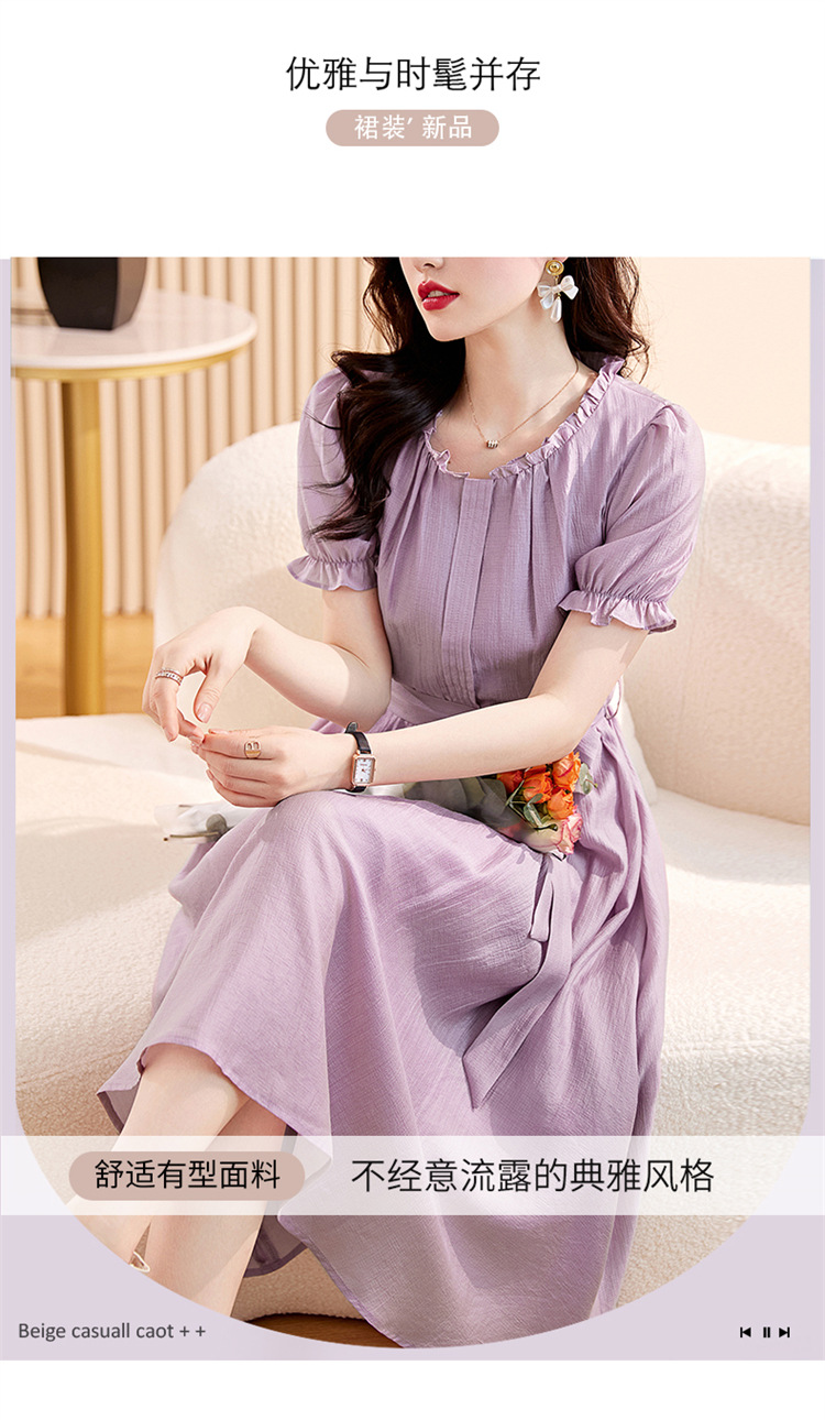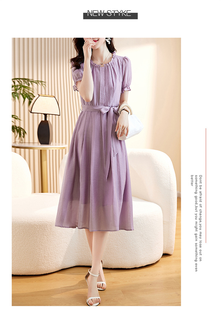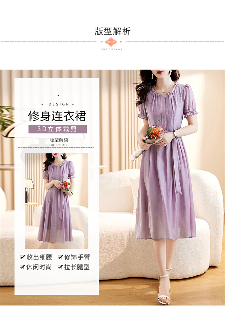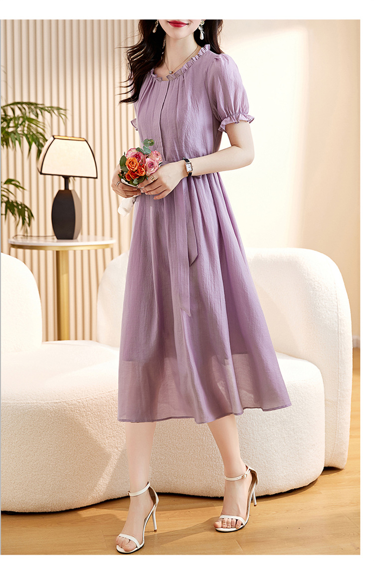 气质花边圆领天丝裙优雅透气纯色中长款裙HR-WW23189