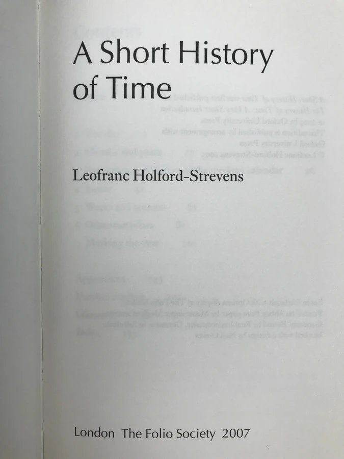 英国古典学者斯特雷文斯《时间简史》, 26幅插图 ,精装32开带书匣,弗里欧书社出品。这部作品探讨了时间概念的形成和发展,计量、历法、节日等等都在其论述的范围内,同时引用了大量有趣的历史典故,文风活泼,深入浅出~