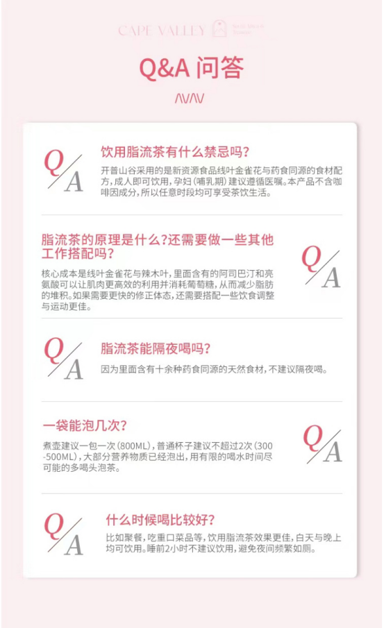 👏🏻👏🏻开普山谷每一袋脂流茶都含有整整6克的原料,泡出来的茶汤营养丰富 口感清新,效果更好。