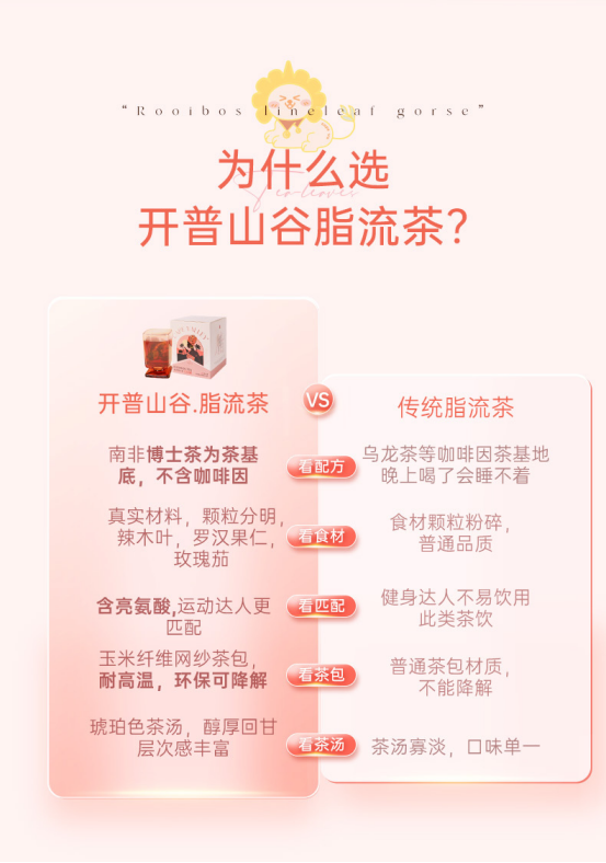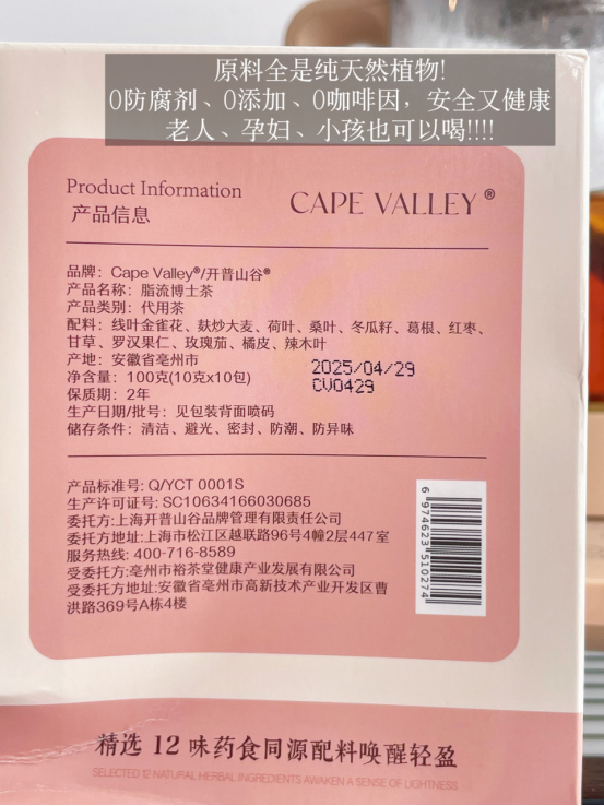 🤩🤩开普山谷脂流博士茶和市面上其他脂流茶最大的差异是:茶底完全不含咖啡因‼️‼️ 这完全打破了以往脂流茶的传统 是一款更健康、无负担的减脂瘦身茶饮 对老人和有心血管问题人群更友好 咖啡因不耐受人群也能轻松享受茶饮的美妙~