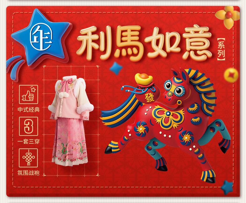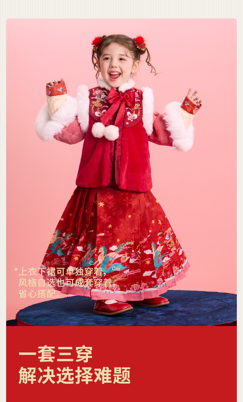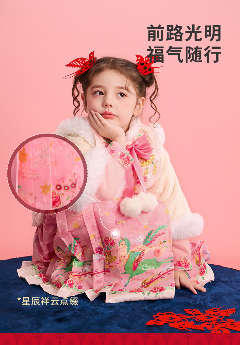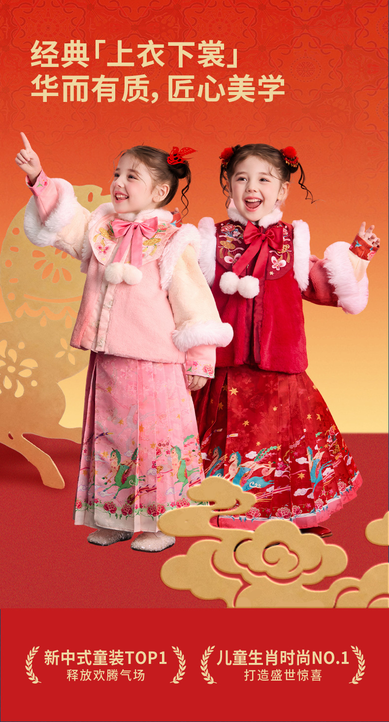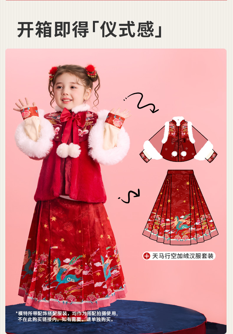 年衣童装加绒汉服套装女童冬季儿童马面裙中式天马行空加绒汉服套装