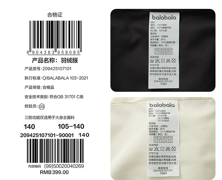 巴拉巴拉balaOne童装儿童羽绒服冬装男童宝宝拼接外套三防2025潮