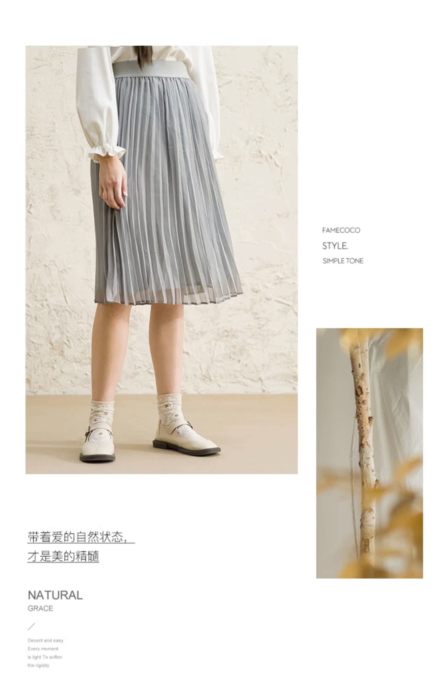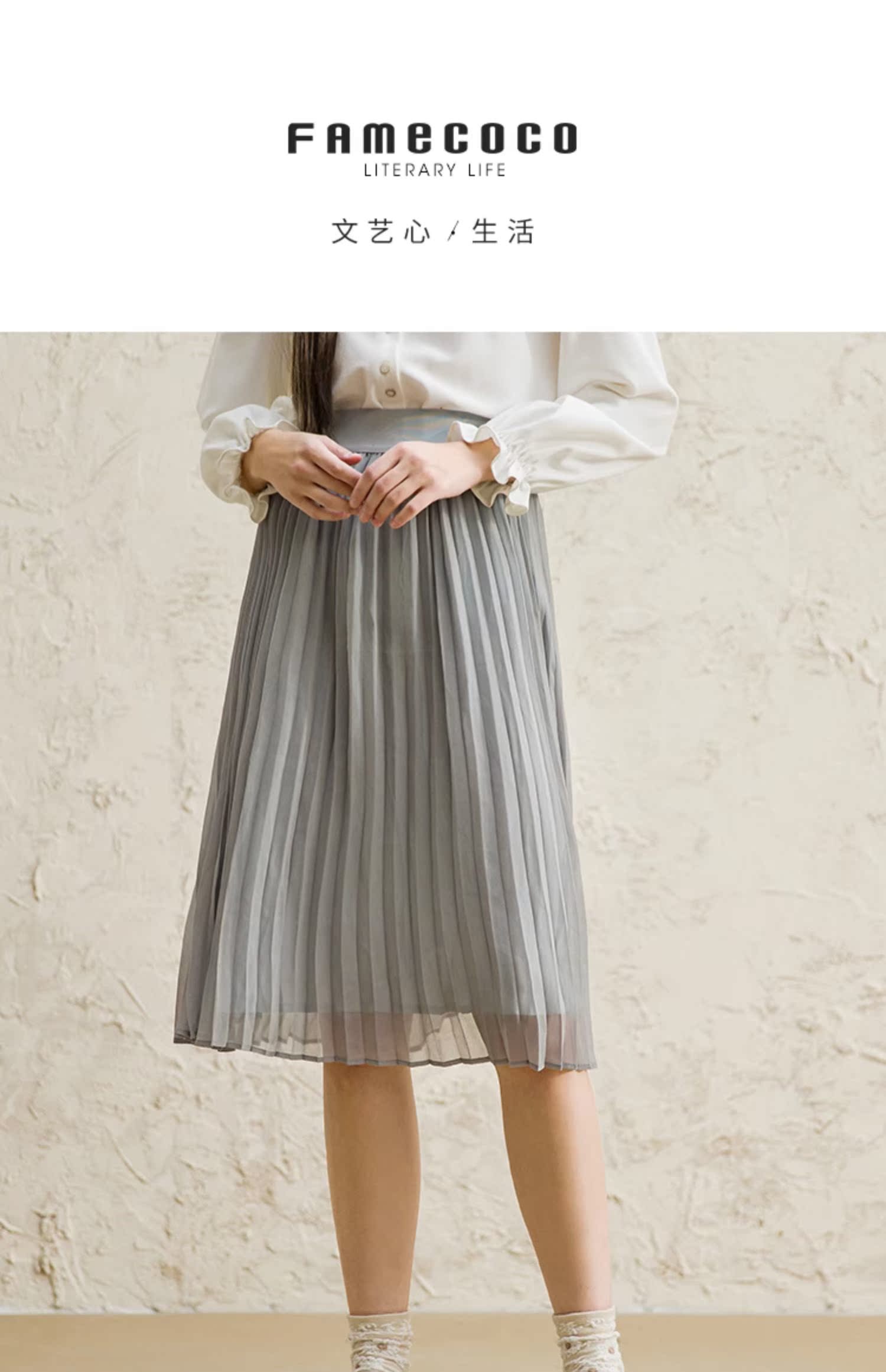 Famecoco范可儿双层百褶裙弹力腰秋款驼色女士半身裙F211HA010