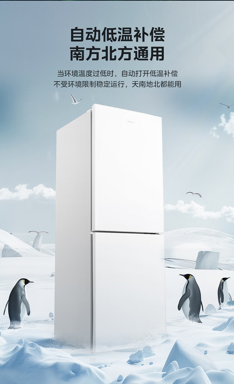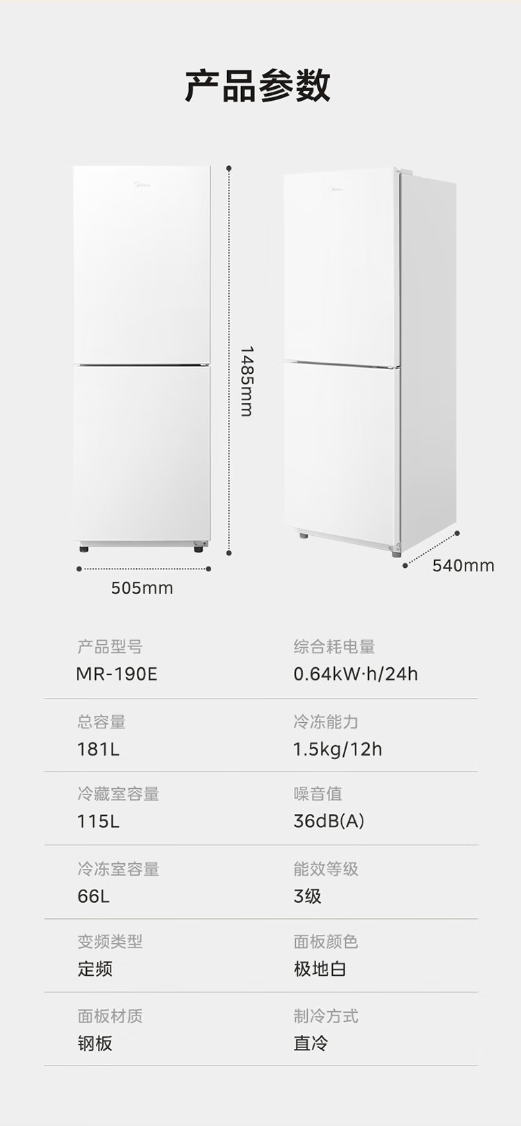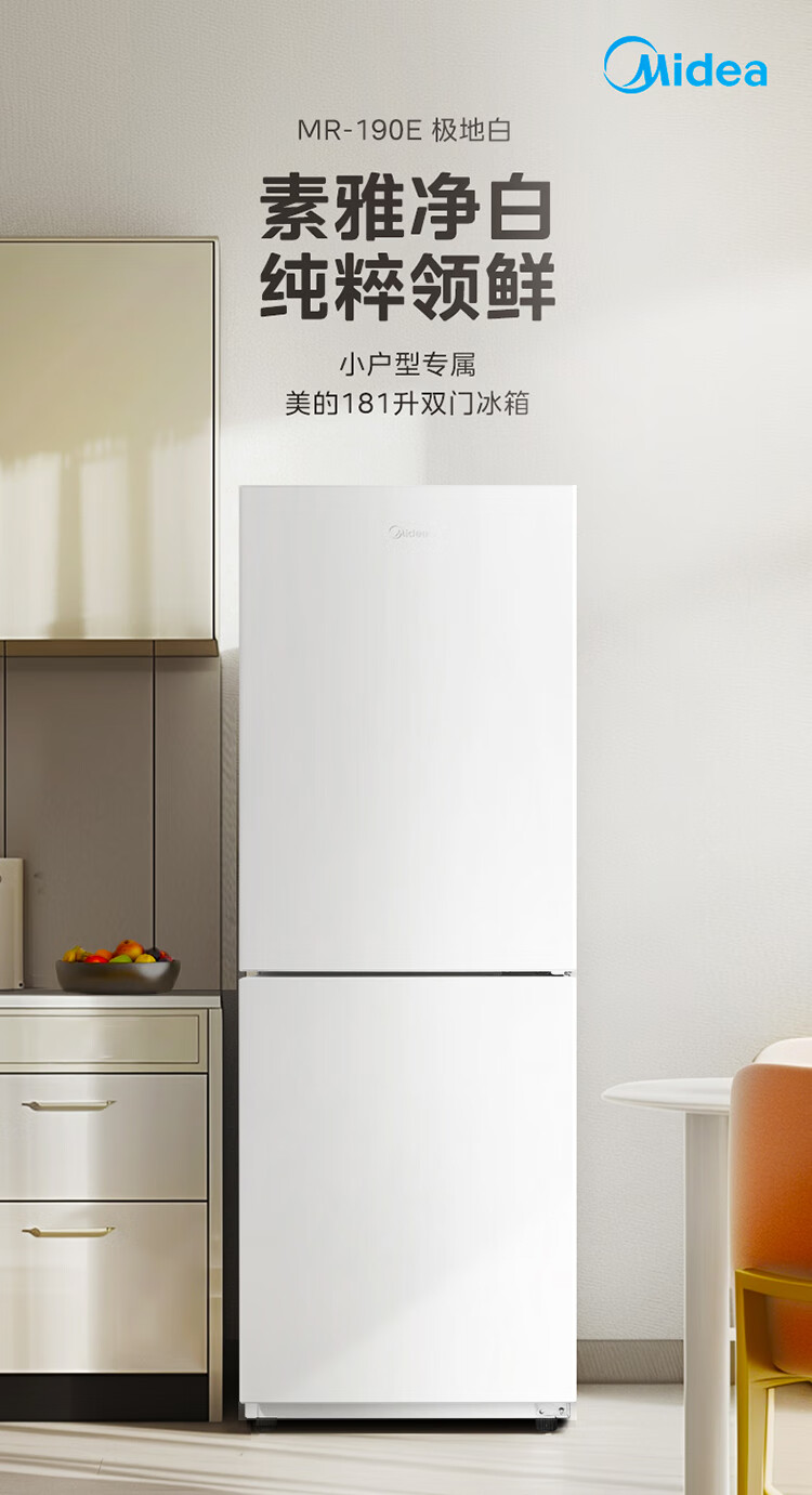 美的(Midea)白色双开门 两门小户型 客厅家用电冰箱 租房宿舍 低音节能 低噪 可冷藏冷冻速冻 不占地MR-190E