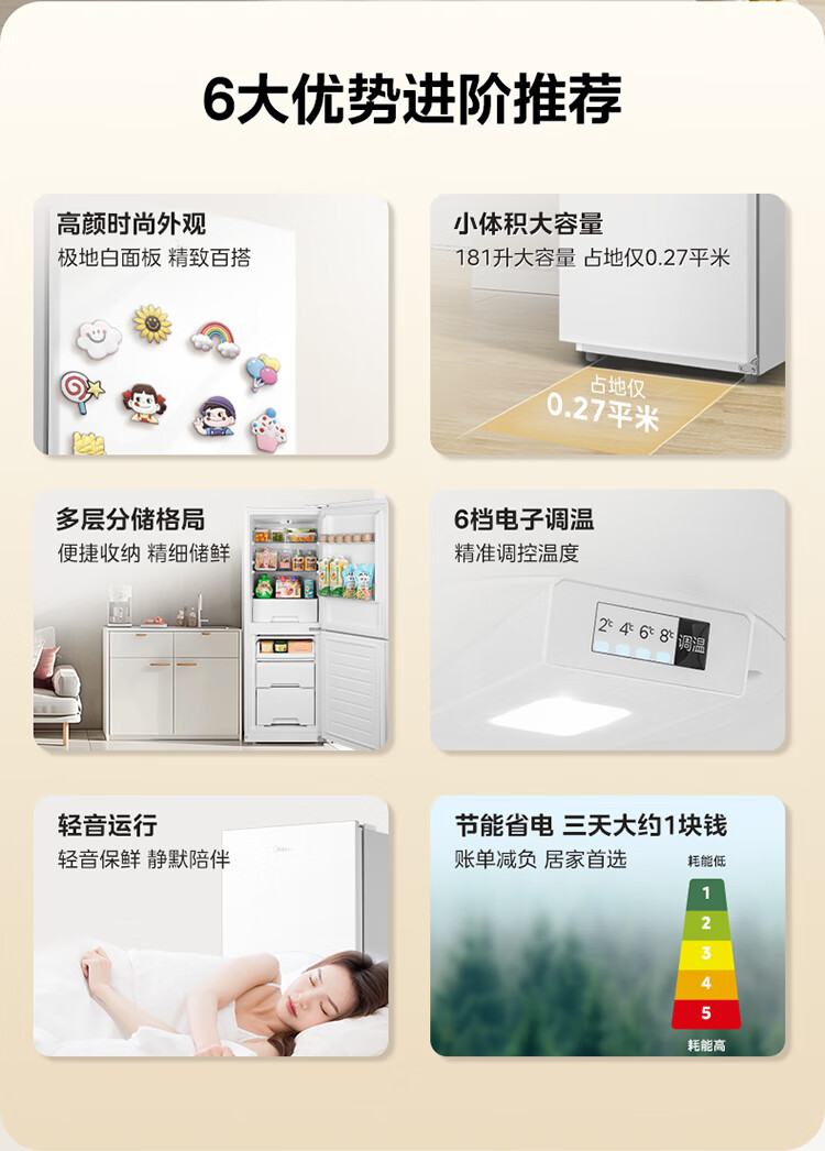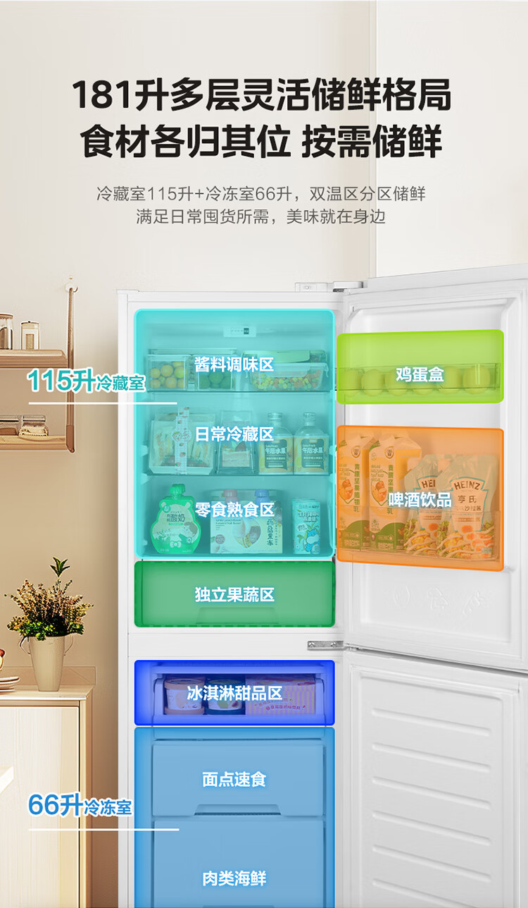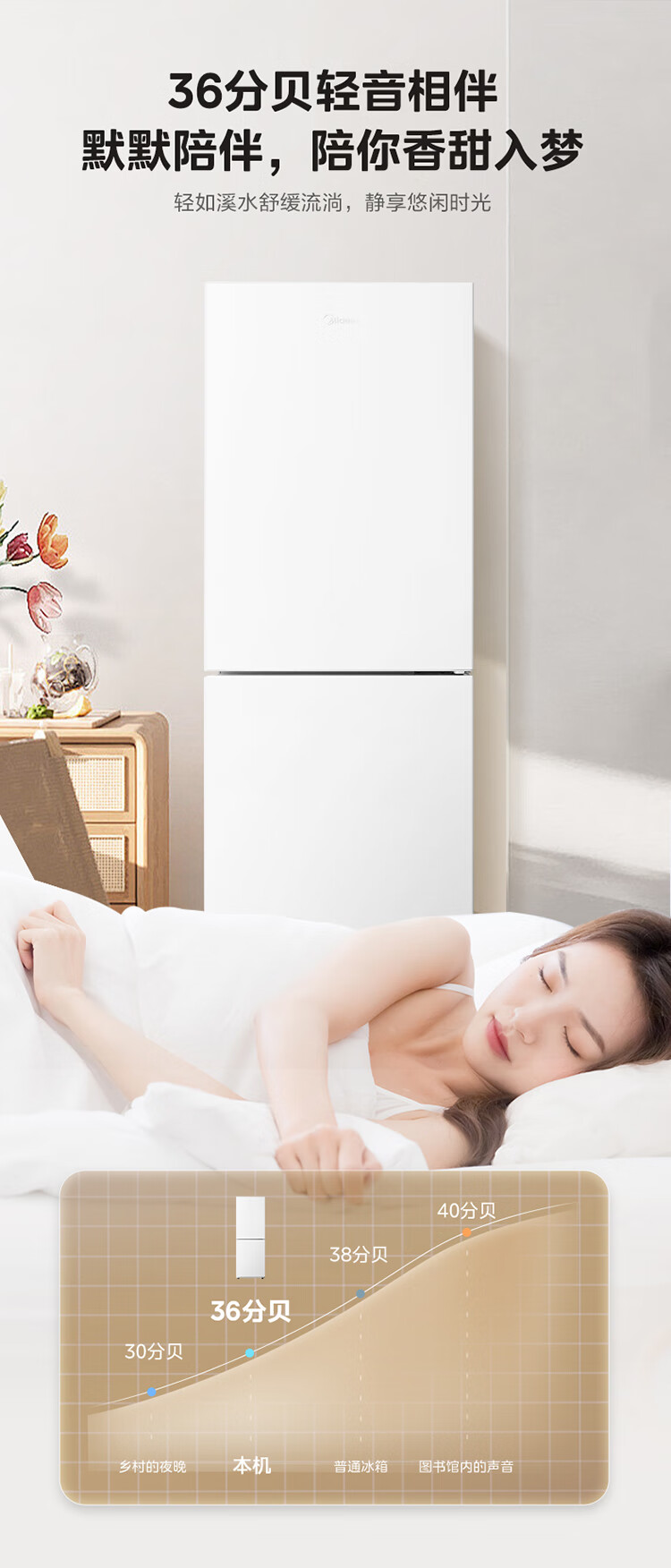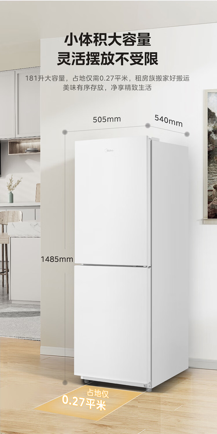 美的(Midea)白色双开门 两门小户型 客厅家用电冰箱 租房宿舍 低音节能 低噪 可冷藏冷冻速冻 不占地MR-190E