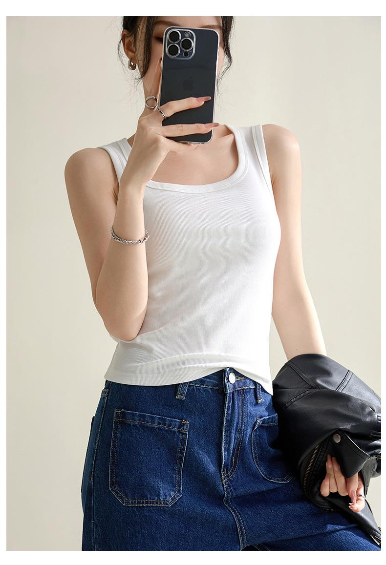 爆款凉感螺纹辣妹背心吊带女内搭外穿无袖2024春夏新款白色修身