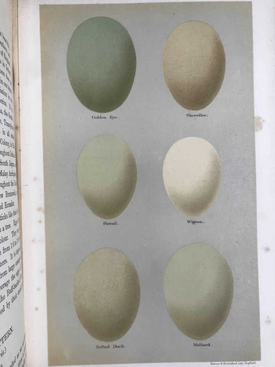 含藏书票!1896年 英国鸟卵图集 59页彩色插图 漆布精装16开