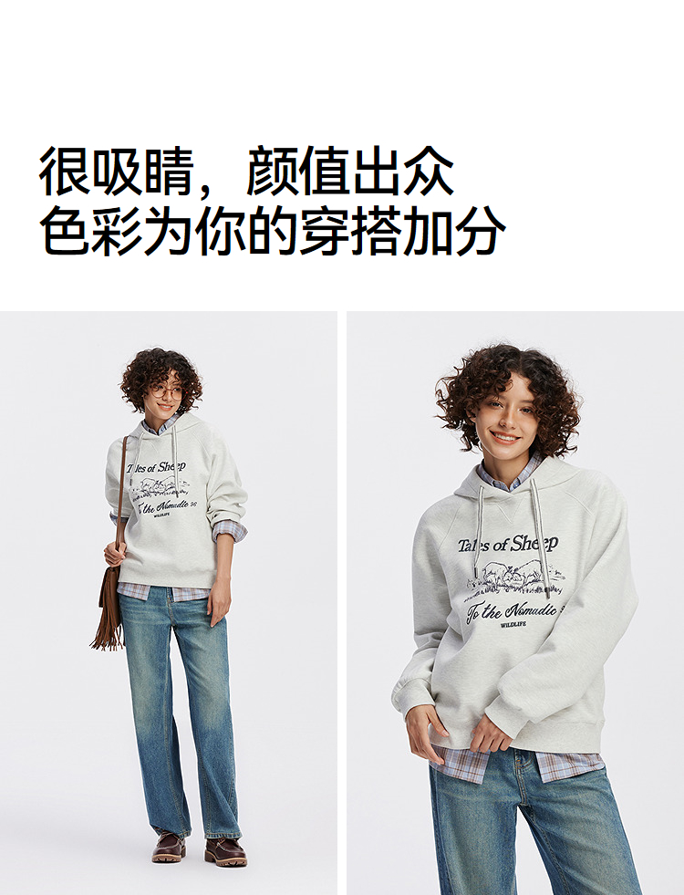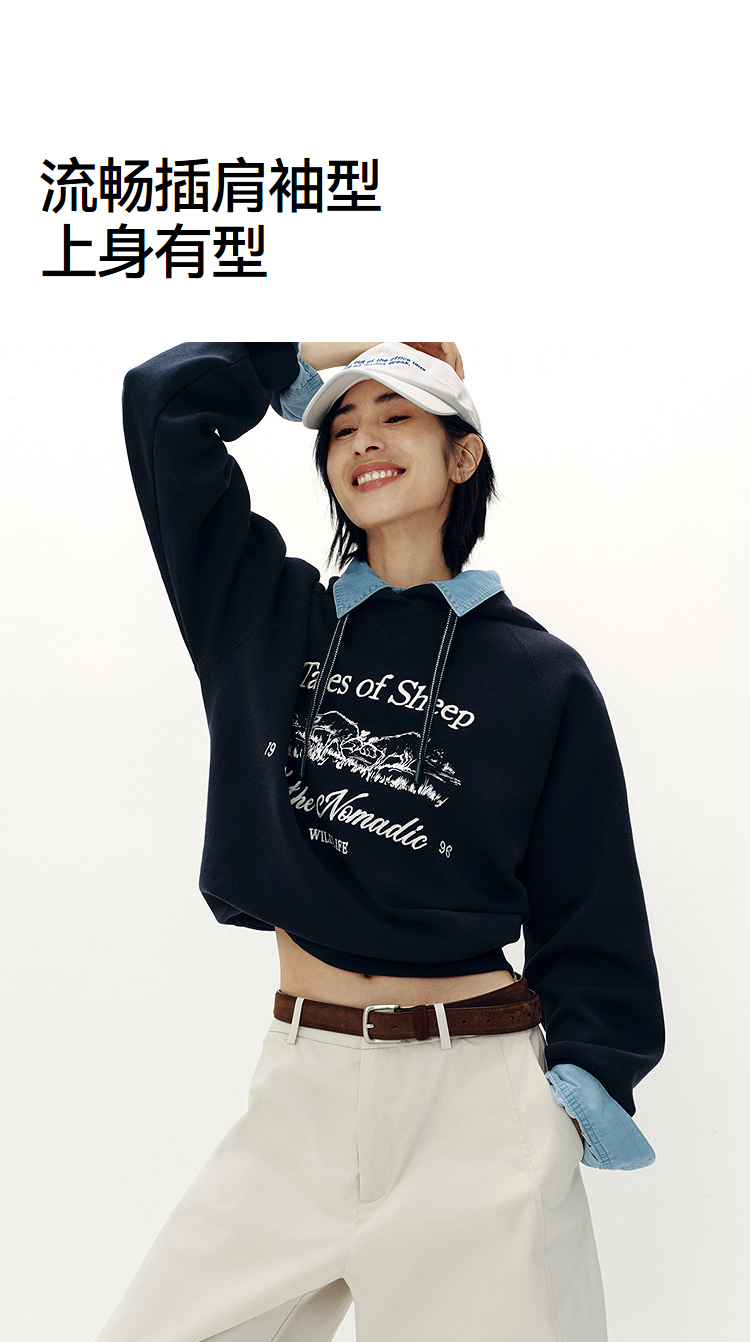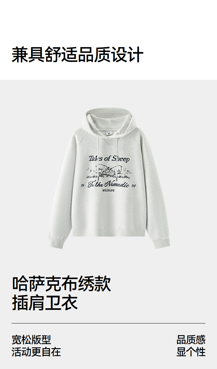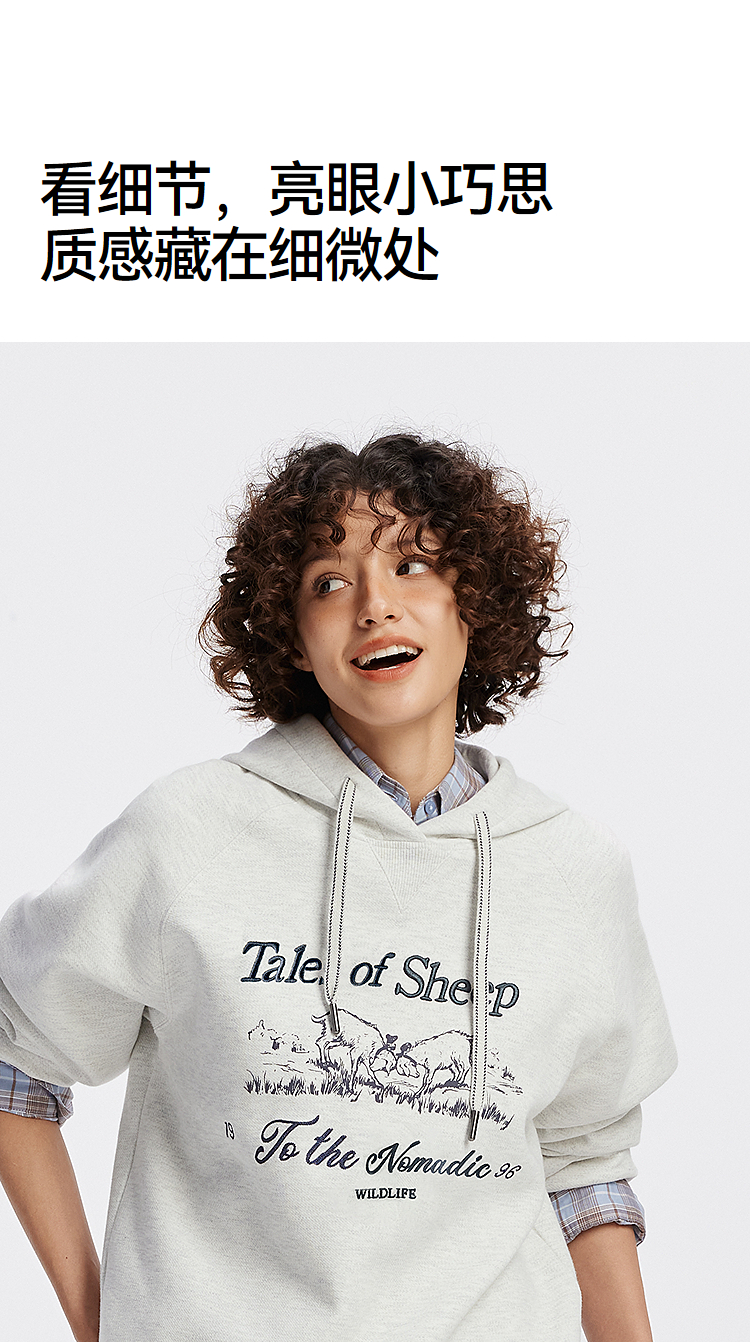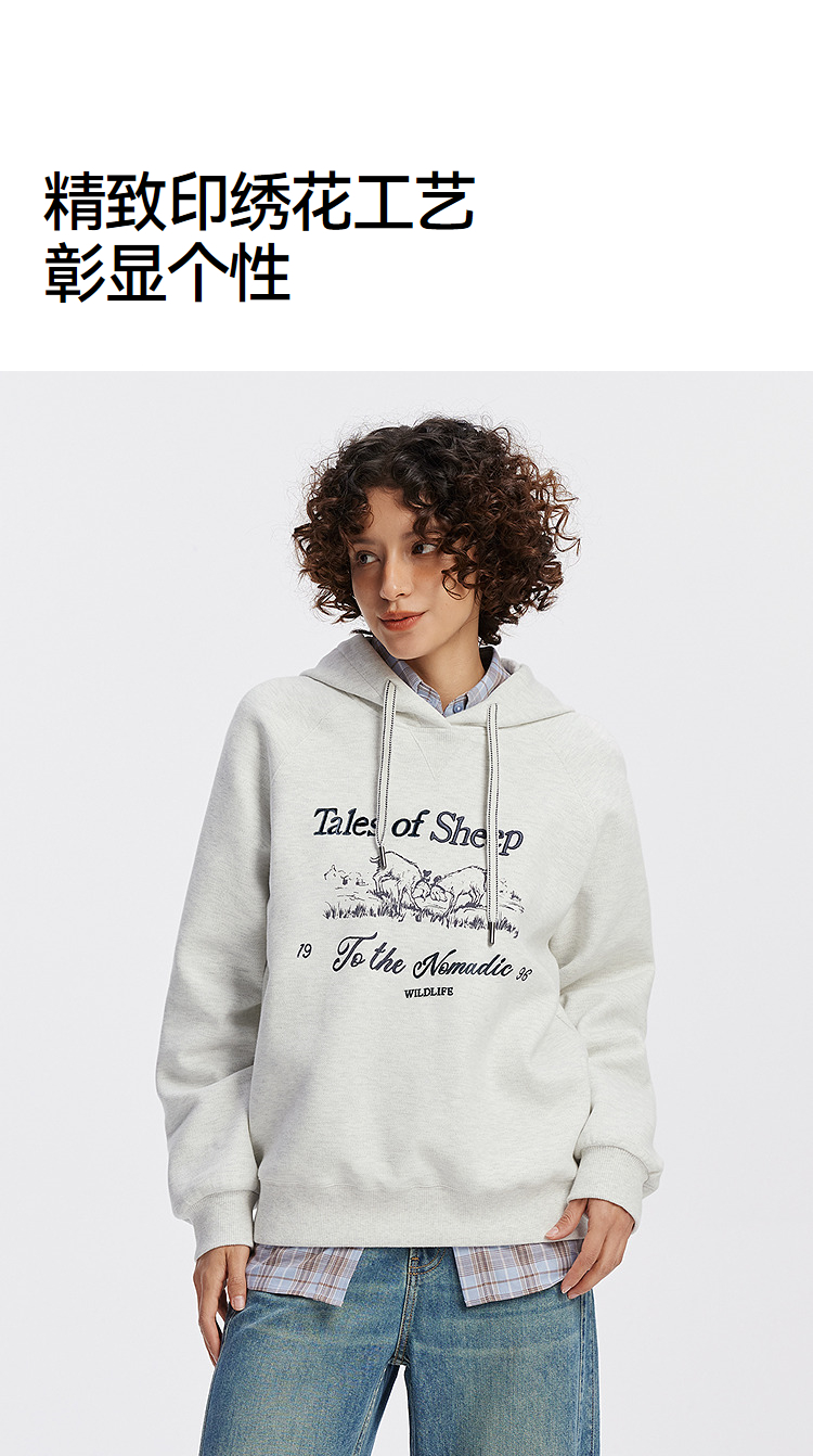 [商场同款]森马哈萨克布绣款卫衣女连帽插肩袖2025秋新款宽松衣服