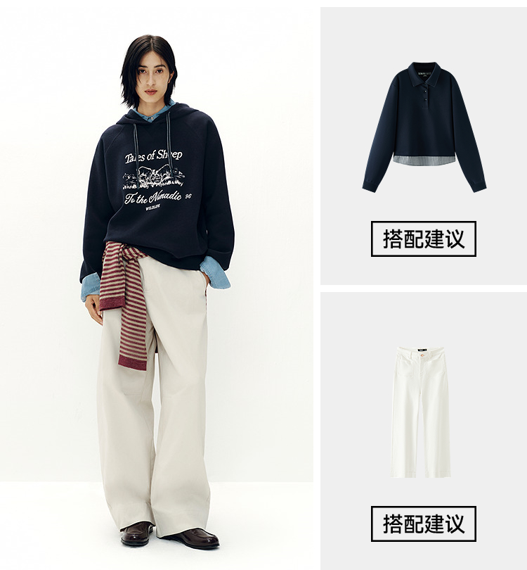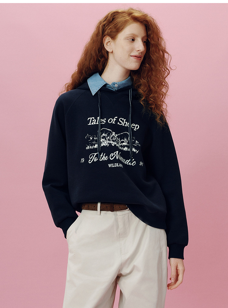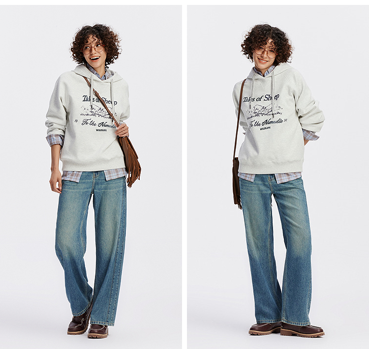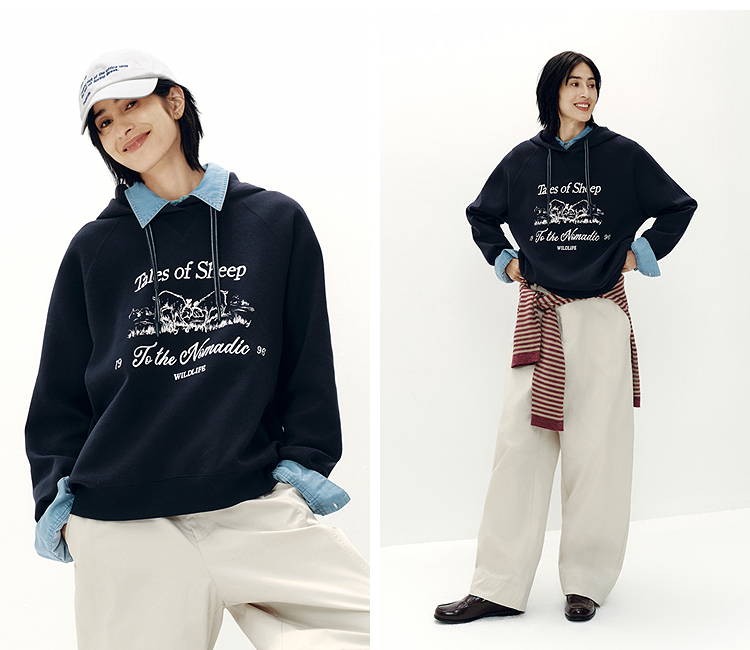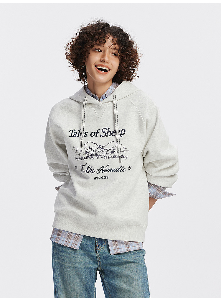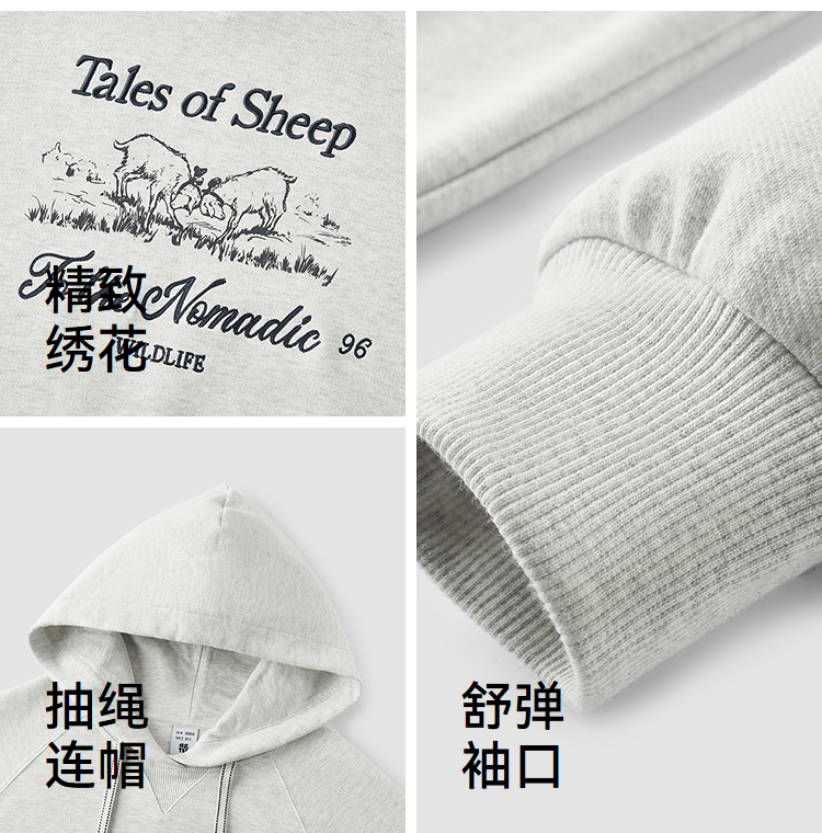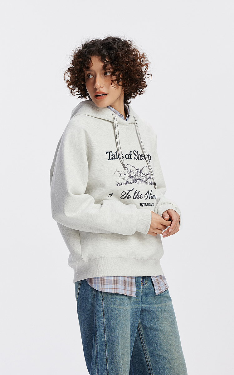 [商场同款]森马哈萨克布绣款卫衣女连帽插肩袖2025秋新款宽松衣服