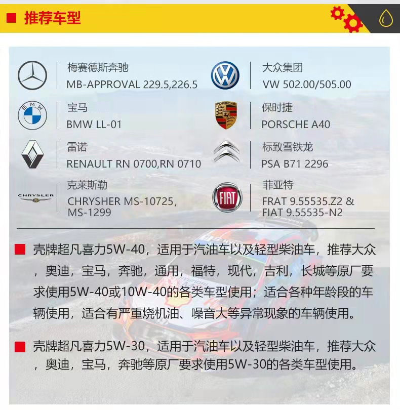 壳牌(Shell)超凡喜力5W-40 API SP 4L 天然气全合成机油