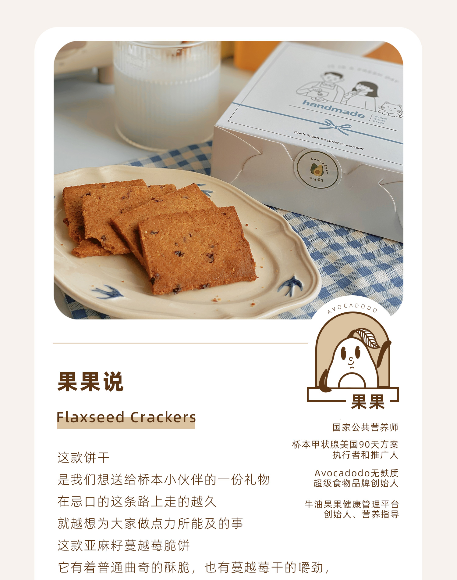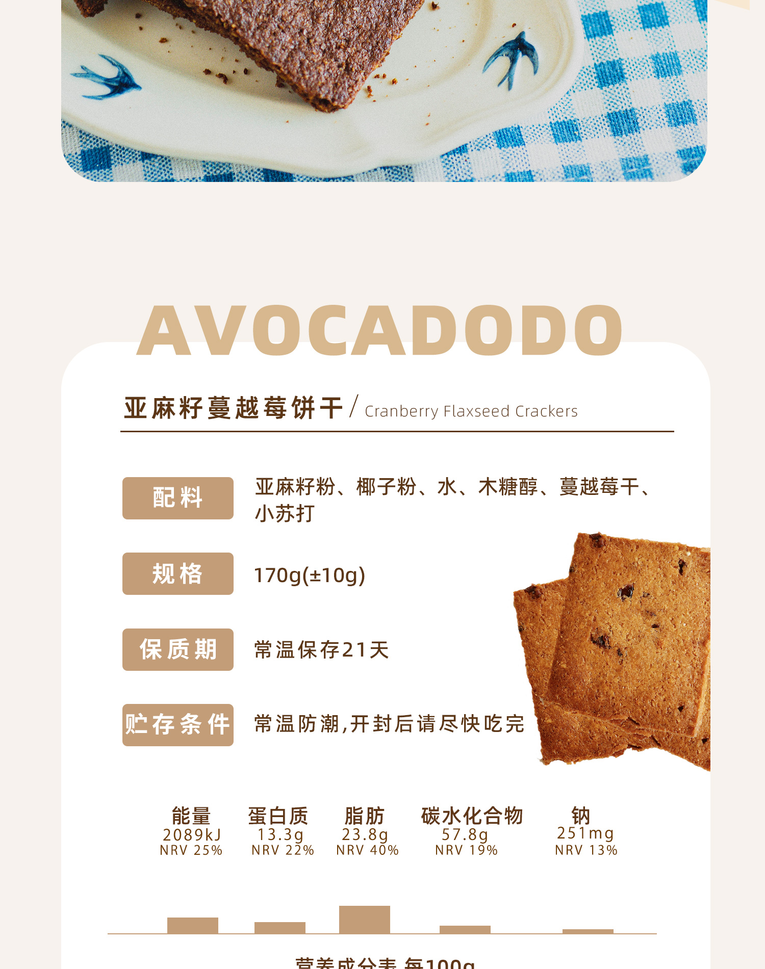 Avocadodo亚麻籽饼干蔓越莓可可不加小麦蛋奶敏宝牛油果果桥本