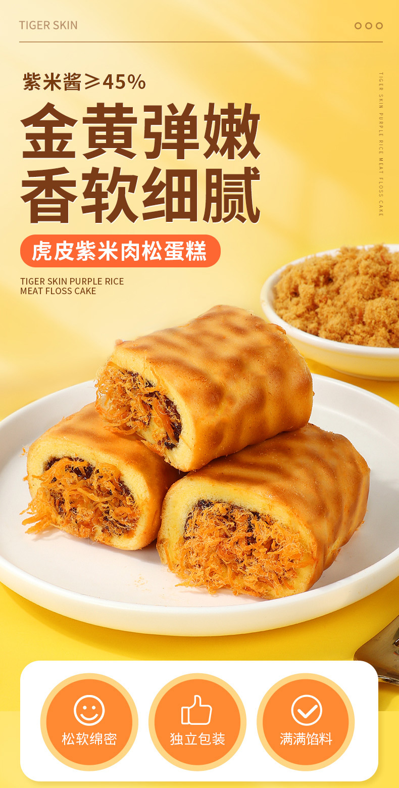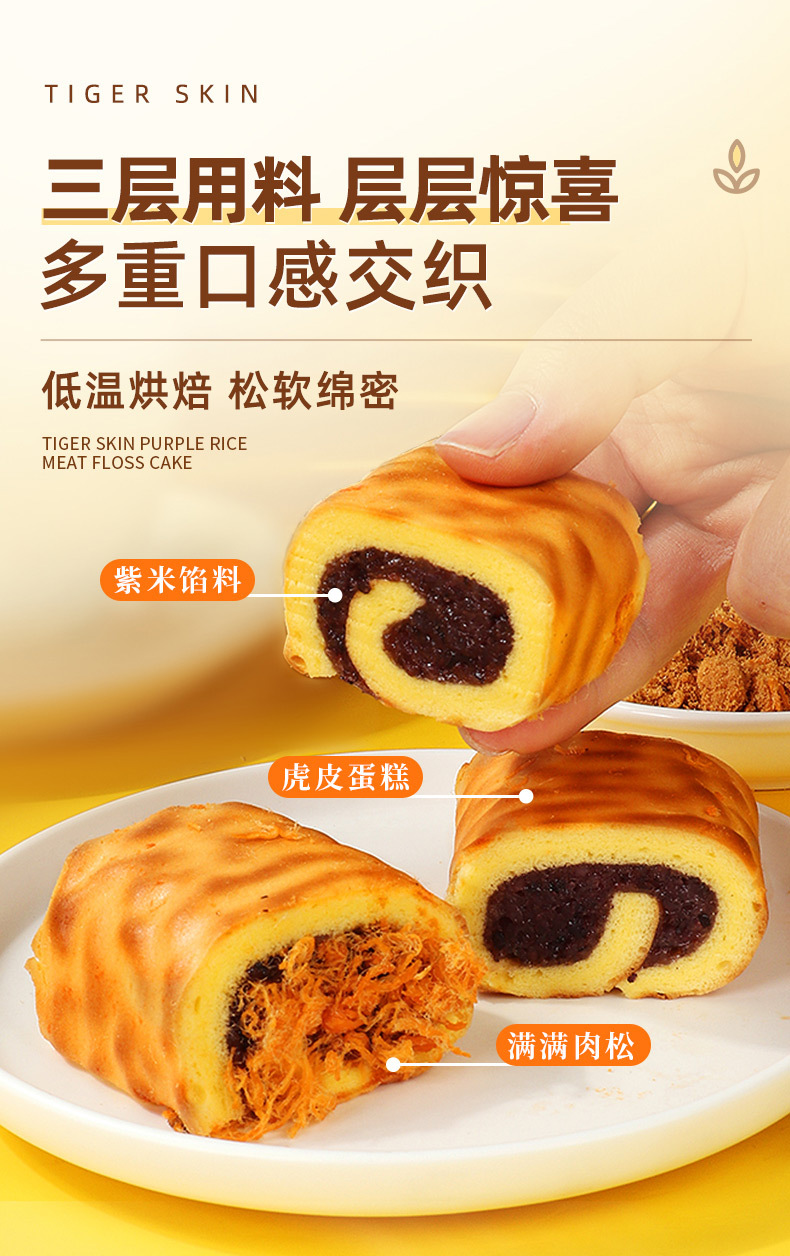 【一口满足料巨多虎皮紫米肉松卷】日期新鲜虎皮紫米面包卷肉松蛋糕,金黄弹软香松细腻好吃不腻,糕点休闲早餐零食品小吃夹心瑞士卷整箱下午茶解馋饱腹QQ
