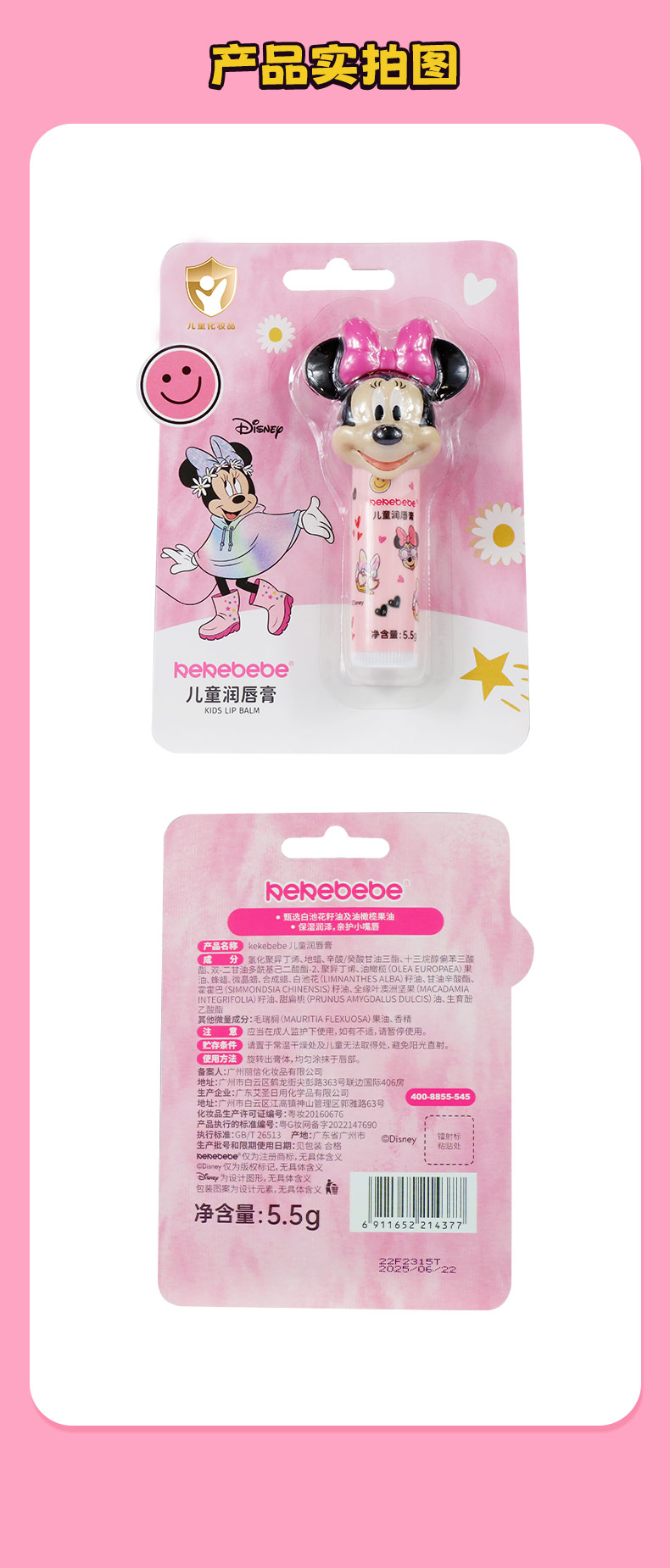 迪士尼kekebebe儿童润唇膏5.5g(米奇)/(米妮)