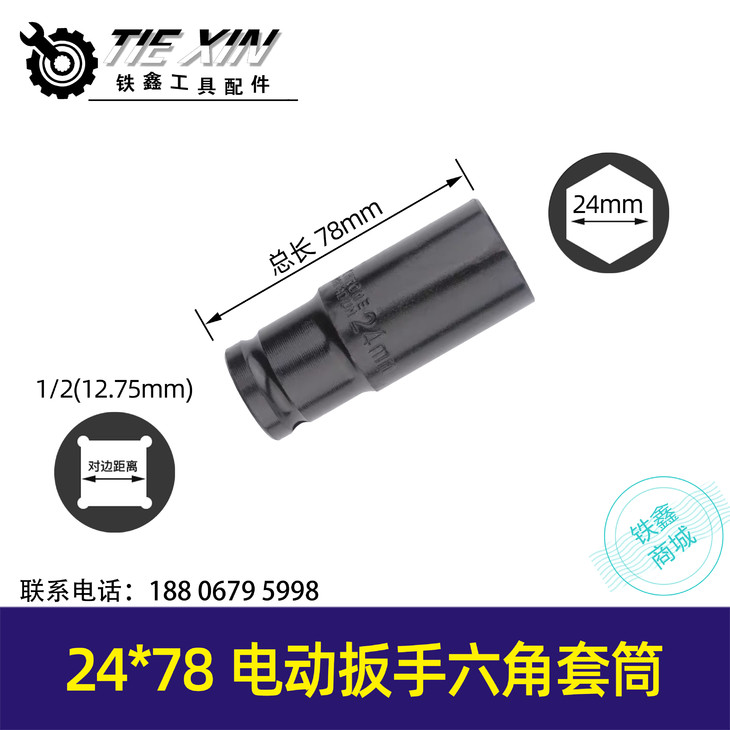 【货号01008】 锂电扳手套筒 电动扳手套筒【24*78】