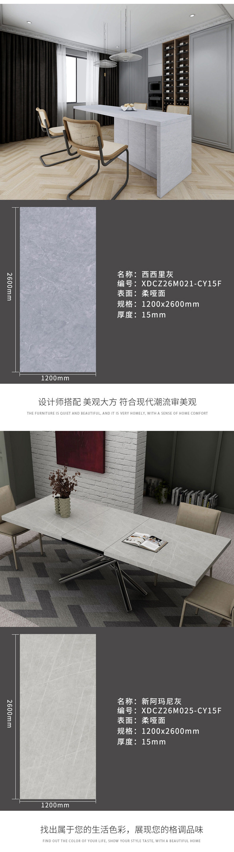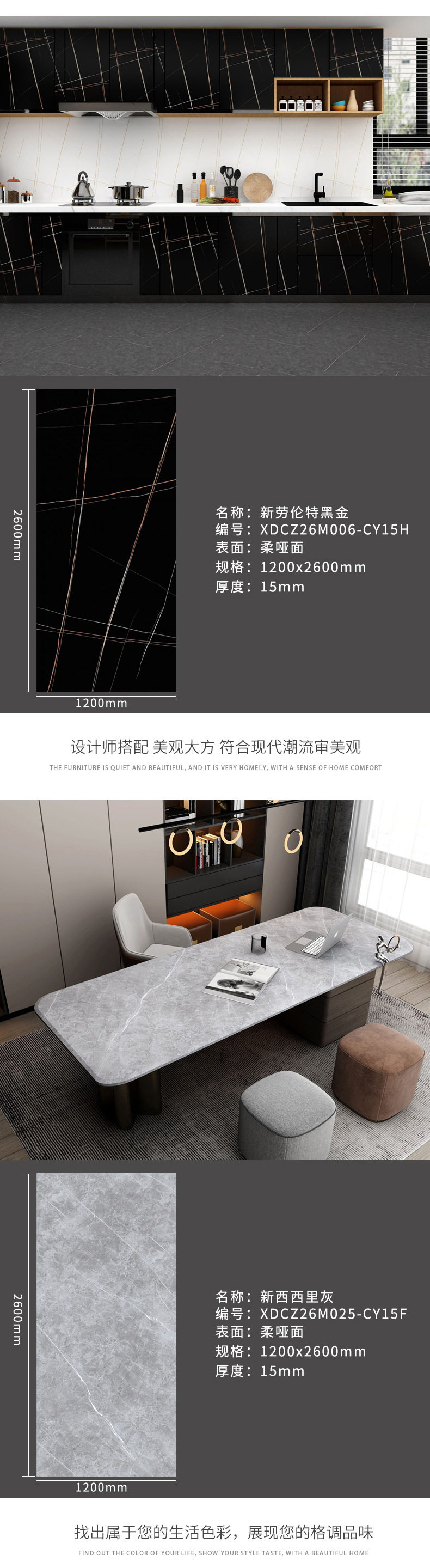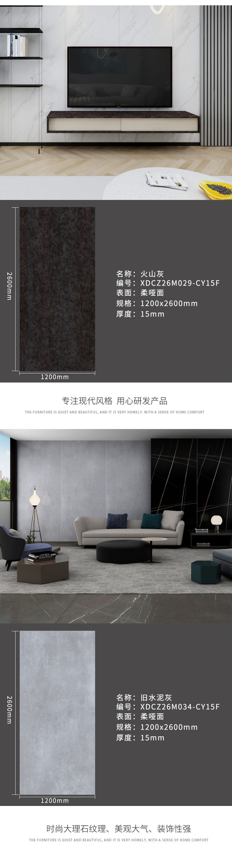 茶几餐厅新款楼梯1200x2600x15mm岩板客家具大板风格电视柜 商品图4
