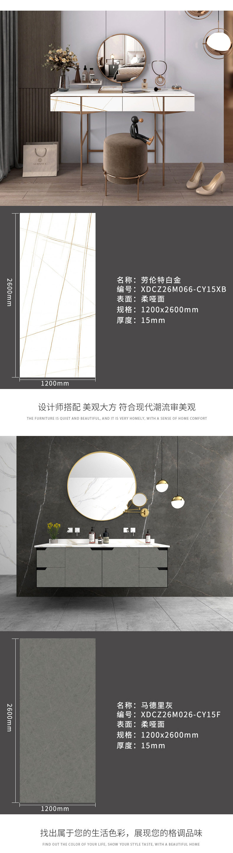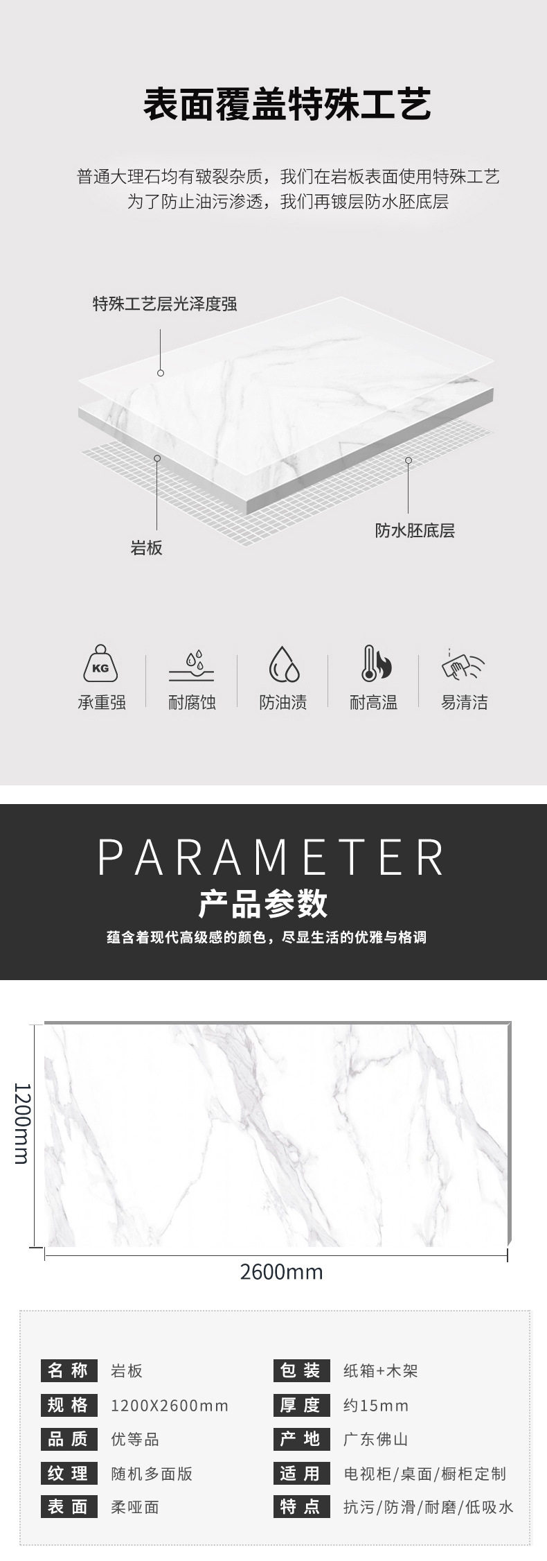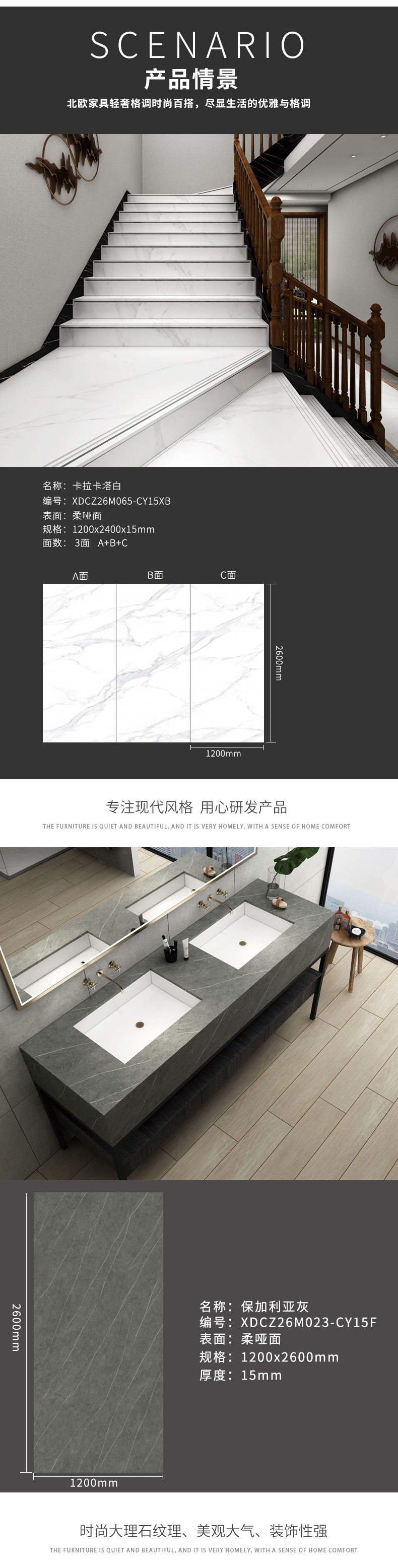 茶几餐厅新款楼梯1200x2600x15mm岩板客家具大板风格电视柜 商品图4