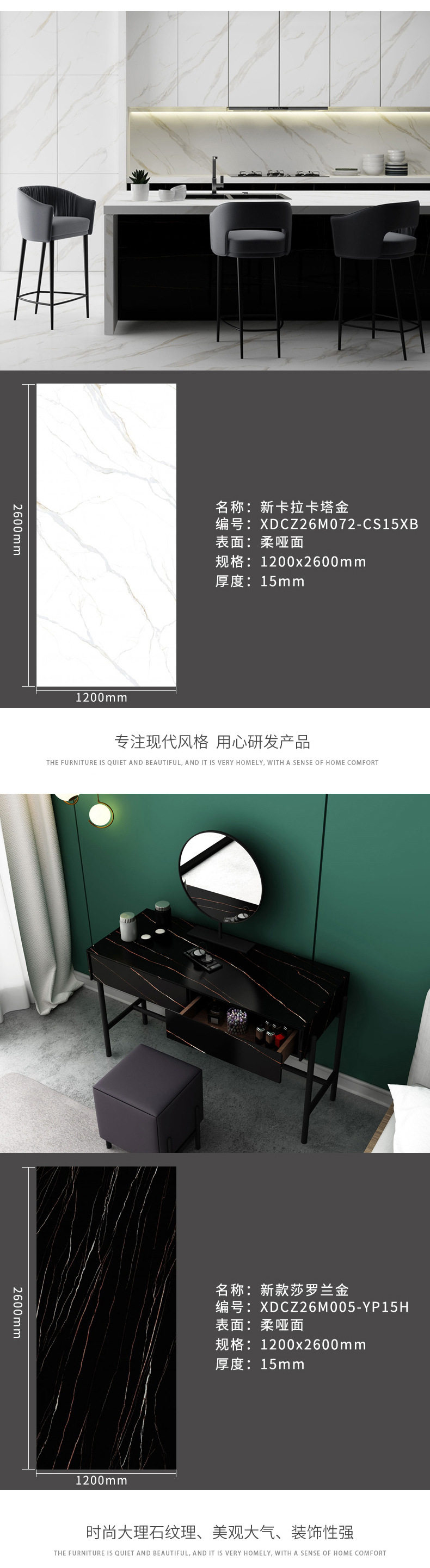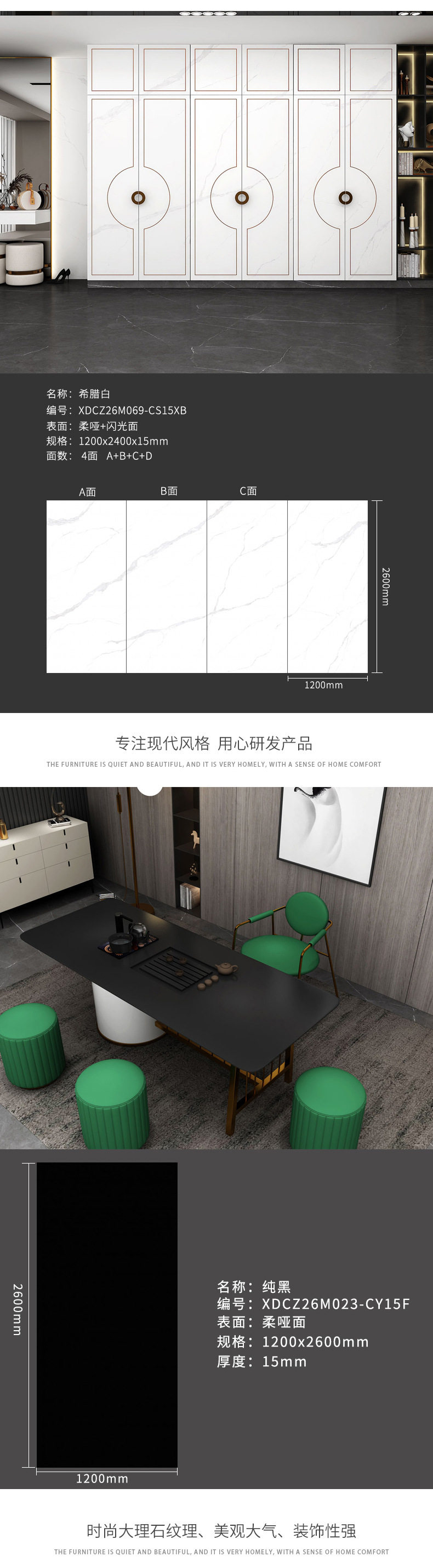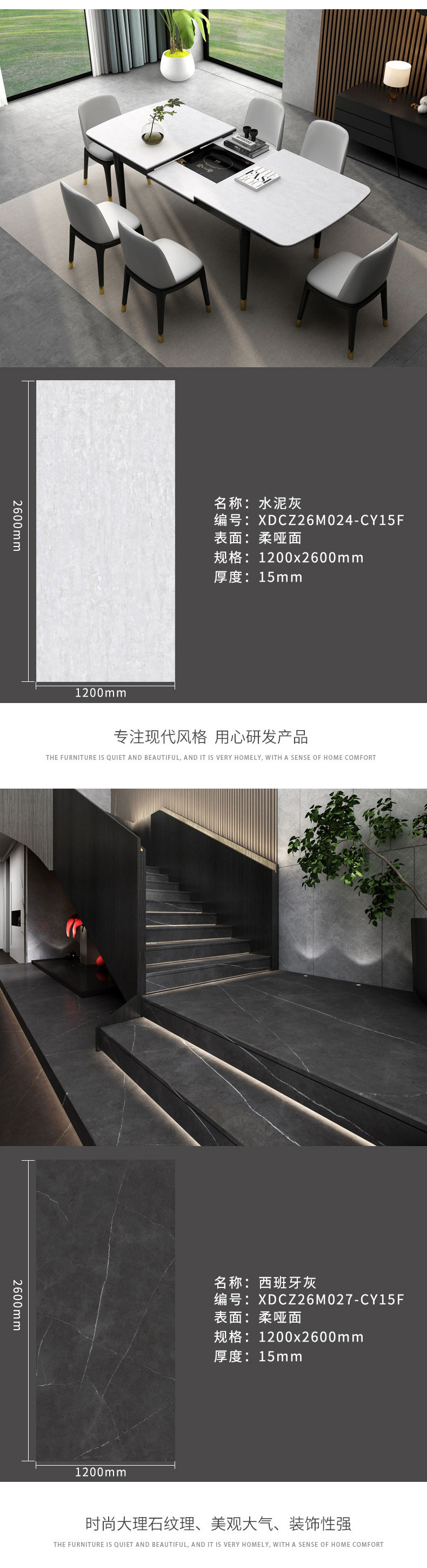 茶几餐厅新款楼梯1200x2600x15mm岩板客家具大板风格电视柜
