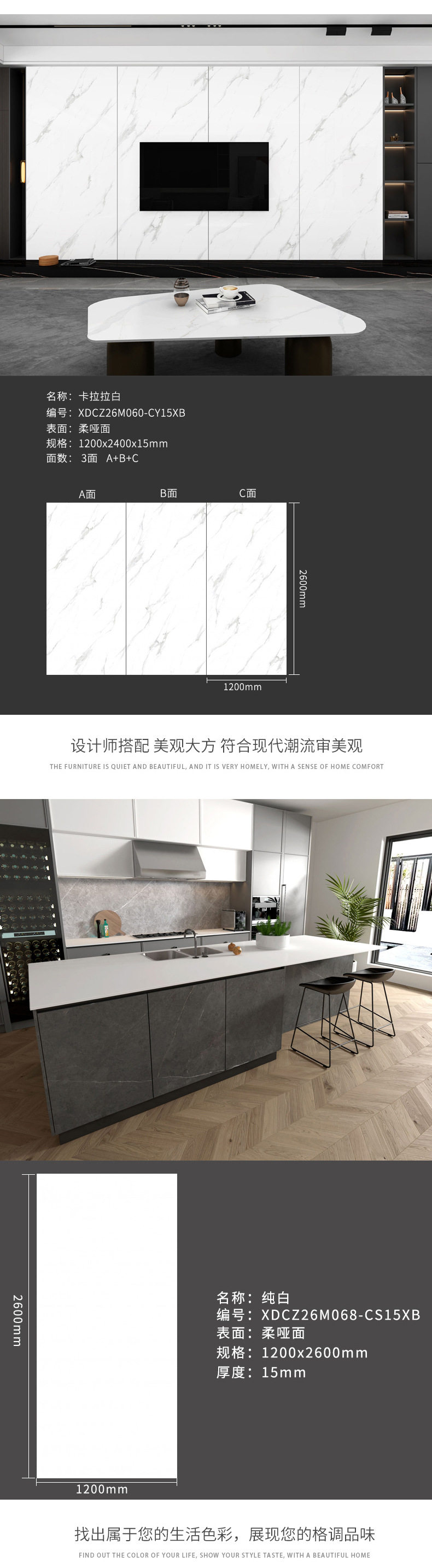 茶几餐厅新款楼梯1200x2600x15mm岩板客家具大板风格电视柜 商品图0
