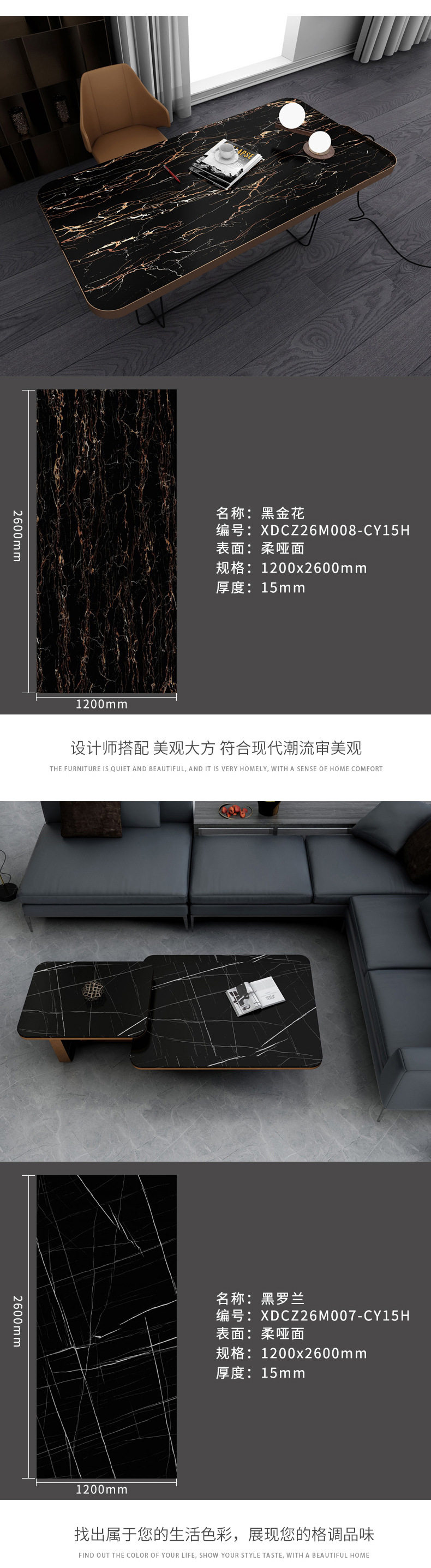 茶几餐厅新款楼梯1200x2600x15mm岩板客家具大板风格电视柜 商品图2