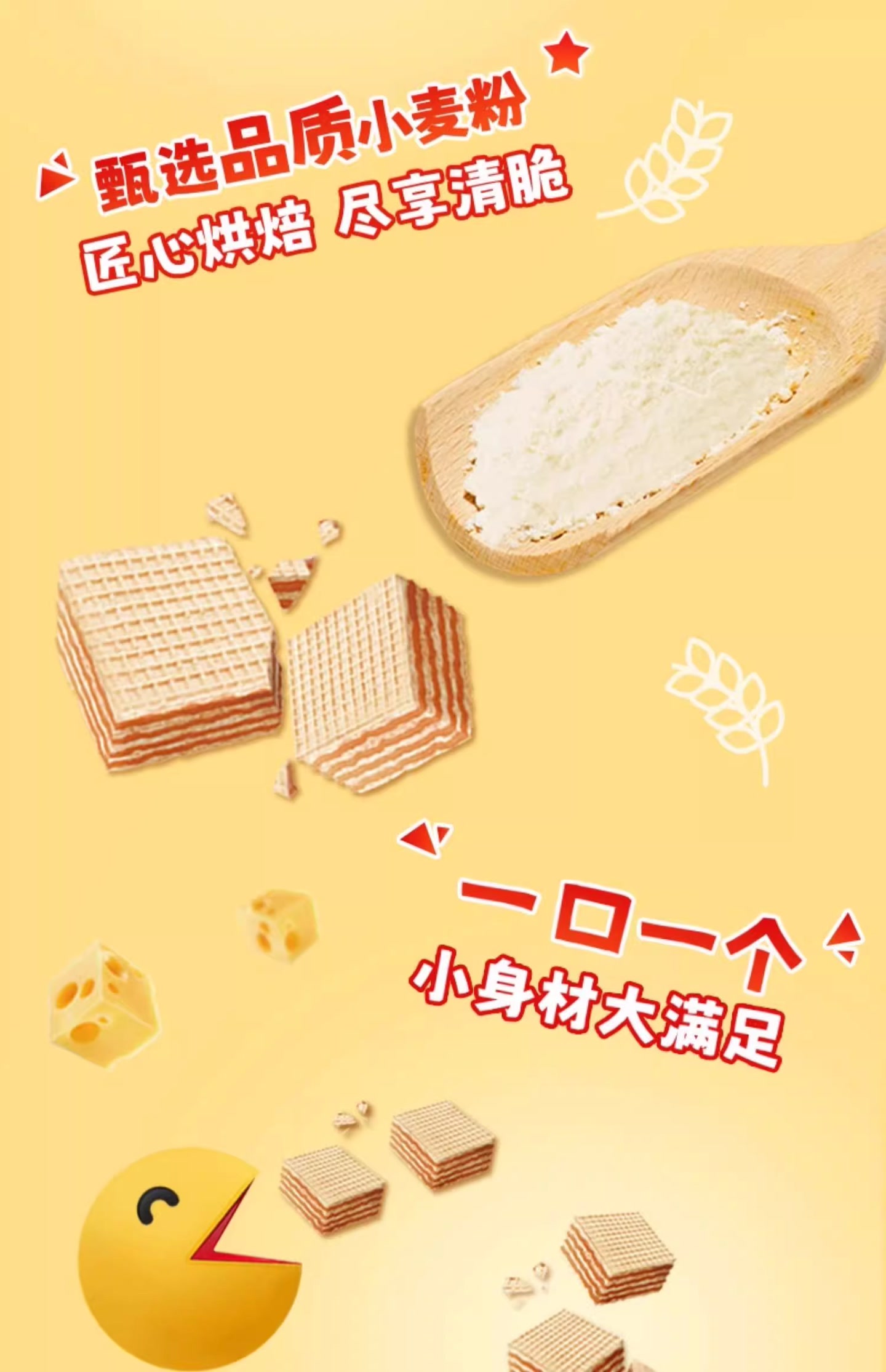 脆脆鲨一口脆厚切威化小粒装巧克力芝士味威化饼干105g
