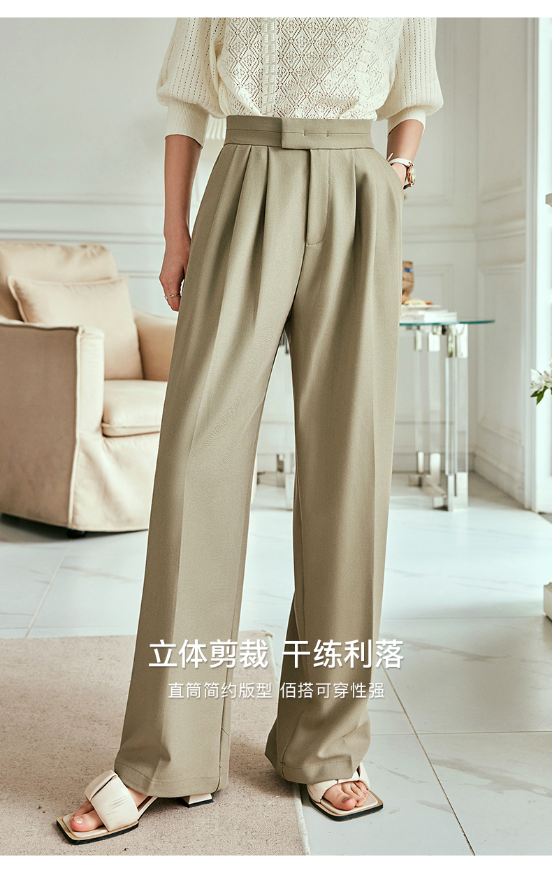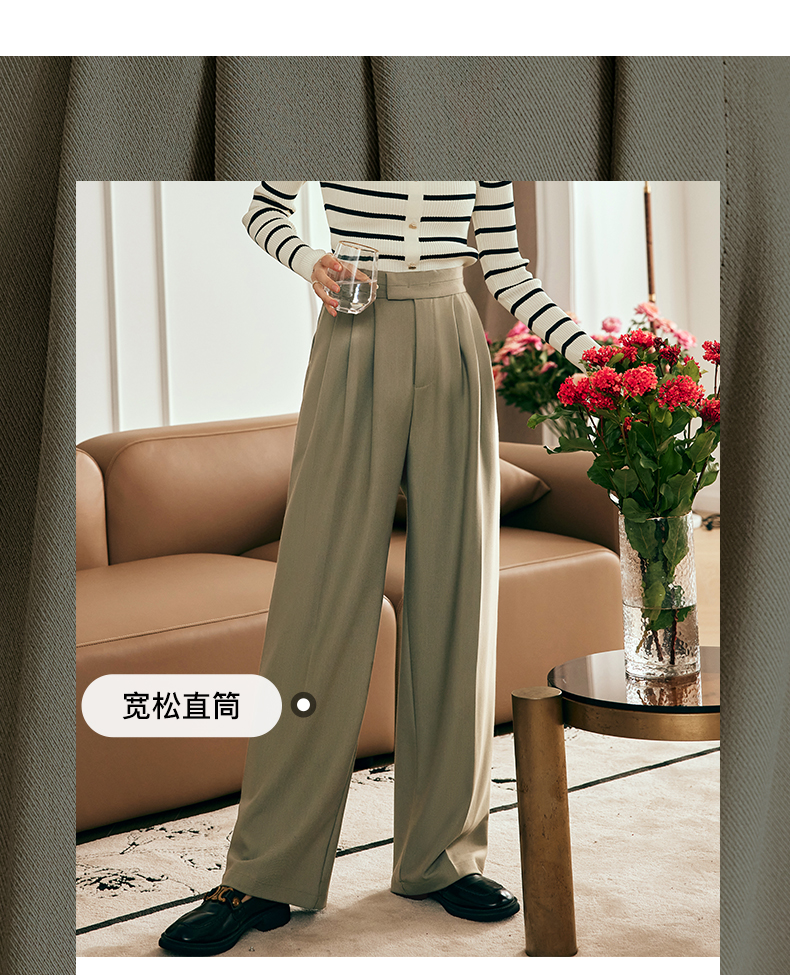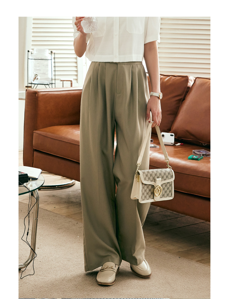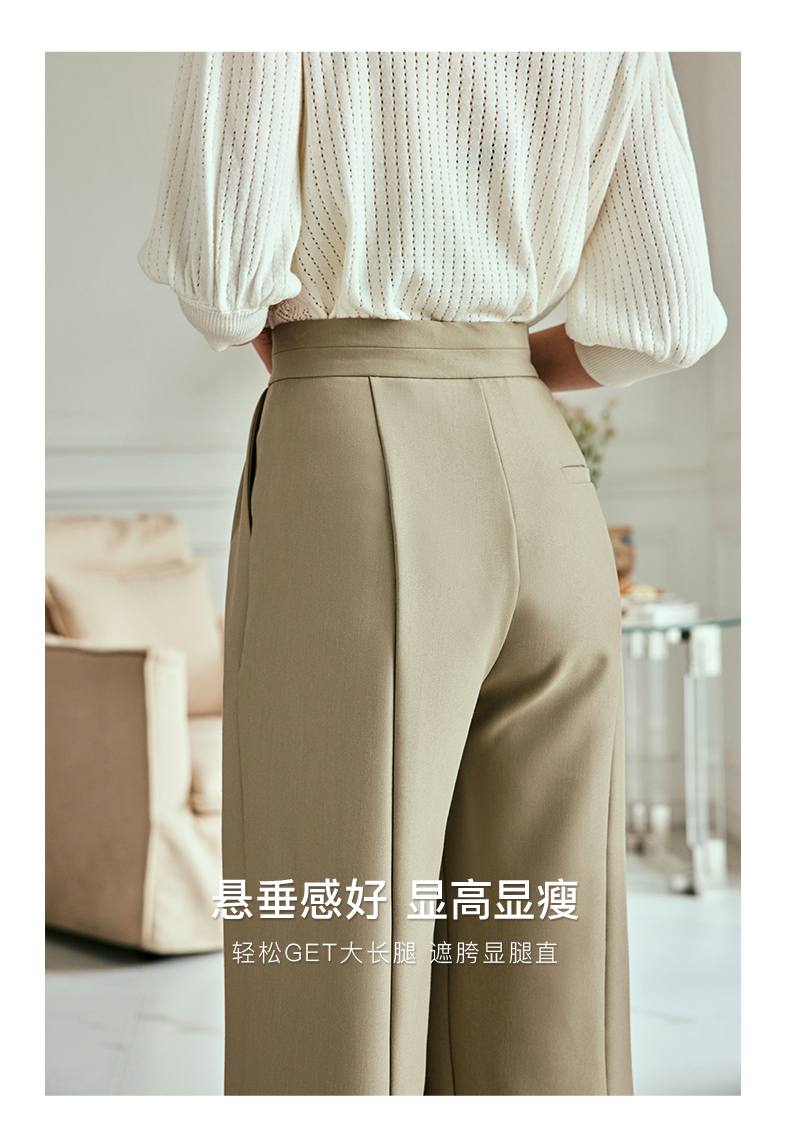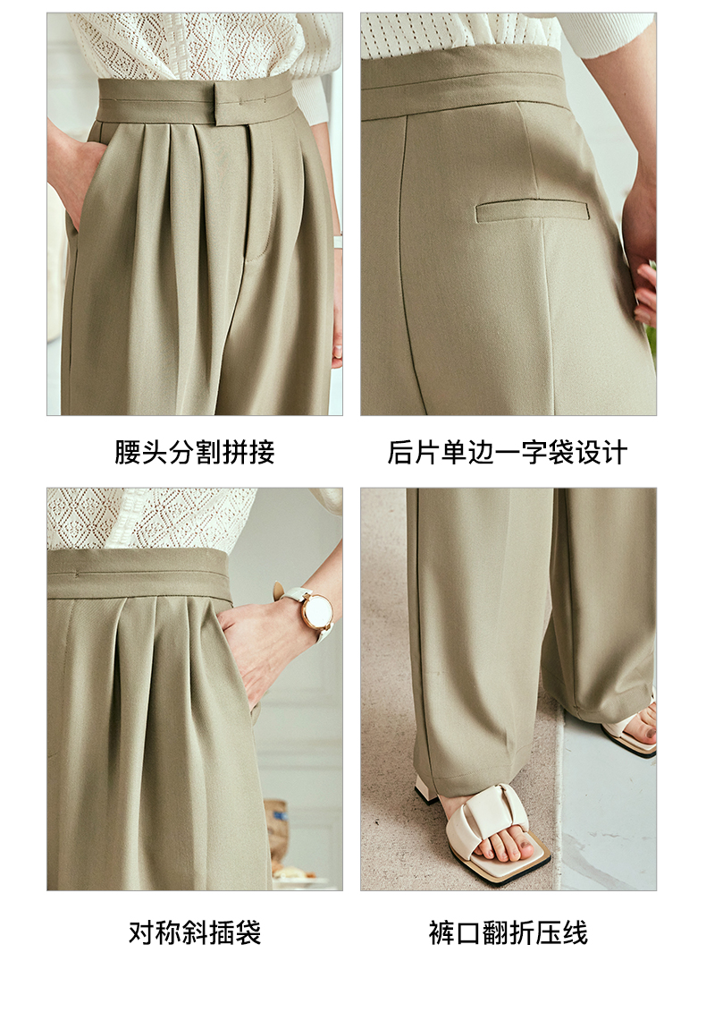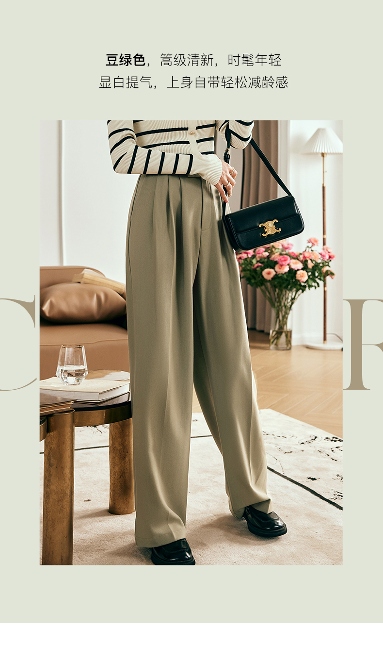 OLrain欧芮儿法式豆绿色休闲裤女夏季2023年新款高腰阔腿垂感长裤