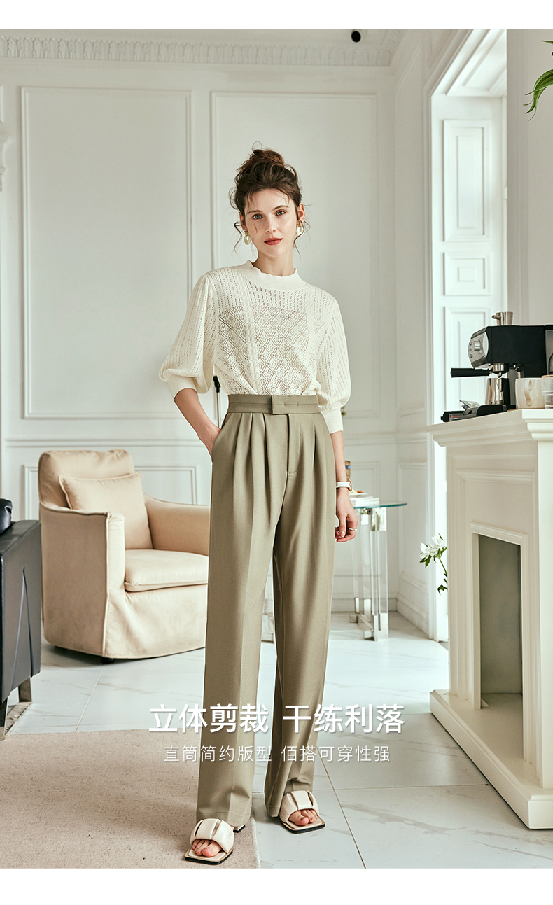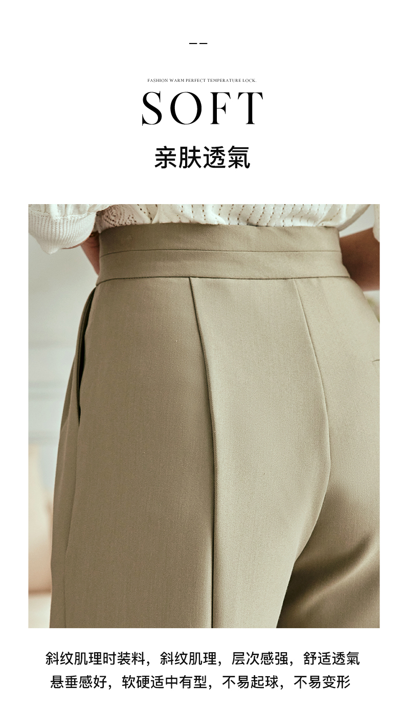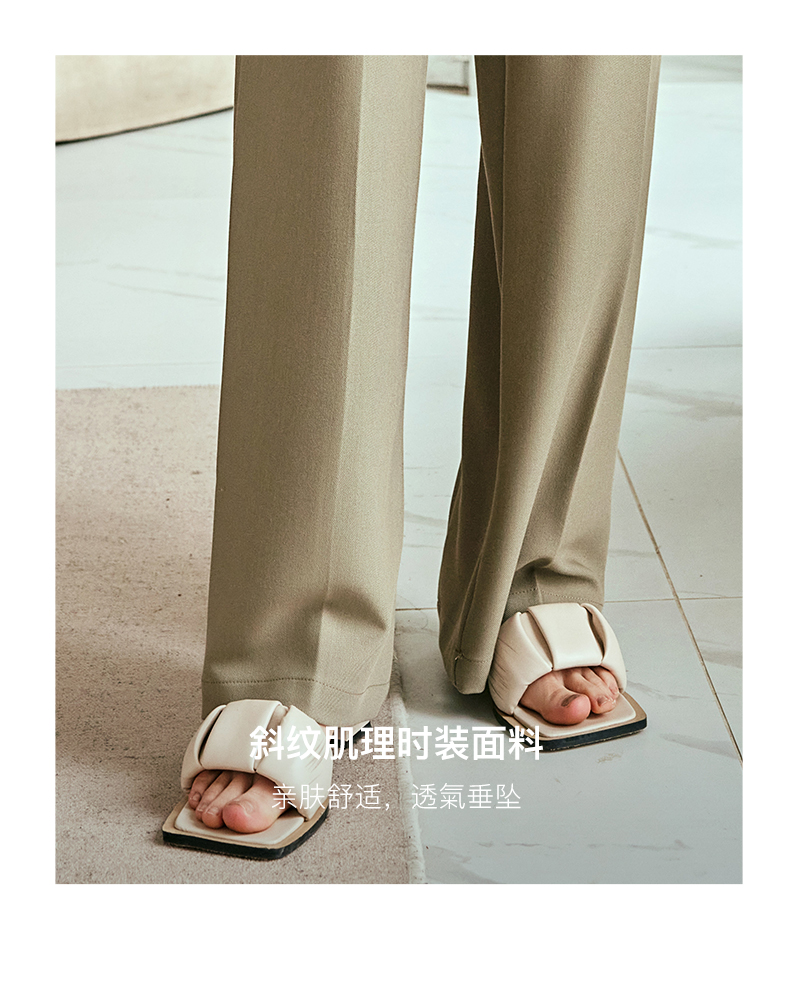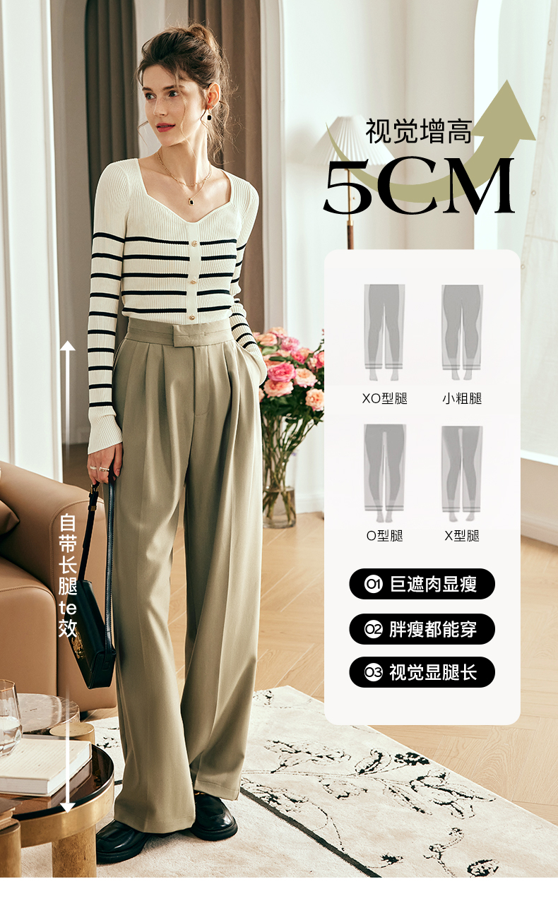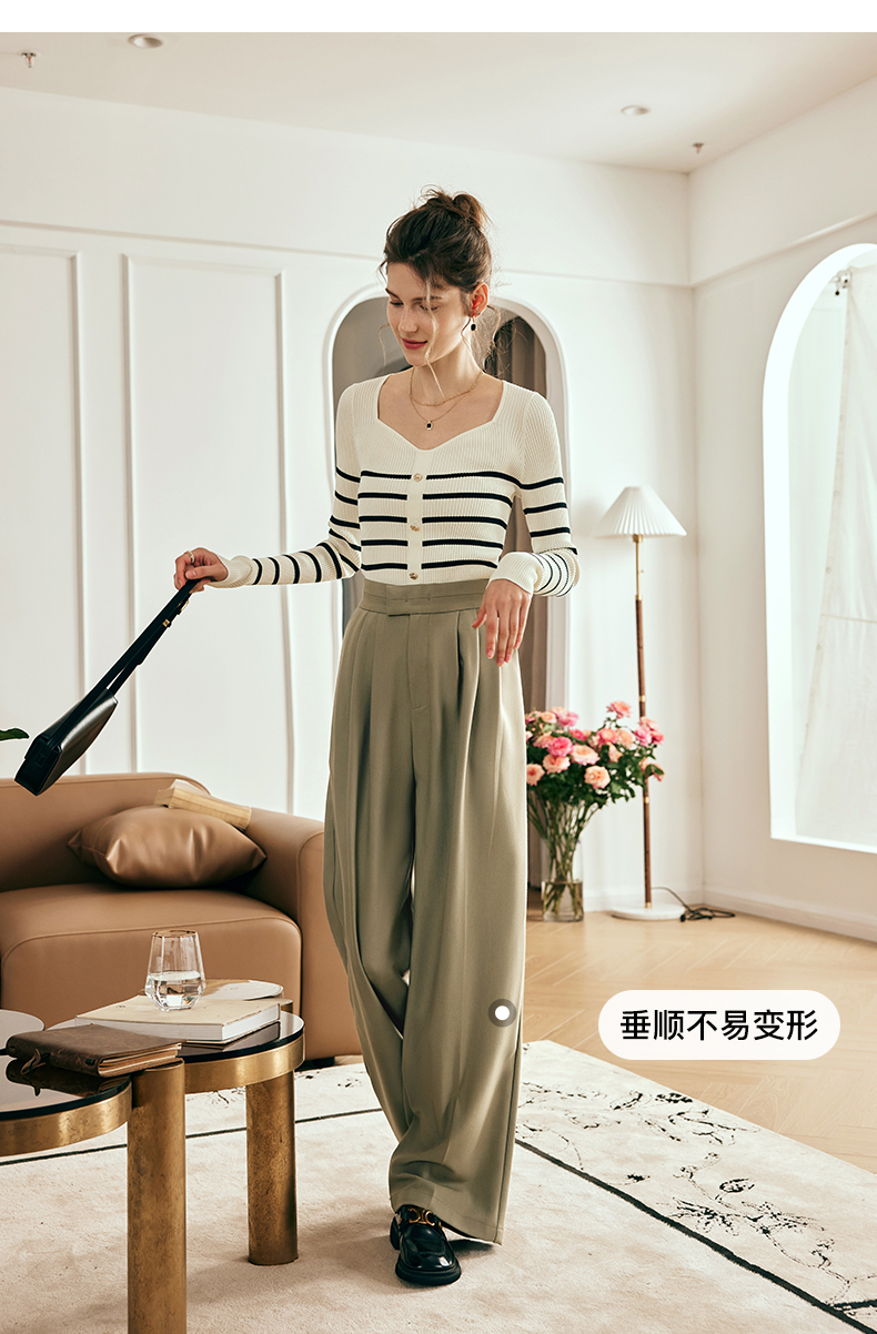 OLrain欧芮儿法式豆绿色休闲裤女夏季2023年新款高腰阔腿垂感长裤