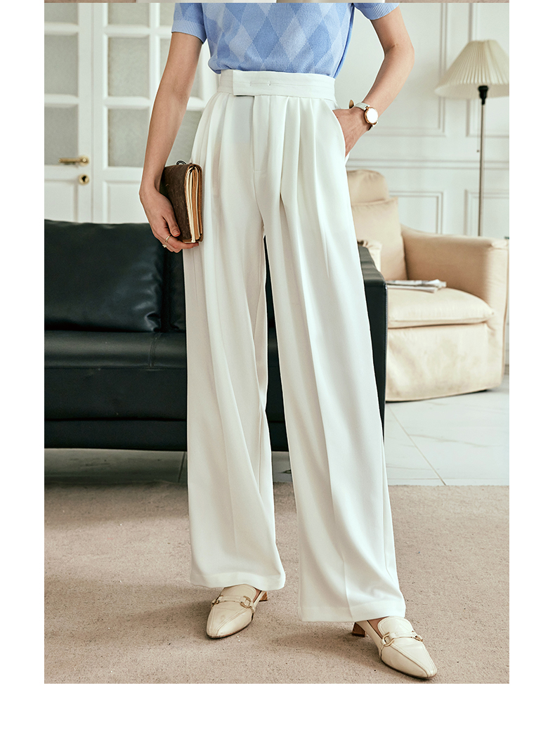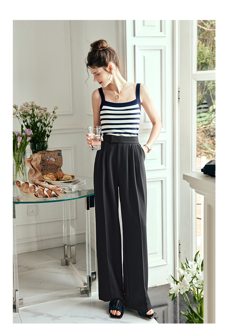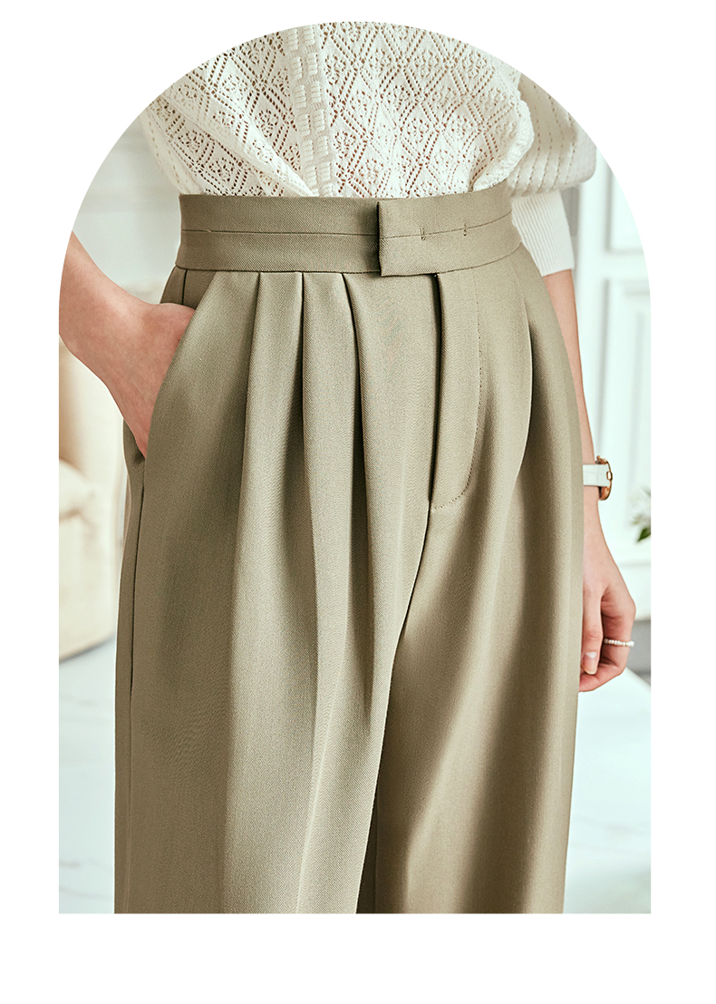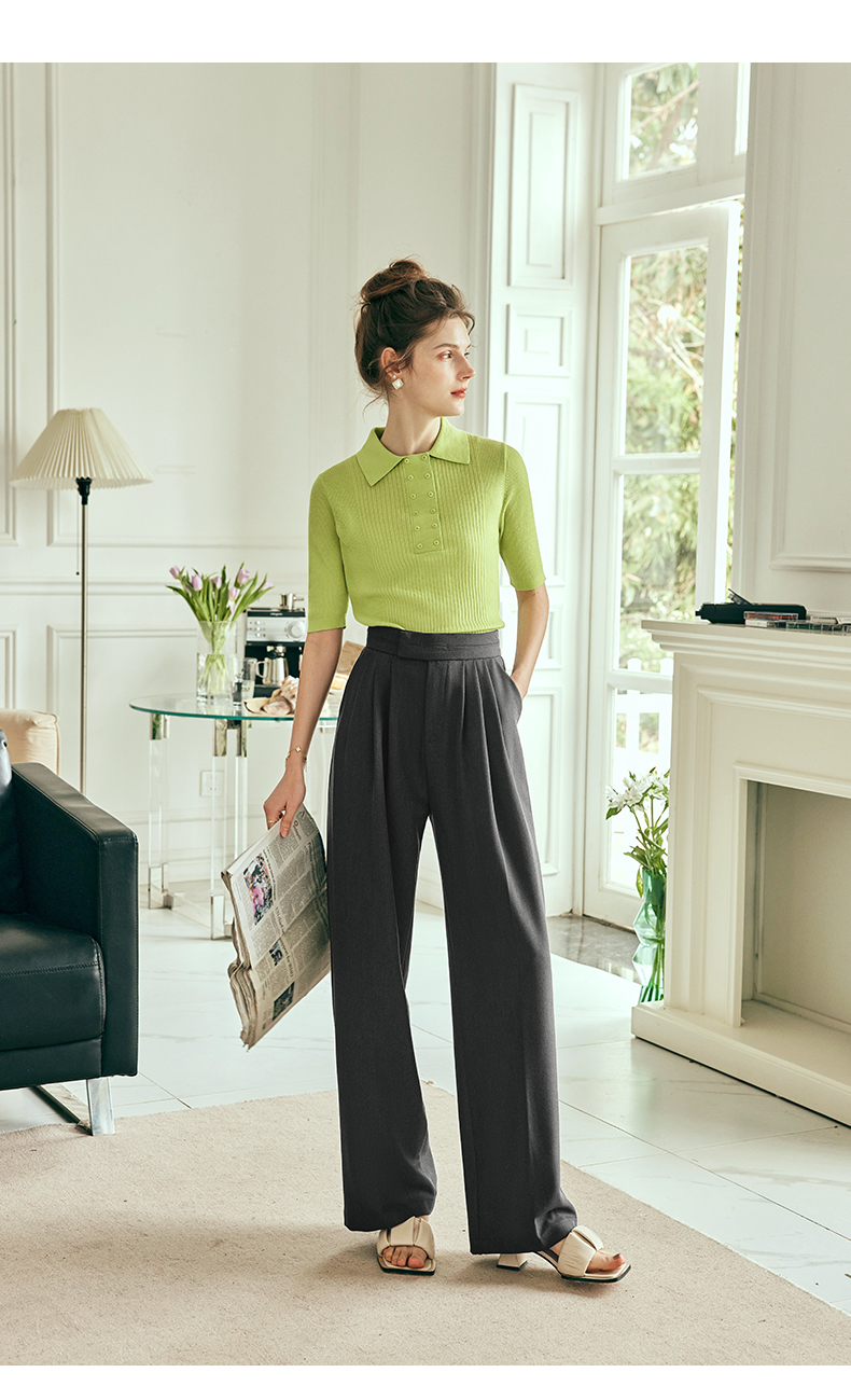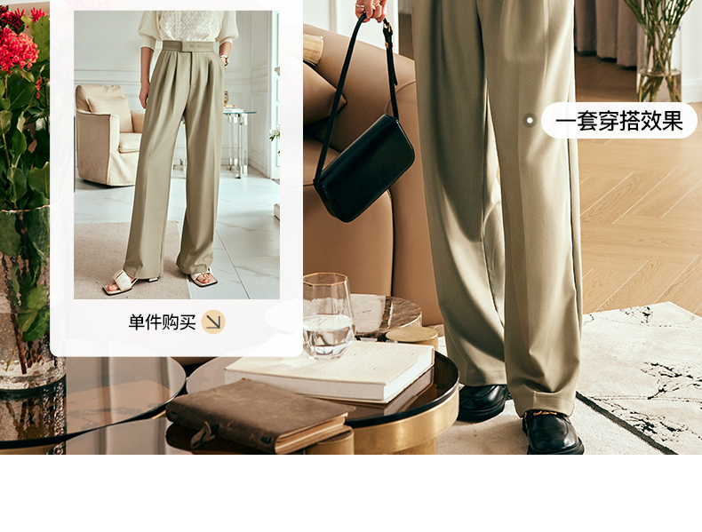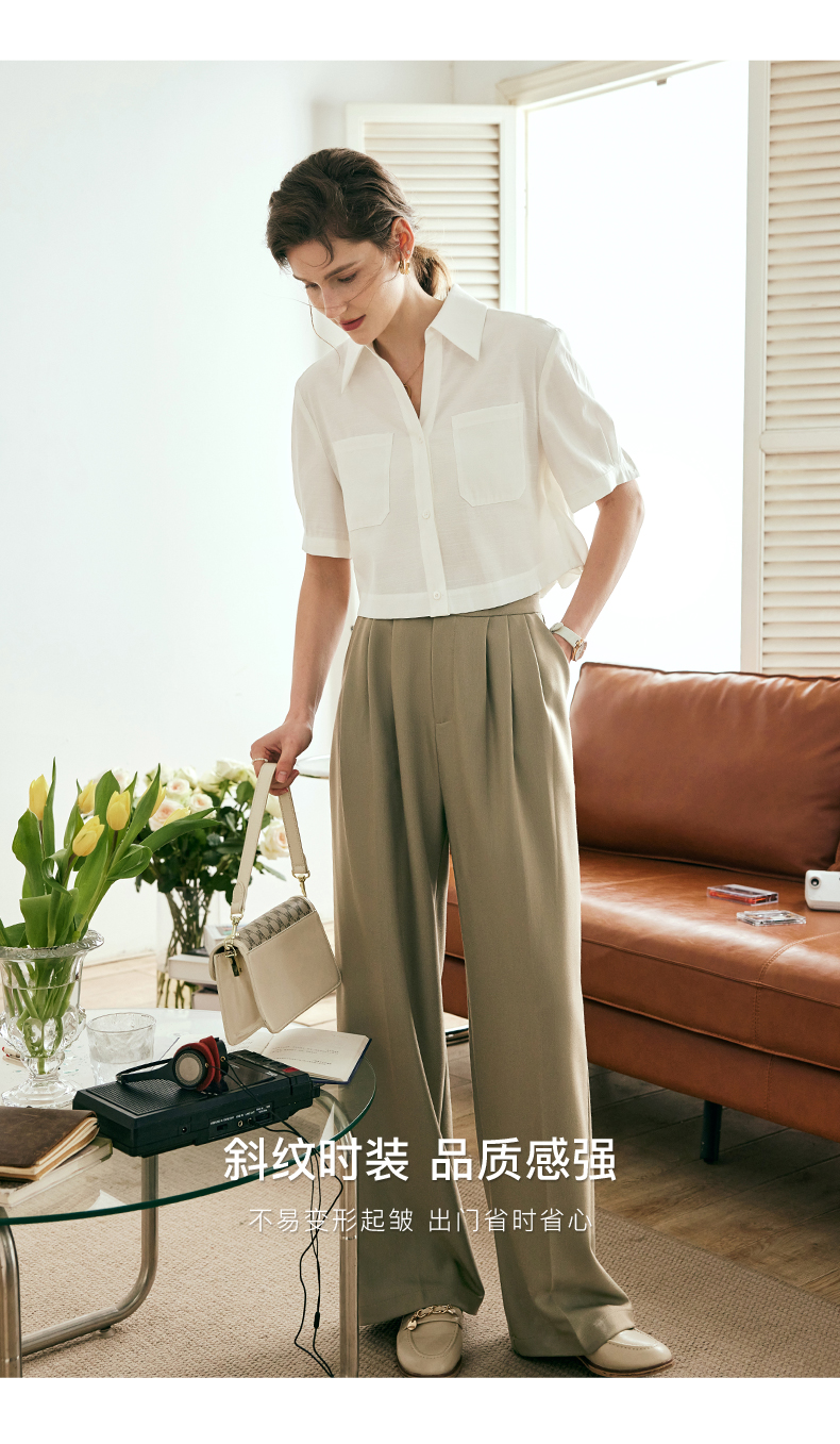 OLrain欧芮儿法式豆绿色休闲裤女夏季2023年新款高腰阔腿垂感长裤