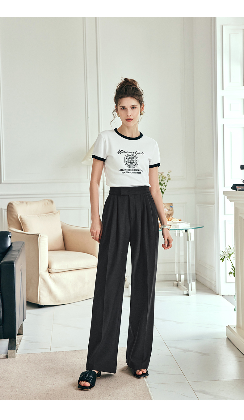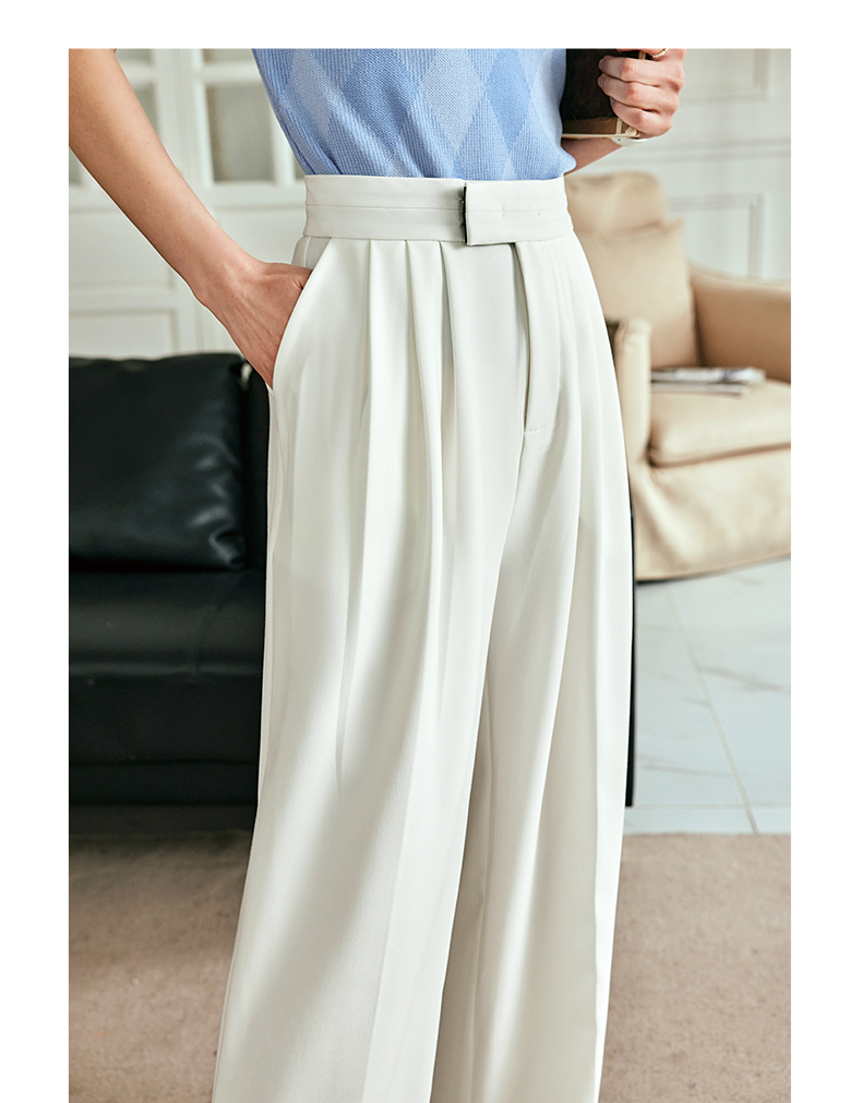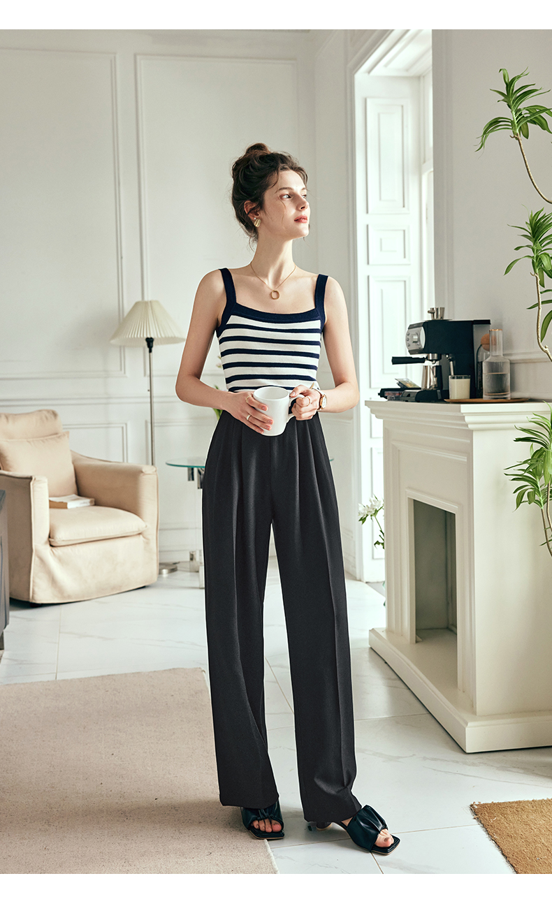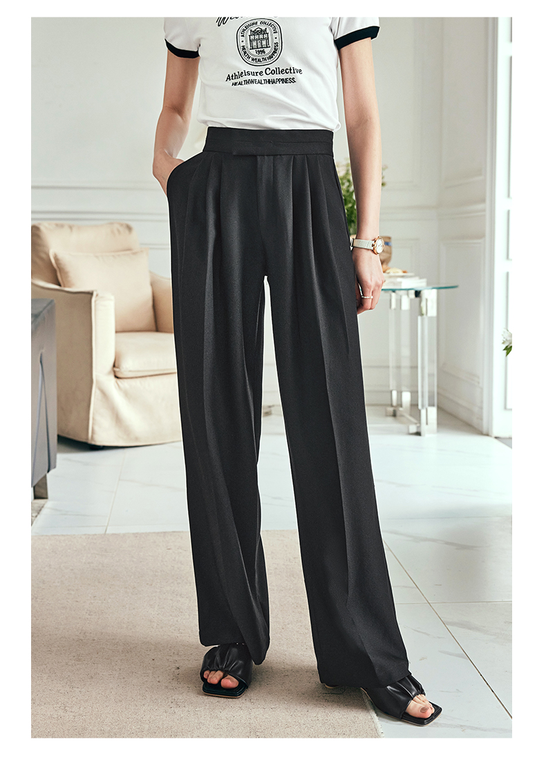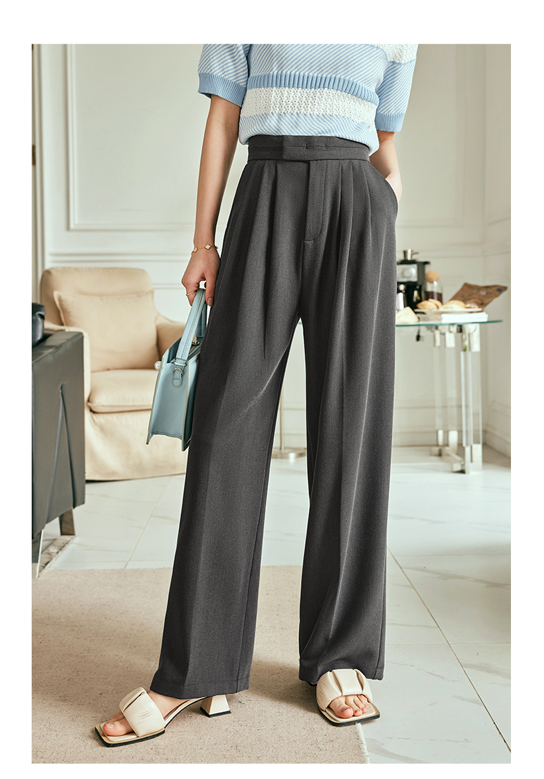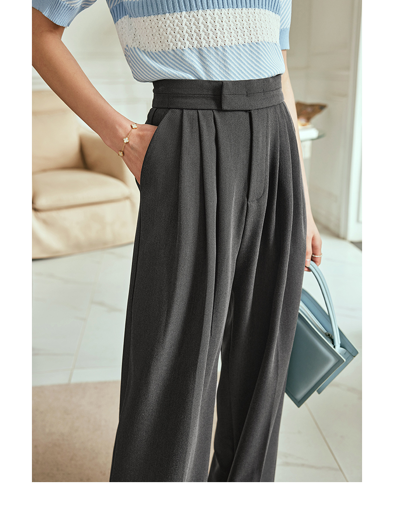 OLrain欧芮儿法式豆绿色休闲裤女夏季2023年新款高腰阔腿垂感长裤
