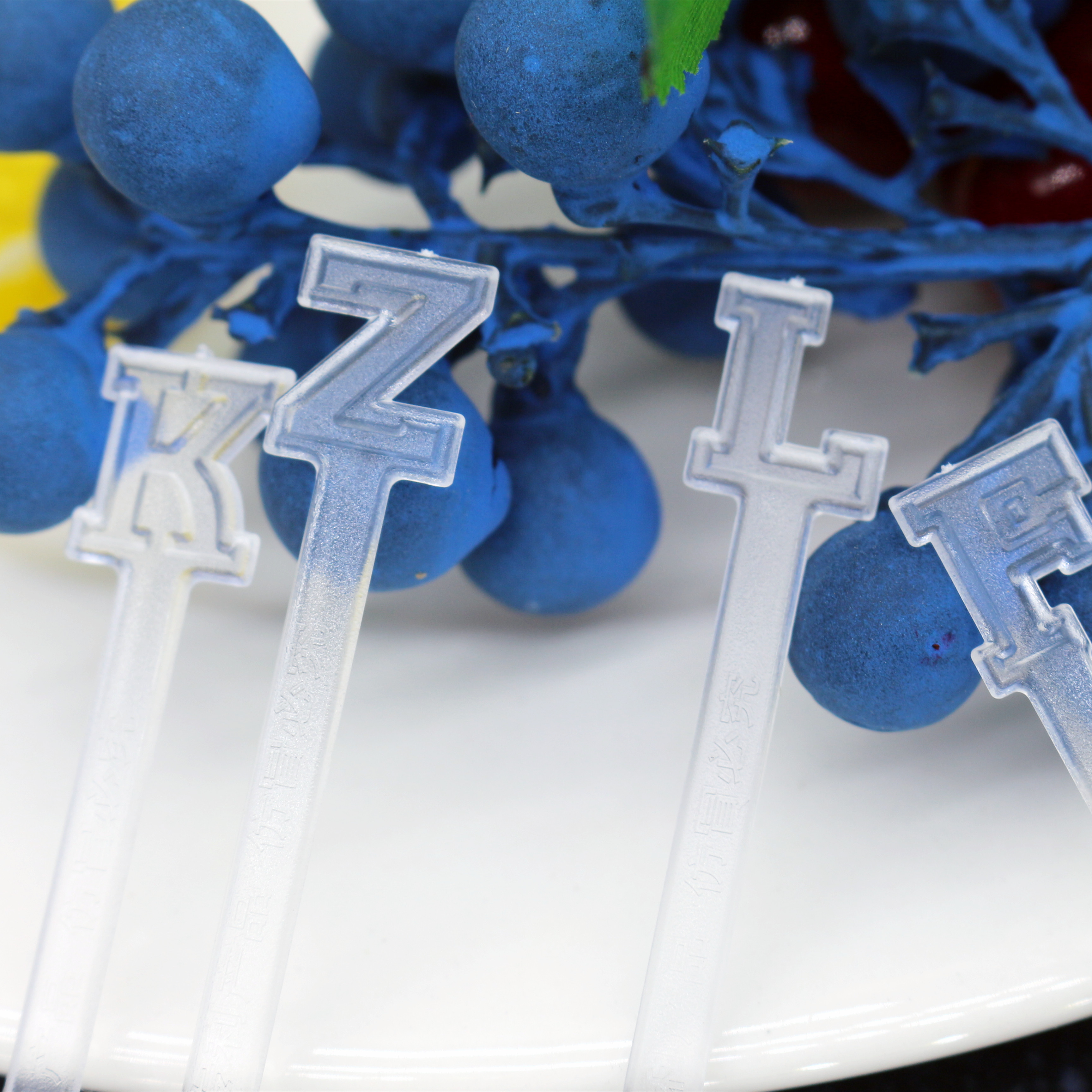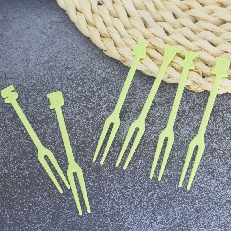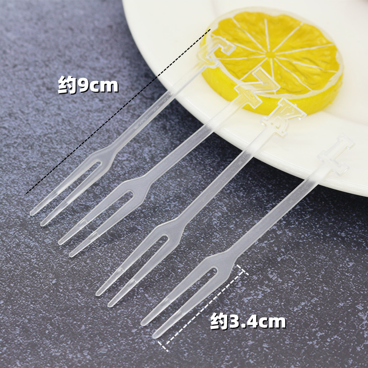 约100入 透明/绿色 独立装 字母透明叉 二齿小叉子 蛋糕水果慕斯小叉子